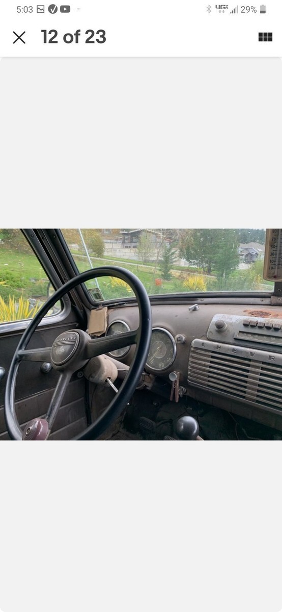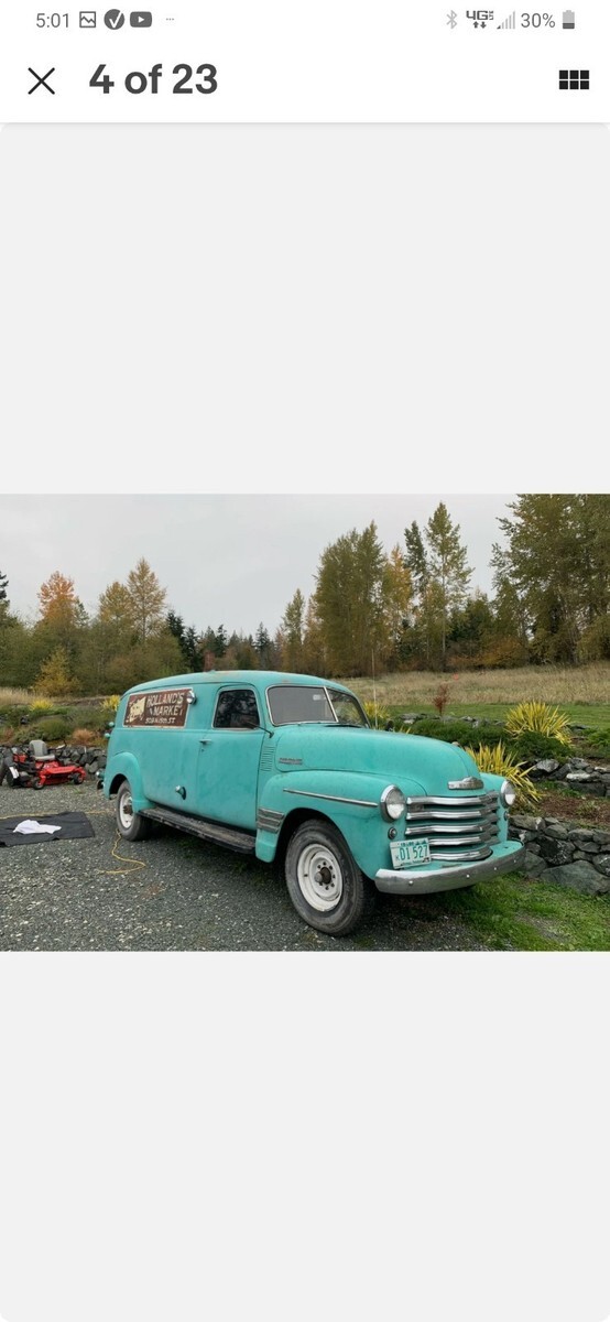 1948 Chevy Thriftmaster panel van in excellent solid rust free condition. I purchased this Panel van from the grandson of the original owner. It has been in dry storage since the early 1980s.Original factory interior and flooring. Cab is 100 percent solid no holes or patches. This is extremely rare.Body and running boards are also extremely solid and no rust holes. There is minimal surface rust here and there to be expected for a vehicle this age.The only body damage is rear left fender which was damaged by the previous owner while at home. I do have a Chevy factory rear fender replacement that I'm including in the sale.The body has only one paint job from new. The original owner had logos painted on the sides for his business. That's right an original logoed panel van from the late 1940's !!!Original factory front Interior it's all 100 percent intact. As the story goes from the grandson of the original owner his grandfather loved camping. So he installed a small wood stove in the back and two fold down bunk beds. Easly removable if not to your liking. There is also a small shelving unit installed behind the drivers seat for additional storage.The motor is 100 percent complete and also original inline 235 stovebolt.In unknown condition and does turn freely by hand. I unfortunately do not have an account of the actual miles. Transmission is a 4 speed stick which is free and goes into every gear smoothly.I'm also including the original factor split rims which are shown in the pictures. The set of rear clam doors shown in the pictures are not included in the sale of the vehicle.Unfortunately I have to many projects and I'm downsizing my laundry list. So I decided to pass this treasure to someone who will put it back where it belongs the road not my garage. If you are familiar with these vehicles you understand how rare these are in this condition. Like the saying goes if you know you know!Owner is responsible for pickup and loading of vehicle. I will assist if needed.If you have any questions please let me know. Thank you.Price $ 11,800 obo