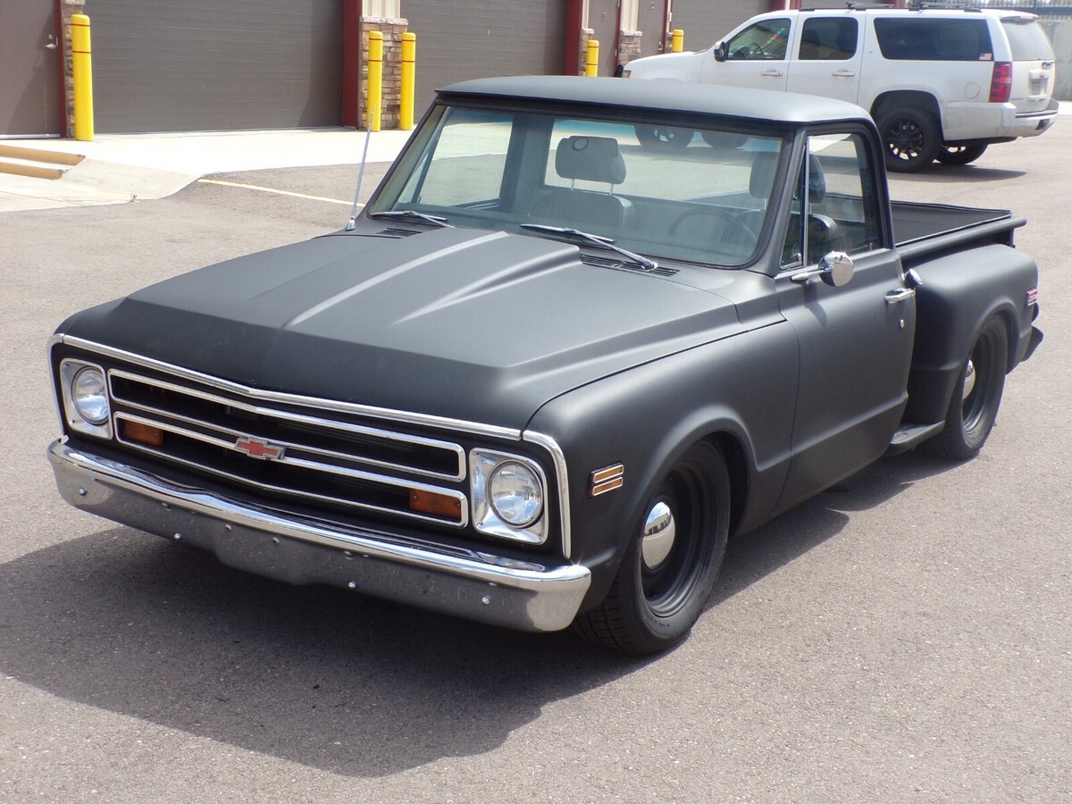 For Sale is my 1968 Chevrolet C10 ½ ton pickup. I encourage you to read the entire listing as I will go over all details of the truck. I took this truck in as part of a trade and purchased of a car I had restored. I had never restored a truck before, so I thought I would give it a shot. When I received the truck, the interior, paint and engine were in much rougher shape than I was led to believe. I have some pictures of its before state. I started by painting the truck flat black. The paint is decent, although there are a few wear and tear scratches. The body is straight and overall, the exterior of the truck looks pretty good. I have not painted the dash, or the door panels, they are still blue. It was on my list of things to do, just haven’t gotten to it. I then ripped the interior out. I replaced the carpet, seats, shifter, gauges and radio. I originally mounted the seats to the floorboard and didn’t like it as the seats sat low. I then found a mounting bracket that was designed for the truck and bolted right to the original seat bolts. The seats are still brand new and with them came a center console that was very expensive and very cheaply made. I added seat belts as well. Remember, the gas tank is behind the seats so there is not a lot of room in the cab. I replaced the non-functioning gauge cluster with a Dakota Digital package. If you are unfamiliar with Dakota gauges, all the sending units go to a master control box that is mounted under the center console and a single CAT-5 (computer cable) runs to the cluster. The adjustment control (odometer reset, scroll, etc.) is mounted to the right of the driver’s seat. https://www.dakotadigital.com/index.cfm/page/ptype=product/product_id=776/category_id=421/mode=prod/prd776.htm I took out the garbage cassette player that had been installed and replaced it with a Memphis Bluetooth radio and put a factory original plate over the radio hole. The Memphis radio is mounted under the center console as well. You connect your phone to it via Bluetooth and control it from the app. You can also control it with a manual control that is mounted to the right of the driver’s seat. I get in the truck, turn it on and my phone connects, and I play Spotify. I can also play AM/FM. There is a speaker mounted under each of the seats, as I said, not a lot of room to mount anything. There are also speakers mounted by the kick panels by your feet. https://www.memphiscaraudio.com/product/smc2a/ There was a garbage B&M shifter with a plastic housing that I didn’t like so I replaced it with a B&M 81052 Pro Stick Black Automatic Shifter with Stealth Magnum Grip, the same shifter I have in my drag car. This was a mistake as while this shifter is great for racing, it can be a real pain in the butt. It takes two hands to put it in reverse, one to hold the reverse lockout and the other to move the shifter. Looks super cool with the black interior, not sure it is worth the hassle.