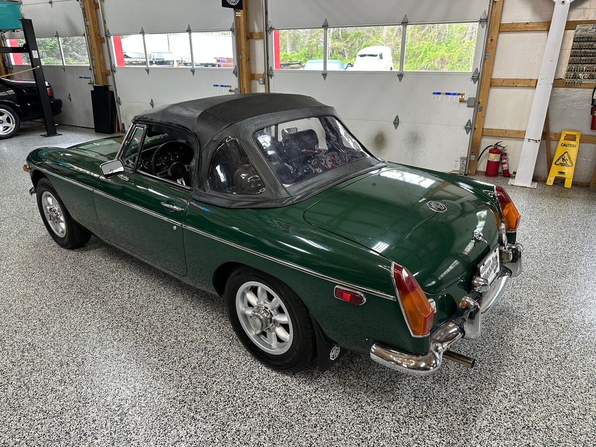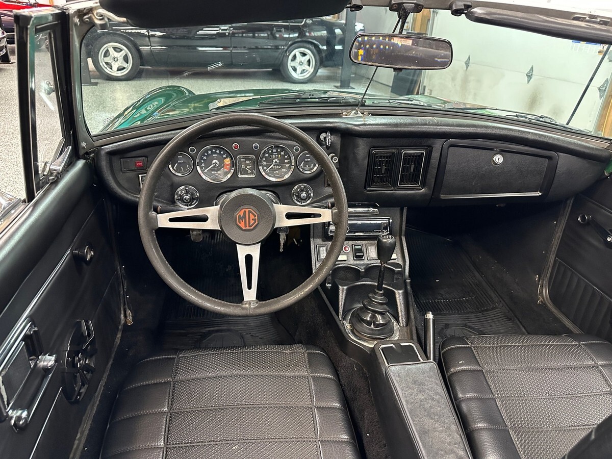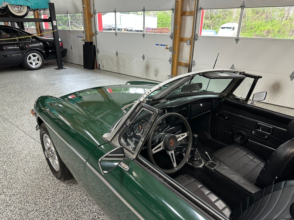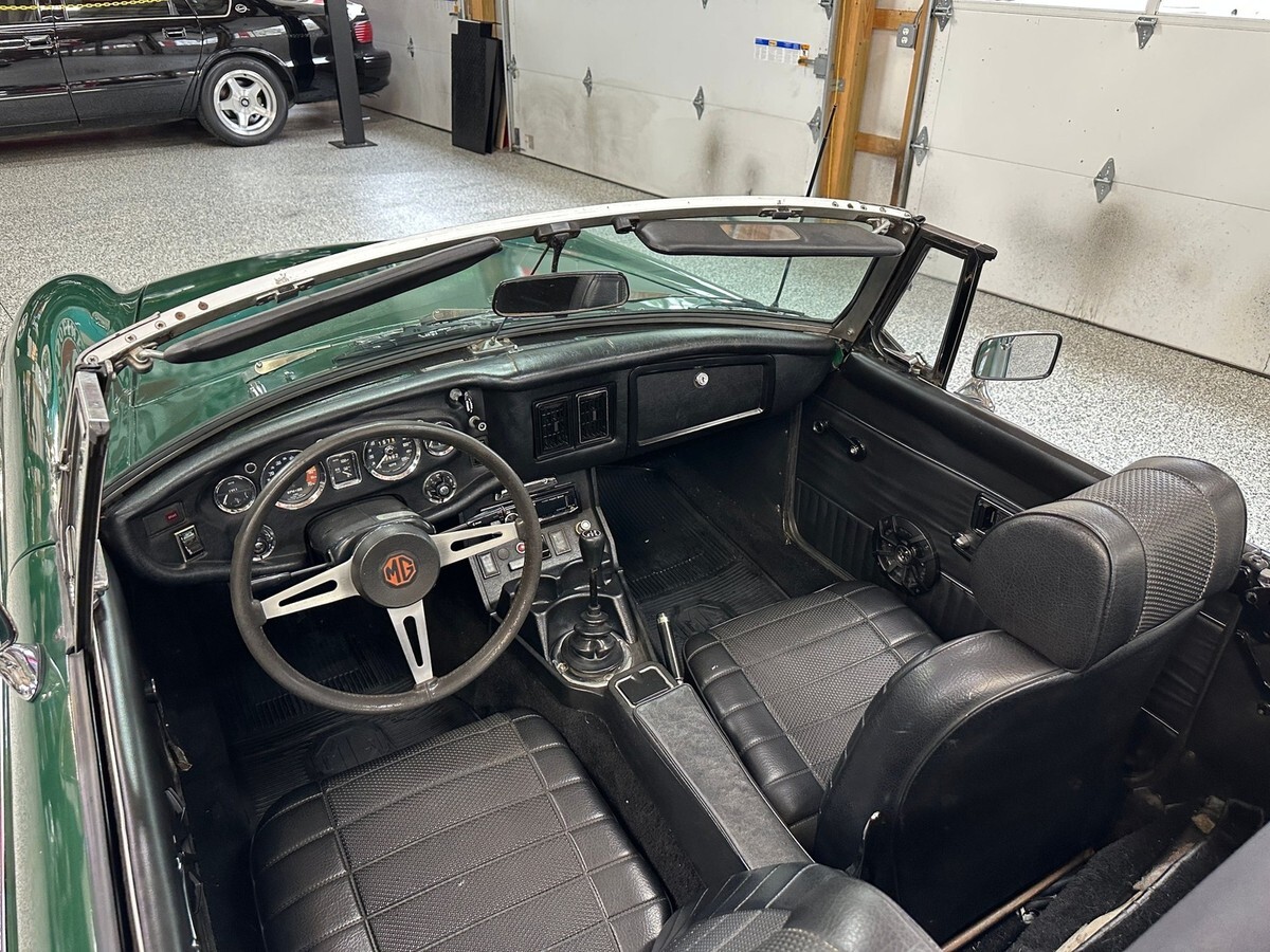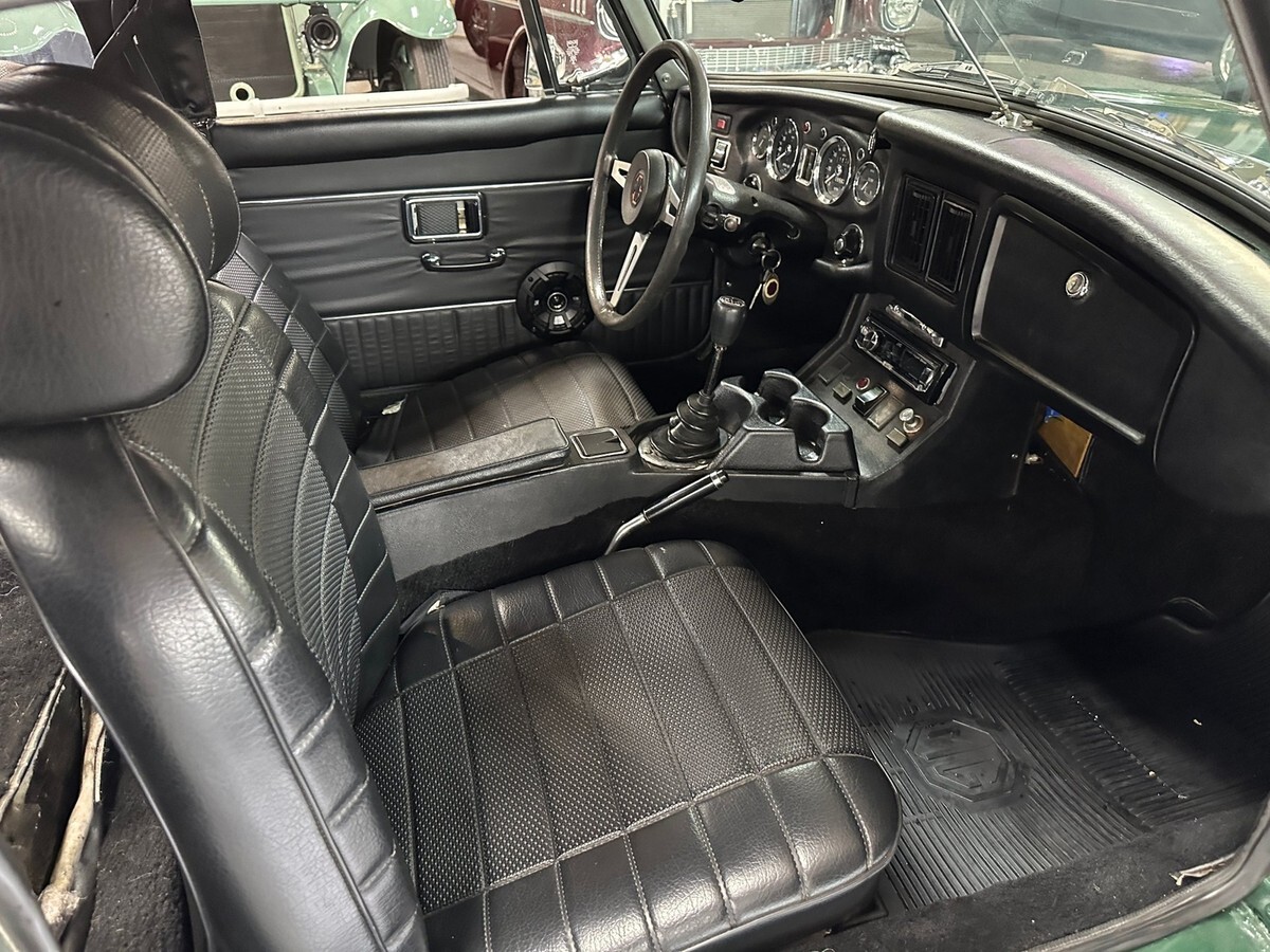 The exterior was repainted in classic British Racing Green several years ago. While the finish has aged, it still presents well at a glance and captures the iconic look of British sports cars from the era. There is some rust on the rear quarter panels, a common area for MGBs, but the undercarriage remains solid, providing a strong structural base for future restoration if desired. Whether you choose to restore it fully or continue to enjoy it with its patina, this car offers flexibility to suit a variety of enthusiast tastes.