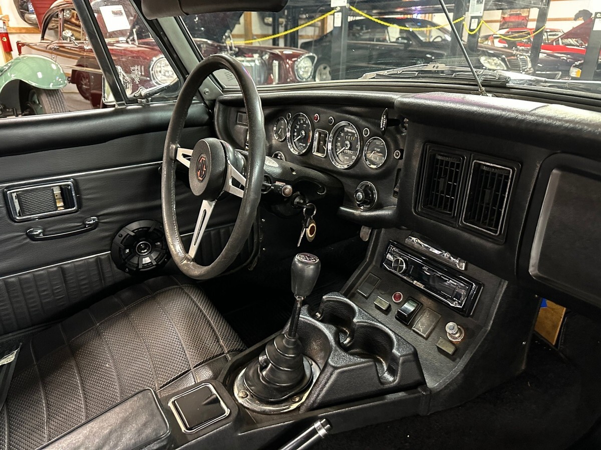 Inside, the black vinyl interior shows well, maintaining the classic simplicity and elegance MGBs are known for. The bucket seats offer comfort and support, and the layout remains true to the original design. The steering wheel, dash, and gauges give the car an authentic vintage feel, perfect for anyone who appreciates traditional British craftsmanship.