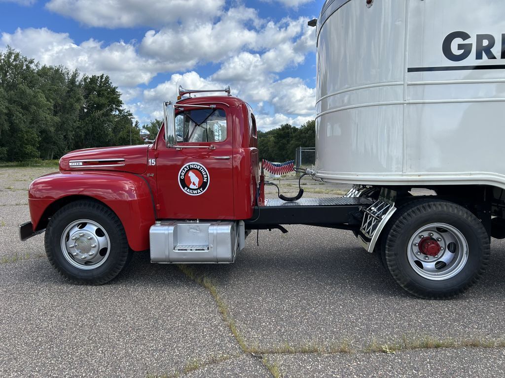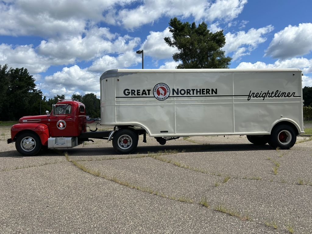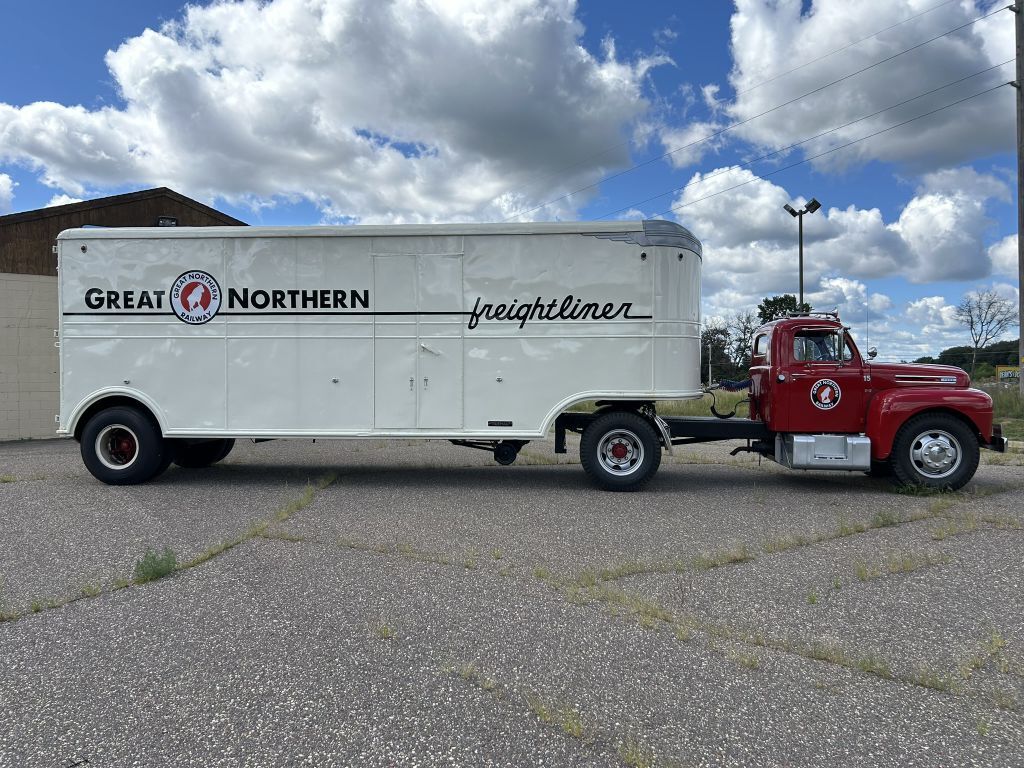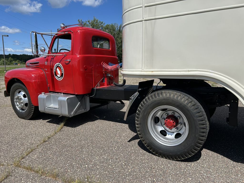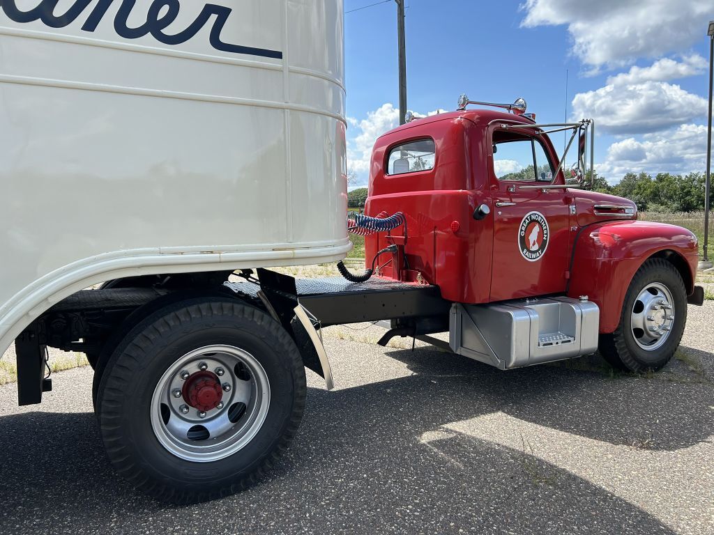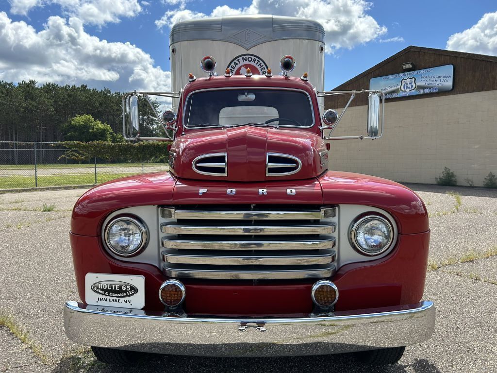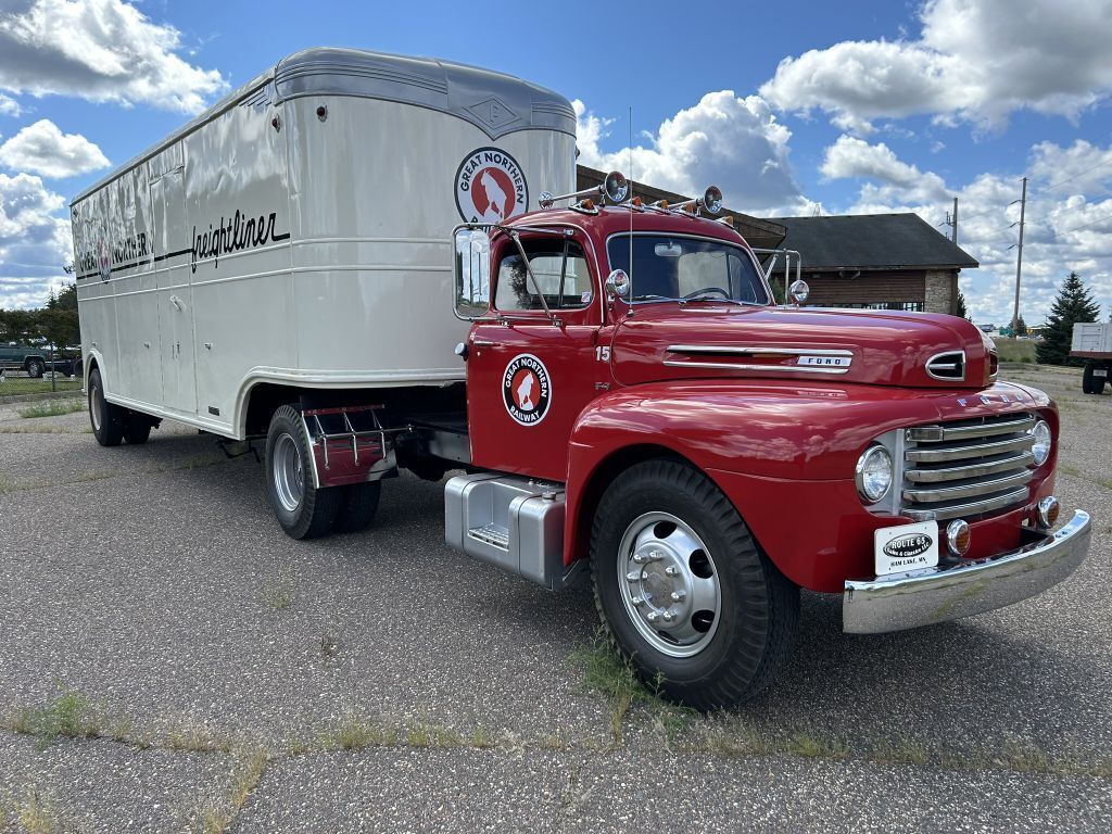 Here is a clean 1949 F-7 Ford ''Big Job'' Semi Truck with a 1945 Fruehauf trailer. This F-7 is finished in Red outside and inside with a tan vinyl bench seat. It is a beautifully restored truck that recently came from an extensive truck collection and runs and drives very well. It shows 11K on the odometer| but there is no documentation to determine if the mileage is actual. The paint has a good luster with only a couple of minor flaws. It measures out to a 148'' wheelbase and 80'' width. Power this big red truck is a Ford 337 CID Flathead V8 rated at 145 HP and paired with a correct 5-speed manual transmission. The body and frame are in great shape. It still has the 6-volt system| and everything electrical works well. Inside| the interior looks fantastic! The seat is in excellent shape| as are all the gauges. The 1945 Fruehauf Warehousemen's Van Trailer has been restored| and the woodwork inside is just beautiful. The trailer measures approximately 27 feet and 8 inches. The trailer has its own title and only comes with the Ford F-7. There is a modern trailer brake controller for added safety on the road. This Ford F-7 and Fruehauf Warehousemen's trailer is a piece of trucker history that is a must-see and must-own. Feel free to ask us for more details. Call us at877-350-0588 /877-350-0588 or email '' '' to inquire about this 1949 F-7 Ford ''Big Job'' Truck with a 1945 Fruehauf trailer. WE ARE OPEN TO TRADES! FINANCING IS AVAILABLE!