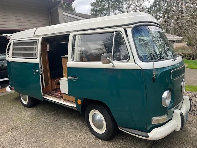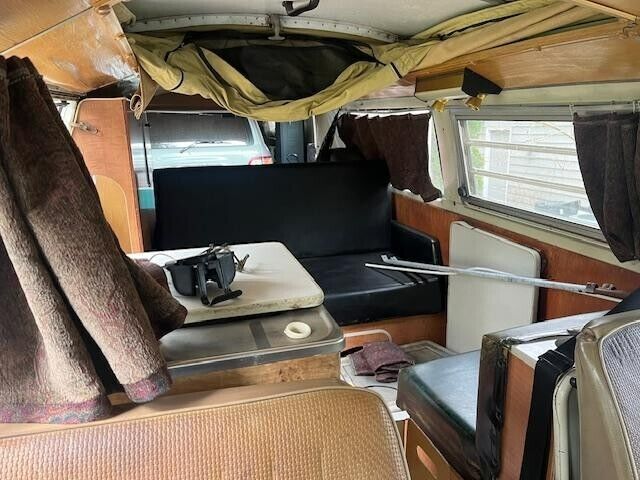 Volkswagen, 1968 Westfalia Camper Bus, 1971 dual port 1600 engine. We don’t know for sure but the odometer reading is 32,700 on the replaced engine. Engine runs well, vehicle drives nicely. Body is in good shape with a few noticeable spots of rust. Pop-up tent works well. Started out all white and is now white and green. We do not know the vehicle’s complete history since new but we do know some things about it. We realize the importance of transparency when selling vehicles. There are several small mechanical issues that could be resolved easily. For example, a windshield wiper is missing, the little sink does not have the bladder below, and the front seats could certainly use new coverings, and inside door panels are loose in some areas. Some knobs and switches are missing/loose as well. We have the original service manual as well. This vehicle is ready for camping and/or can be spiffed up a little.