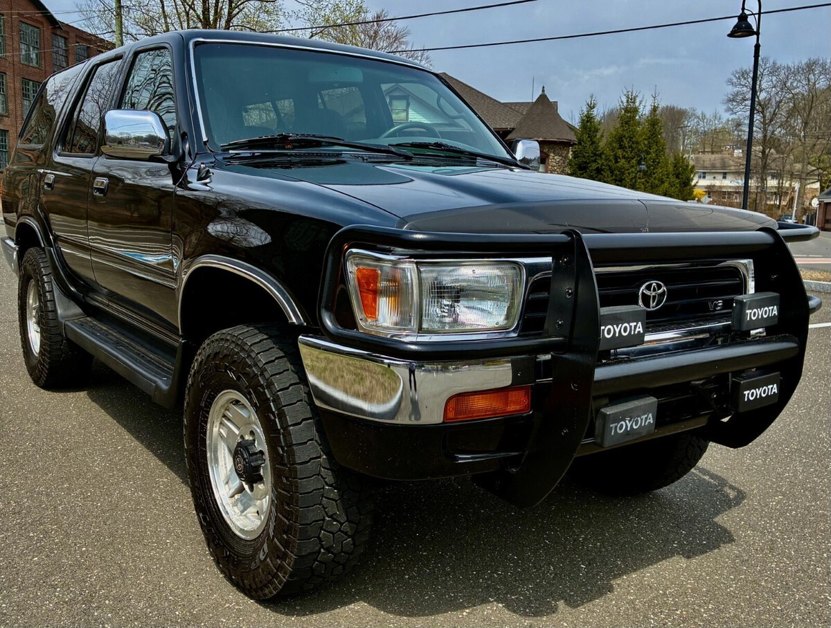 **YOU ARE OFFERED AN INCREDIBLY CLEAN 1992 CLASSIC TOYOTA 4RUNNER THAT HAS HAD METICULOUS CARE IT"S ENTIRE LIFE.**THIS VEHICLE IS OFFERED BY WILTON AUTO PARK,A SMALL PREOWNED DEALERSHIP IN RIDGEFIELD, CONNECTICUT WITH OVER 30 YEARS EXPERIENCE IN SECURING UNIQUE AND WELL CARED FOR PREOWNED VEHICLES FOR CLIENTS ALL OVER THE TRI STATE AREA.********************************************************************************************************************************************THIS 1992 4X4 4RUNNER WAS INITIALLY SOLD IN CANADA AND MOVED TO THE UNITED STATES.OWNER KEPT DRIVING WITH ODOMETER READING IN KILOMETERS,AND THAT"S HOW THE VEHICLE IS AT PRESENT TIME.*************************************************************************************************************************************THE VEHICLE RUNS AND HANDLES AS GREAT AS IT APPEARS,EVERY OPTION AND FUNCTION PERFORMS PERFECTLY INCLUDING THE POWER MOON ROOF!!!!DEALER WANTS NO ONE DISAPPOINTED WITH THEIR PURCHASE AND REQUESTS ALL SERIOUS BUYERS TO CALL OFFICEAT 203 5059519 ANY DAY 7AM-7PM WITH ANY QUESTIONS OR CONCERNS. ***************************************NATIONWIDE SHIPPING AND DELIVERY IS AVAILABLE AT DISCOUNTED DEALER RATES SHOULD BUYER REQUEST.********************************************************************************************************************************. **************************************************************************************************************************************************.VEHICLES OF THIS AGE ARE SOLD ON A BILL OF SALE TO HAVE VEHICLE REGISTERED AND SECURE PLATES.A $395 PROCESSING FEE SHALL BE ASSESSED TO ACCEPTED SALE PRICE.A $1000 DEPOSIT BY CASH,WIRED FUNDS,ZELLE,OR CERTIFIED CHECK IS REQUIRED WITHIN 48 HOURS OF ACCEPTED SALE PRICE WITH BALANCE BY SAME WITHIN 5 DAYS***********************************************************************************************************************************************************.DEALER DEALER CAN STORE VEHICLE FOR TWO WEEKS SHOULD BUYER WISH TO TAKE DELIVERY AT DEALERSHIP IN CONNECTICUT.*********************************************************************************************************************************************