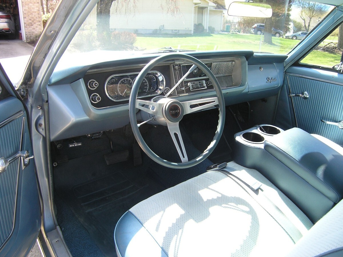 1965 Buick Skylark -3,258 (subject to change as I drive it daily!) miles since swap!!! LS Swap 5.7L/325HP V8 - 4L60E Automatic - Astro Blue Paint - Power Steering - Power Brakes with Front Discs. Offered here is a 1965 Buick Skylark in Astro Blue metallic over blue-and-ivory. With its LS engine swap, this Skylark really is the best of both worlds: period appeal and up-to-date power. The exterior, medium-blue metallic paint is in good condition across the car. Gloss is even across all sheet-metal panels, including the fastback-styled roof. There are no signs of damage or significant deterioration. Hankook® 205/70 blackwall tires are mounted. Inside, the stock look has been similarly maintained. The front and rear bench seats are upholstered in textured ivory fabric with blue vinyl side trim. Very light soiling is noted on some of the fabric, but no excessive wear or damage. Door trim is a handsome combination of pleated blue vinyl and chrome trim, with a circular Buick-logo emblem. The shift lever for the 4L60E automatic transmission is mounted on the steering column. Cabin carpeting is dark blue throughout with black rubber protective mats in all positions. A three-spoke, brushed-metal-trimmed steering wheel with Buick center emblem frames a stock-appearing dashboard (in body-color painted steel) with clever upgrades. A perfectly integrated, chrome-trimmed gauge cluster incorporates a 160-mph speedometer, 8,000-rpm tachometer, and four smaller engine-monitoring gauges for fuel level, oil pressure, coolant temperature, and electrical output. Heating and ventilation controls are stock vertical slide levers. Mileage read-out is digital, and a period-look push-button digital radio and clock are mounted to the right. A single script Skylark badge appears on the glove-box door. Power steering and power front disc brakes are installed. Under the hood, the 5.7-liter, 325-horsepower Corvette-branded LS engine makes for an impressive performance statement. The engine bay and components are clean and properly organized. A free-flow air induction system is in place. Viewed from below, the Skylark's chassis is free of damage. Light surface rust is present on some untreated metal. The newer, full-length dual exhaust system, new gas tank, and performance shock absorbers are all highlights. I have an entire folder of build receipts, original manuals..... NO TIRE KICKERS OR TIME WASTERS!!!!! NO PAYAPAL, VENMO, GIFT CARDS..... WILL NOT SHIP. SOLD AS IS WHERE IS WITHOUT WARRANTY!