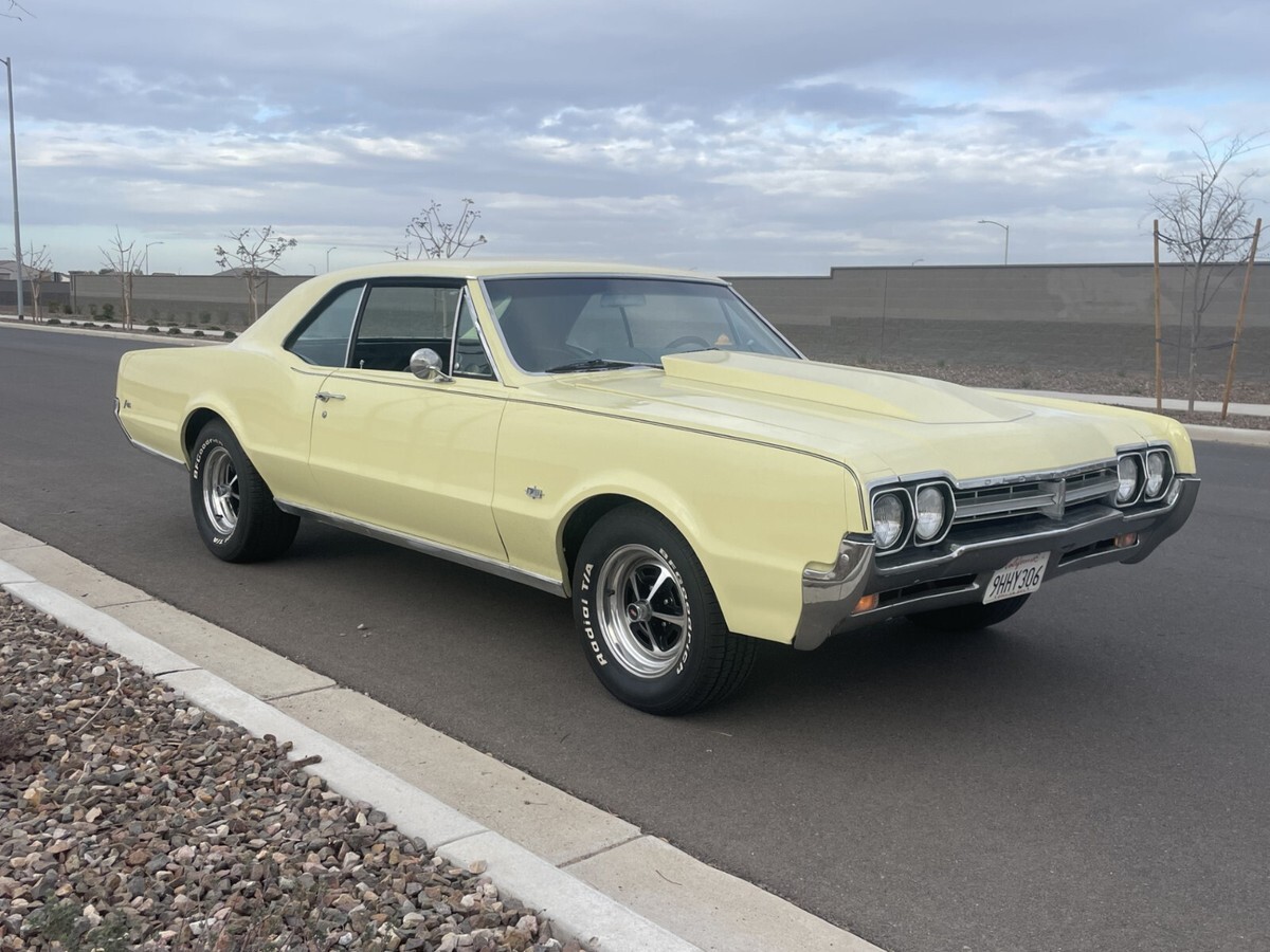 1966 Oldsmobile F85,Nice paint,this car was featured on Motor trend (Road worthy Rescues),you can still watch it on you tube, Car was siting over 10 years, southern Kansas,after some investigation the engine and trans are out of a 196, 442, only rust is surface underneath from sitting in the woods.body real nice,when the car was found someone was trying to make it a race car(missing interior),it has new front seats and carpet, its now a nice street car. I bought it in California (clean title) when I got it. the car had been sitting in the back lot of Motor Trend, for quite a while, The engine was tired and smoking, Clutch not engaging,I pulled the engine and totally rebuilt it at our local Machine shop in Phoenix, the.crank is now 10/10,cylinder walls were at original 4", they had to go 4"03, heads redone,new low pressure high volume oil pump, new pistons,ring,double roller timing chain et, she runs at 180 degrees, new 650 Holley, Headers, 4 speed transmission, no issue, just needed to be resealed, new stage 2 clutch,resurfaced fly wheel,power steering,rear end Olds 10 bolt, 355 gears, and now locked positraction. all head lights work, turn signals, and I fixed the fuel gauge with new float, and factory gauge, 15" Wheels, newer Radial T/A tires,steel hood scoop,rebuilt brakes, and master cylinder, with hoses,I still have the old oil pan that they welded a nut to, and also the old valve covers, just a cool old project with the major work done.I would sell it for 2,000.00 less if you want the black US 15" wheels with BF Goodrich T/A tires (see pictures). NOTE PRICE INCLUDES SHIPPING DOOR TO DOOR TO MOST OF THE LOWER 48 STATES,WITH A LICENSED CARRIER,THAT HAS INSURANCE