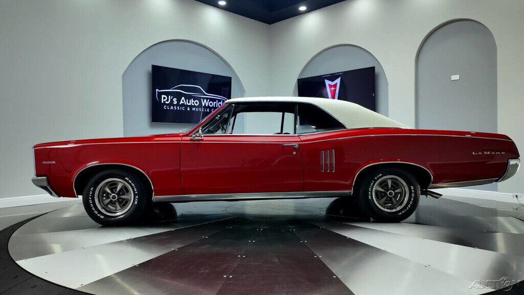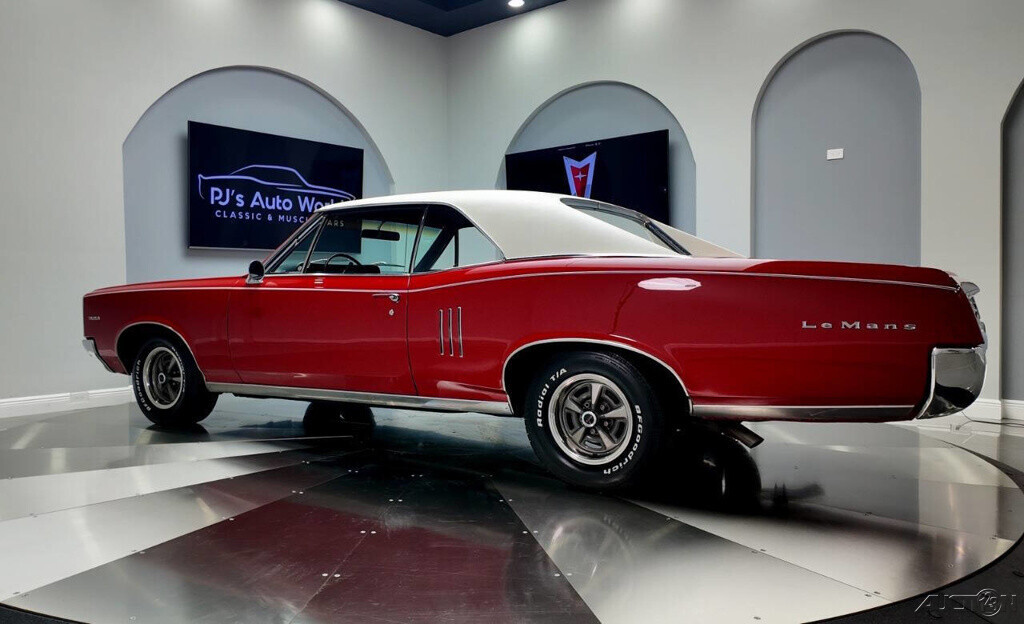 1967 Pontiac Lemans For Sale. 326 cubic inch V8 engine (correct YO suffix code block), power steering, detailed engine bay and underside, dual exhaust, automatic transmission, 14" Rally II wheels with new BF Goodrich Radial T/A tires, correct Regimental Red exterior, white vinyl top, black bucket seat interior, dual chrome mirrors, 3 spoke steering wheel, working factory AM radio, cold factory A/C updated with R134a refrigerant. Nothing beats the experience of owning a '60s era A body GM car, these cars offer an amazing ride and turn heads everywhere you cruise!!! With over 45 years of dedicated service to the collector car community, we've cultivated a wealth of knowledge and experience that we're eager to share with you. Whether you're a seasoned enthusiast or a curious newcomer, our team is here to answer any questions you may have. We understand that acquiring a collector car is a significant investment, and we're committed to making the process smooth and stress-free. To that end, we offer access to financing through reputable sources, ensuring you have the best options to secure your dream car. Additionally, we've partnered with reliable shipping providers to ensure your prized possession arrives safely and securely at your doorstep!!