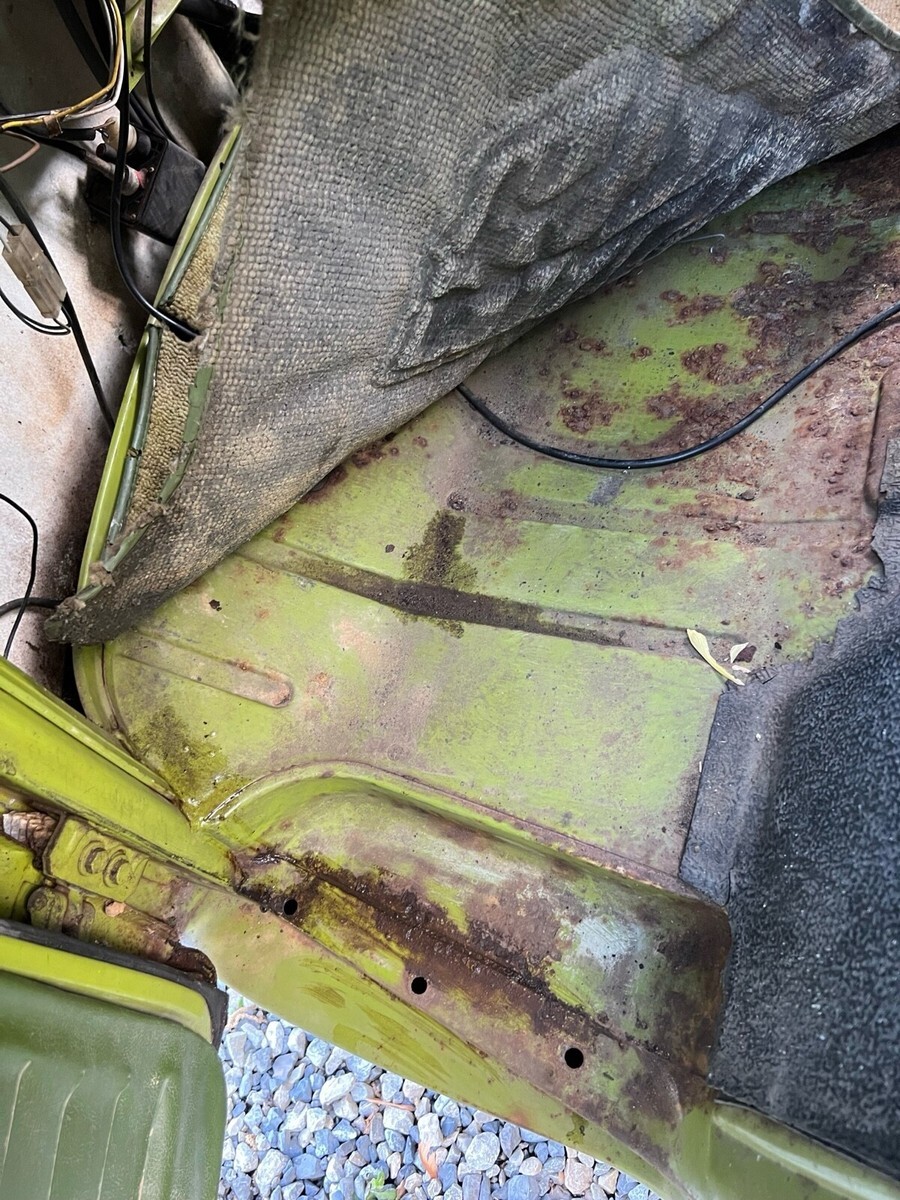 Rot is very minimal compared to New Jersey rust. Battery tray is rotted. Passenger dog leg has rust and dash has rot.