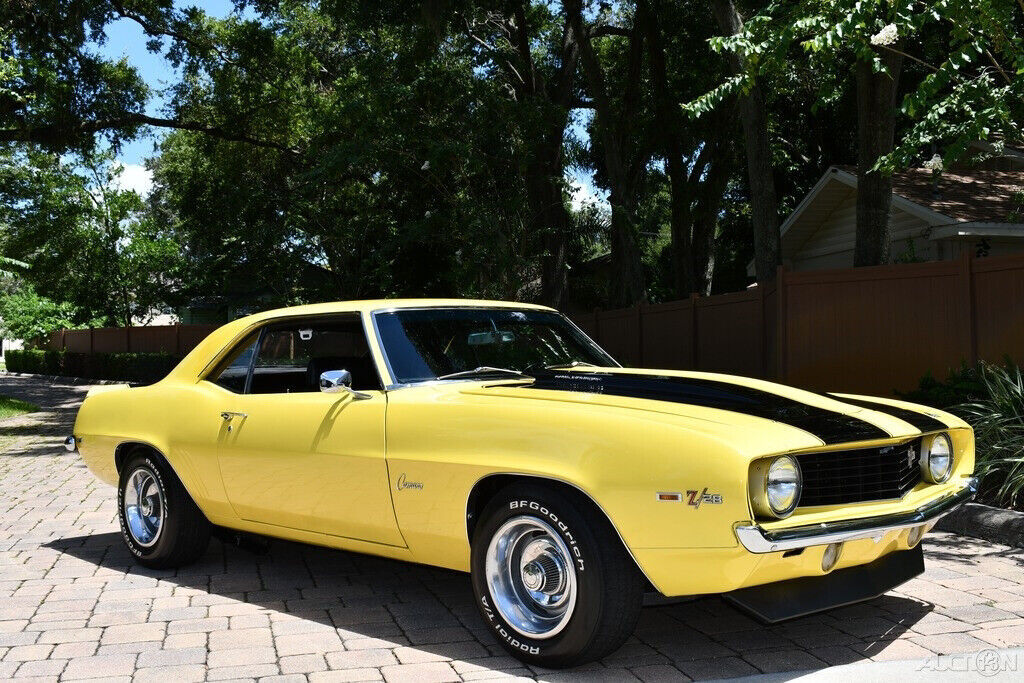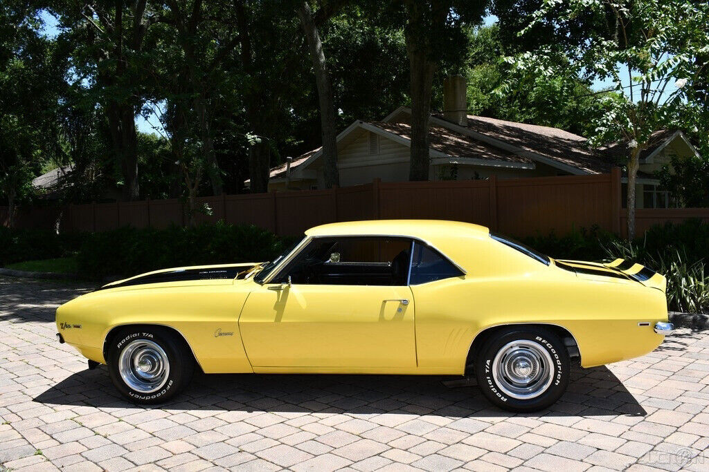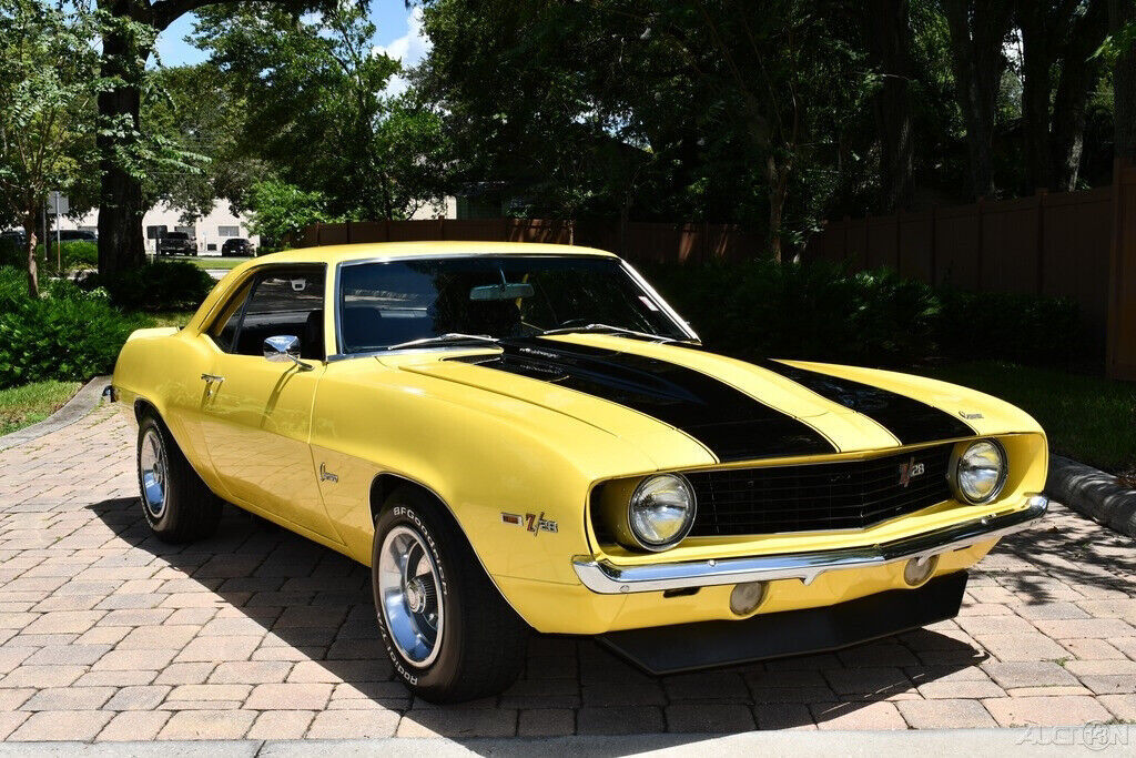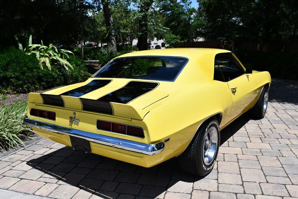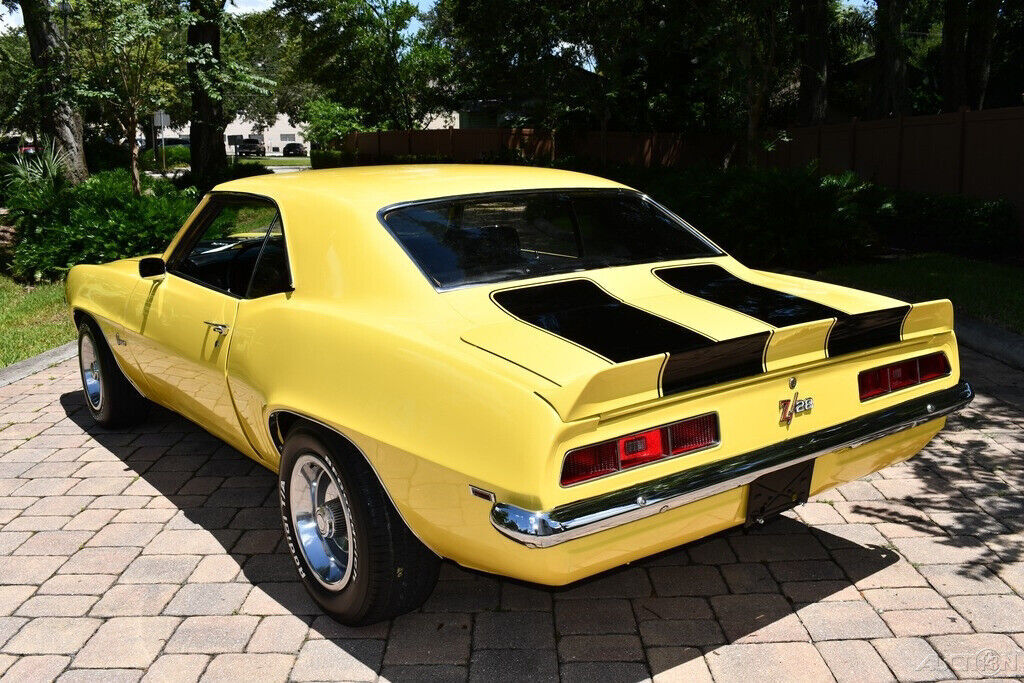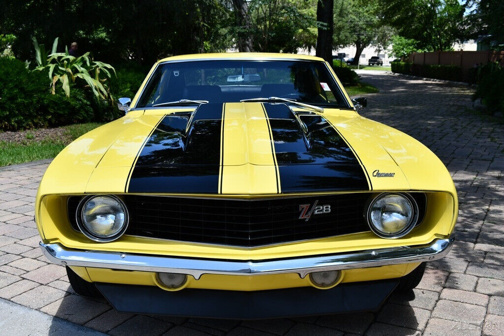 Simply Beautiful 1969 Chevrolet Camaro Z28 Replica 350ci V8 Engine Automatic Transmission Vintage Air Conditioning Power Steering Power Brakes Daytona Yellow Exterior Black Bucket Seats Center Console Horseshoe Shifter BF Goodrich