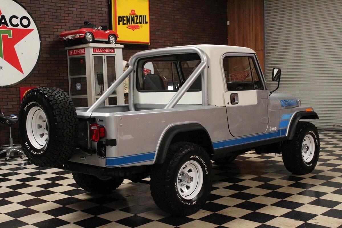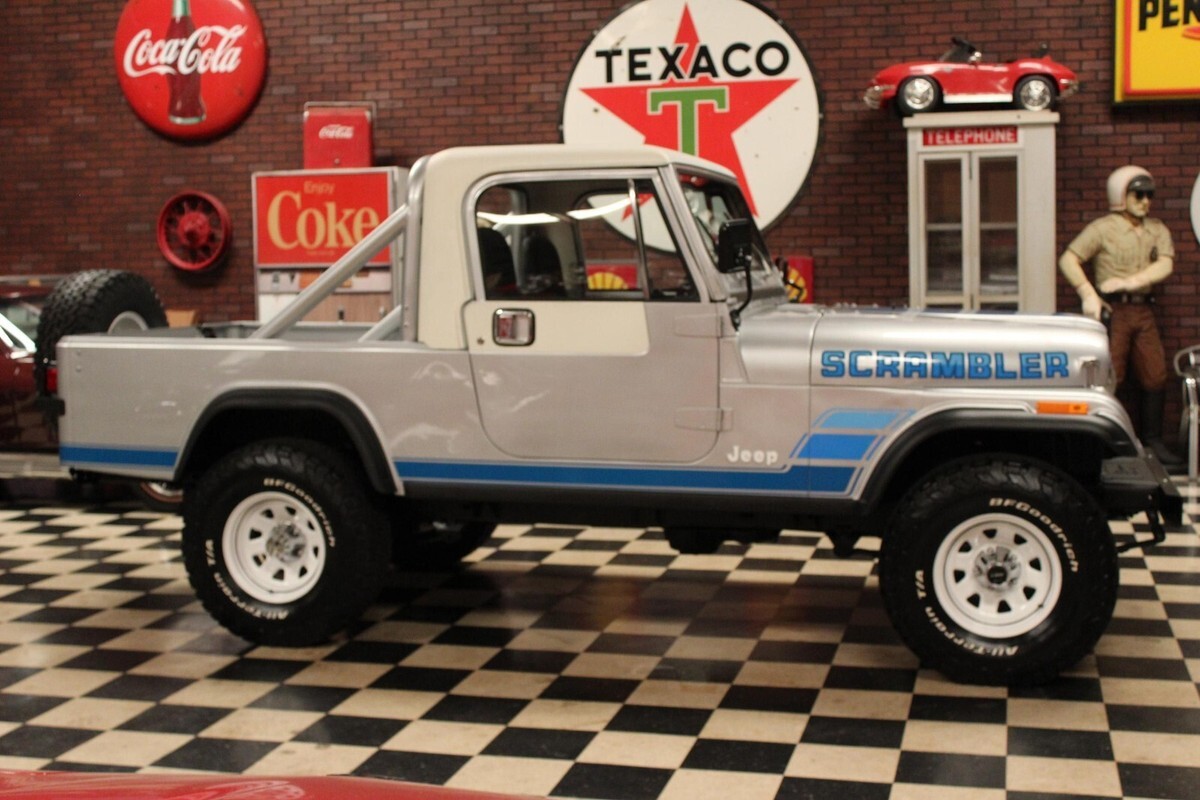 Up for sale is 1984 Jeep CJ8 Scrambler SR with only 67k miles. This Jeep is dressed in very Rare Code 4K Silver Metallic paint with Blue Scrambler stripes with a white top and 1EB Black interior, stunning color combination. This Jeep was just treated to a full cosmetic restoration and a comprehensive tune up. Cosmetically this Jeep has new paint, new paint on top, new paint on wheels, NOS bulkhead was used, new trim etc. Jeep has zero rust and the original paint was faded which called for the refresh. Mechanically this Jeep has, new brakes, new master cylinder, new gas tank, new shocks, new brake lines, new tires, new gas lines etc. The interior of this Jeep is all original and is excellent condition. In 1984 only roughly Four Thousand Jeep Scramblers were produced and less than that were SRs and less than that had this color combination. This could be the only Jeep Scrambler in the world in this spec, or at least in this low mileage condition. This Jeep has the 4.2L 6 cyl engine, T176 4 speed transmission, power steering and tilt wheel. This is a stunning Jeep with a rare color combination built in a low production year. This is a collector grade Scrambler and would be at home in any collection. Ready to enjoy. For a better look at this beautiful Jeep please view the video below. For many more photos please see the information in the last photo of this ad. *WE DO OFFER FINANCING* For more information please call or text Colin King at 334-618-7530.*THIS VEHICLE IS FOR SALE LOCALLY THEREFORE THIS AUCTION MAY END AT ANYTIME*
