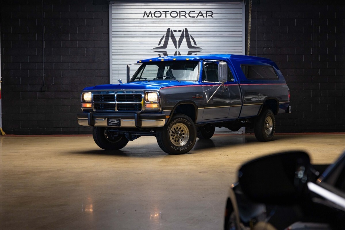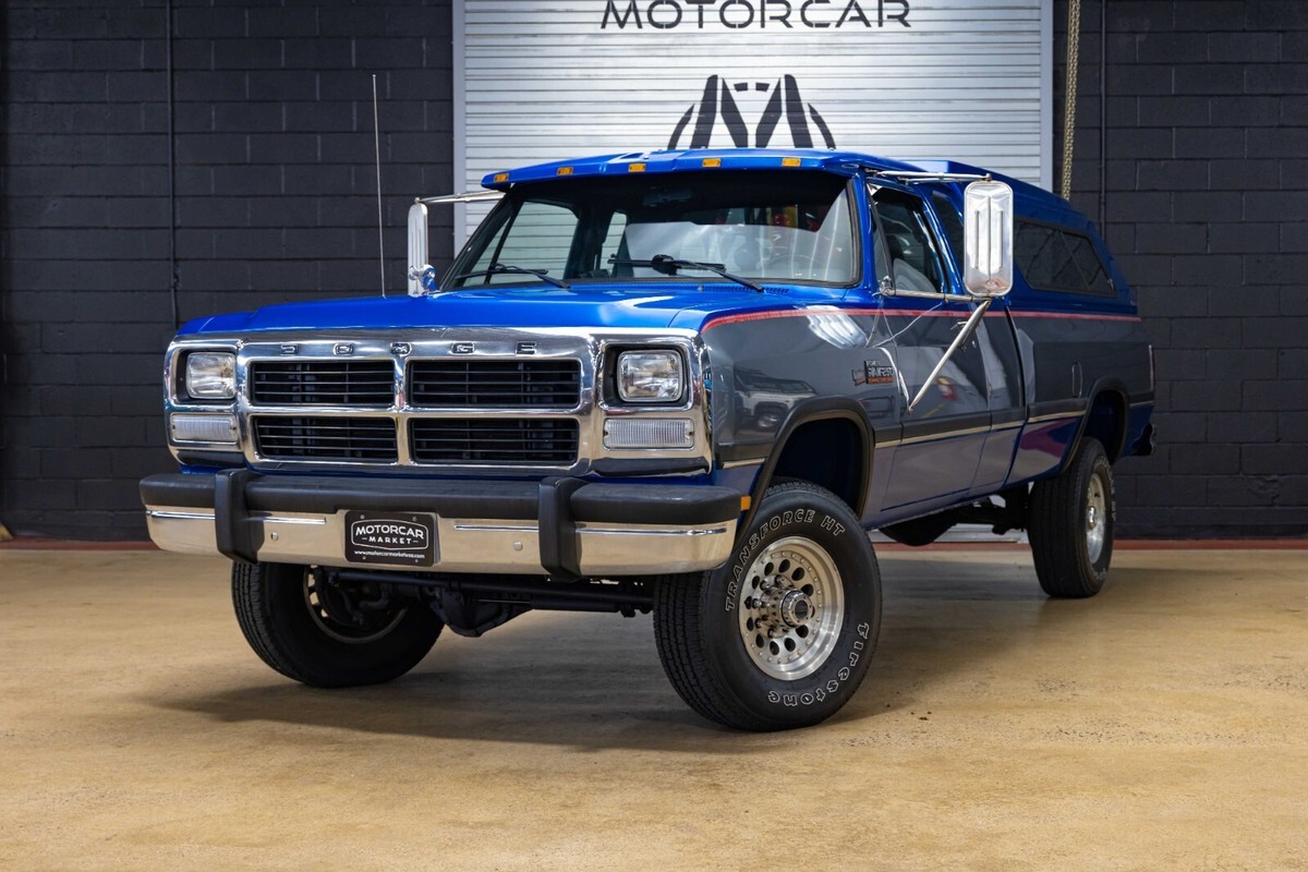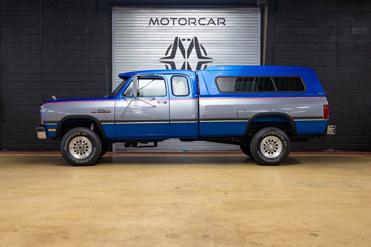 1992 Dodge POWER RAM 250 Year: 1992 Make: Dodge Model: POWER RAM 250 Trim: LE Body Style: Pickup Stock MM5804 Mileage: 150022 Engine Size: 5.9L Turbocharged Diesel I6 OHV 12V FI Engine Transmission: 5-Speed Manual Exterior Color: Blue and Silver Interior Color: Gray-Light Vin: 3B7KM23C8NM545804 A rare find, this W250 is equipped with the desirable Cummins Diesel engine option and a five-speed manual transmission. Fitted with a Gear Vendors overdrive unit, this Blue and Silver extended cab OG Power Ram is rust-free and all original, having had only two owners since new. The color-matched topper envelops the original bed that shows minimal use since new. Please see our extendive images of the undercarriage to get a better understanding just how clean this Dodge is. Call to make an appointment, 201-818-6111 x 203 and ask for Nick.