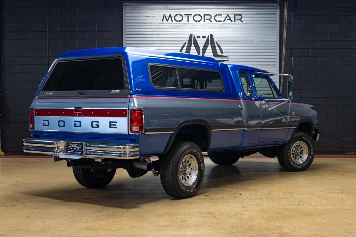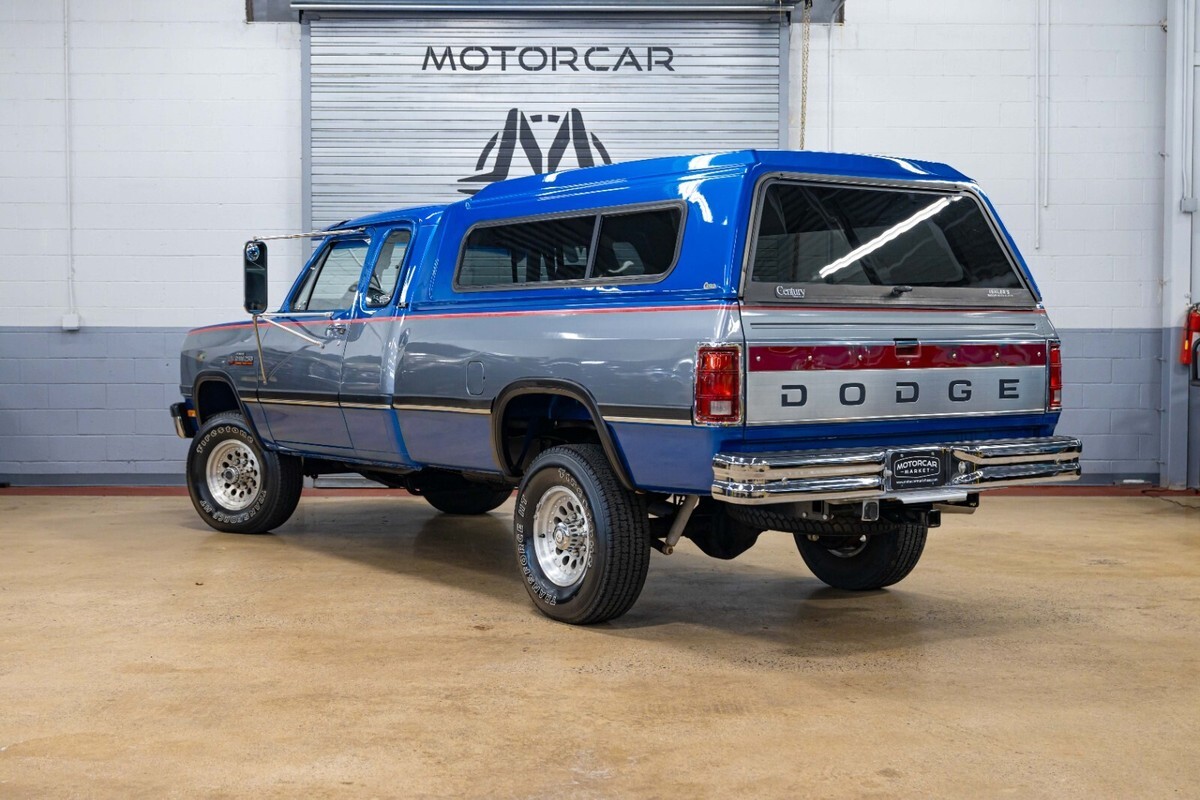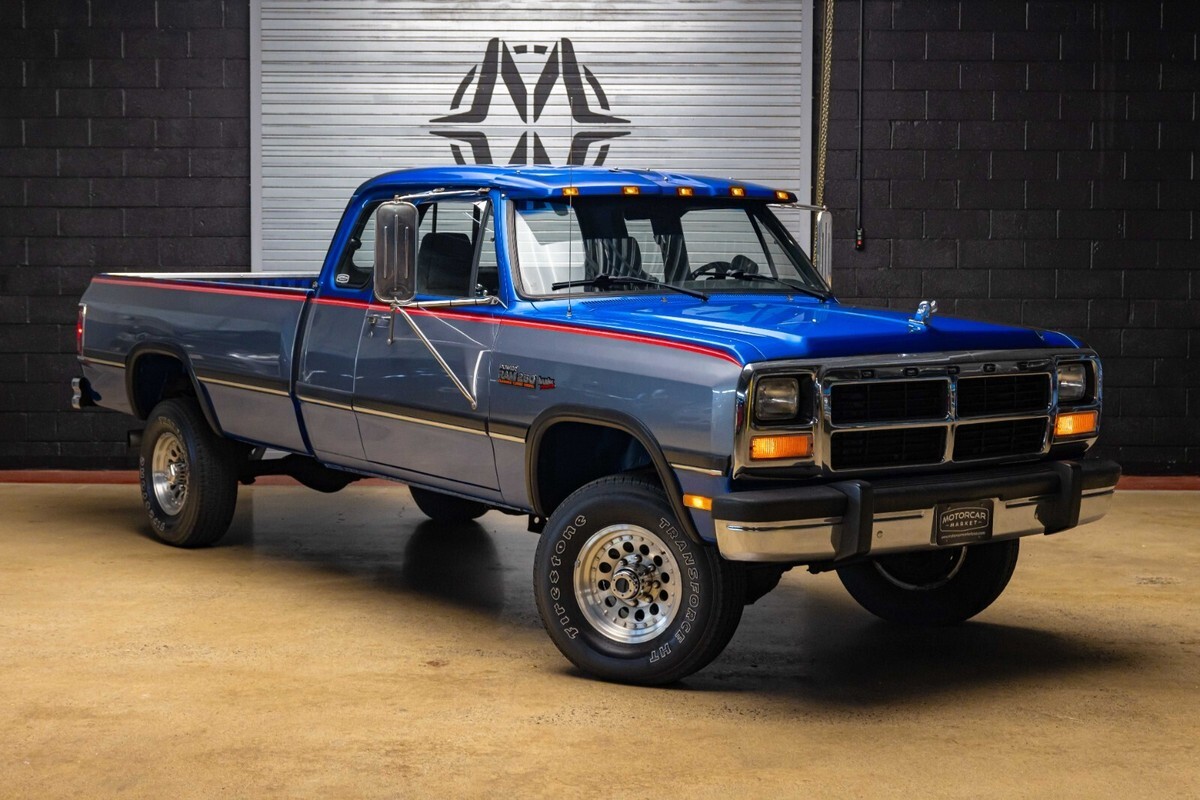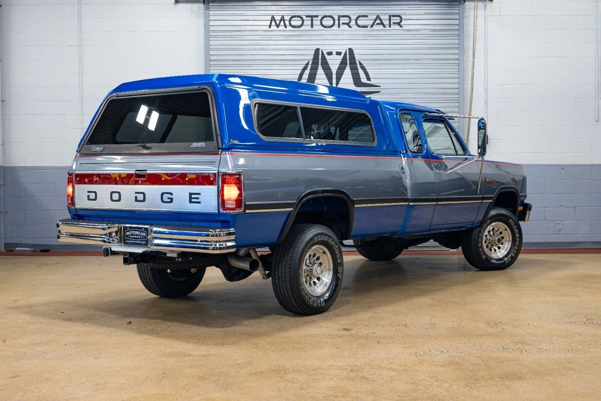 1992 Dodge POWER RAM 250 Year: 1992 Make: Dodge Model: POWER RAM 250 Trim: LE Body Style: Pickup Stock MM5804 Mileage: 150022 Engine Size: 5.9L Turbocharged Diesel I6 OHV 12V FI Engine Transmission: 5-Speed Manual Exterior Color: Blue and Silver Interior Color: Gray-Light Vin: 3B7KM23C8NM545804 A rare find, this W250 is equipped with the desirable Cummins Diesel engine option and a five-speed manual transmission. Fitted with a Gear Vendors overdrive unit, this Blue and Silver extended cab OG Power Ram is rust-free and all original, having had only two owners since new. The color-matched topper envelops the original bed that shows minimal use since new. Please see our extendive images of the undercarriage to get a better understanding just how clean this Dodge is. Call to make an appointment, 201-818-6111 x 203 and ask for Nick.