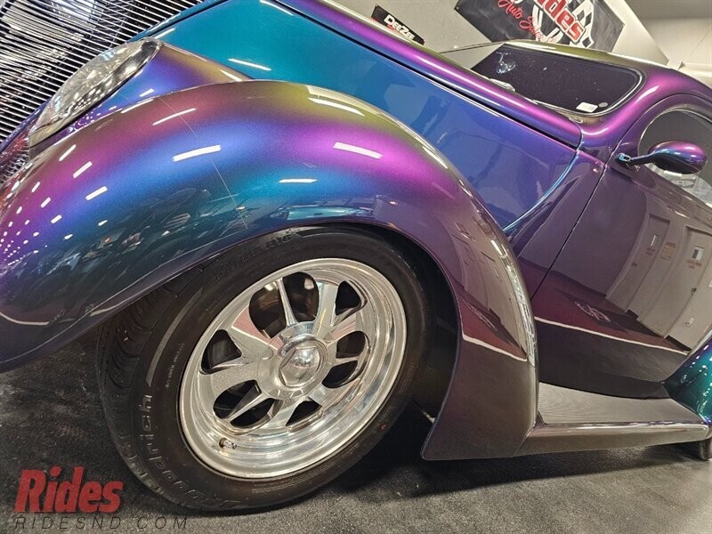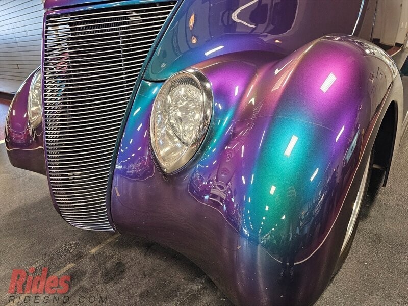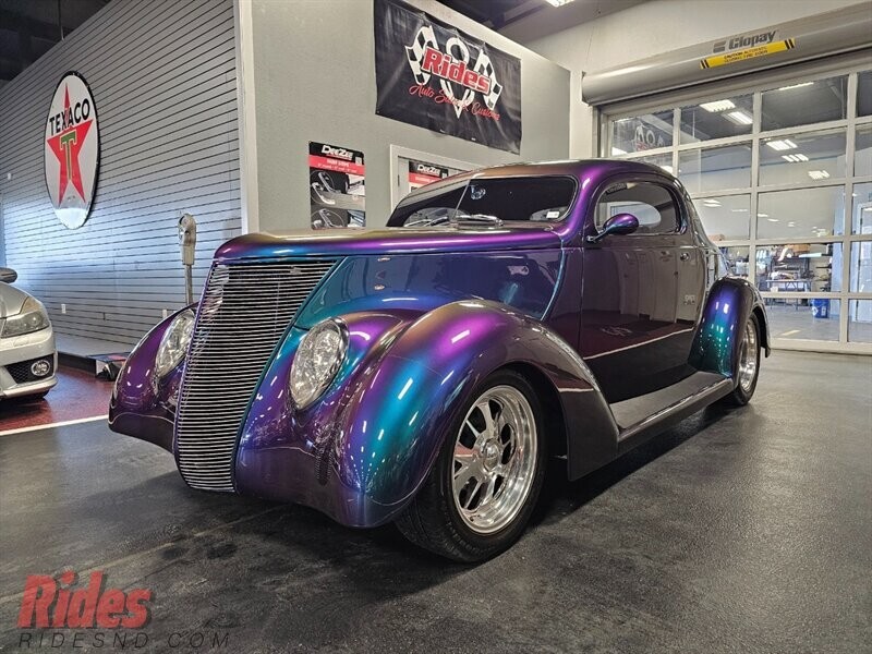 1937 Ford Coupe Custom This late 90s restoration is clean and ready for a new home! Thisrestoration is INCREDIBLE, breath taking,and hosts ALL of the modern driveability that we ALL WANT! Not to mention almost every part is updated with a COMPLETE frame off nut and bolt restoration!! The stance is right with drop springs and blocks in the rear resting ona custom frame with TCI independent front suspension and power steering that was blasted and coated! The Budnik Trilogy IIwheels are 25 years old, look incredible and are resting on new BF rubber. The body is in SUPER good condition and looks nice...... SUPER NICE!TheMinotti fiberglass body with clear bra on front and rear fendersboasts smooth contours with crisp lines.The NEW grill is super clean also. The headlights are clear and free of cracks or chips. The 37 was sprayed with attention to detail in a deepCustom Chromalusion paint with flakethat looks NICE in the light and is breath taking at ANY angle as it changes!The clear was laid out just as well and adds a TON of depth! It reflects extremely well from any angle and panels can be looked down with assuring confidence! The doors shutto reveal panel gaps that line up very well. Every single piece that was painted on this 37 has been color sanded and looks incredible! It gets the attention and looks incredible! All of the glass and gaskets are NEW and lookreally good as well!This 37 runs, drives and rides incredibly well and withit's nice modern touch to a timeless classic you will NOT be disappointed! It turns lock to lock with ZERO scrubbing on the fenders even with the static drop. The engine bay is just as clean as the rest of the car!The firewall has been shaved, detail painted, color sanded and presents itself just as well as the exterior. In this beautiful bay rests All new wiring and a DETAILED5.0L Chevrolet OHV V-8 engine withTuned port injection paired to a 700r4 trans.The custom drive shaft leads to aFord 9-inch diff with 3.70 gears.Everything about his 37 is CLEAN! It starts, runs and drives incredibly well and all thesuspension components are updated!Cruise controlwill also make this car more enjoyable on the open road. It pulls great through every gear and stops great as well with power disc brakes up front in the updated front clip! The custom exhaust and shorty headers makeit sound incredible as well! The engine bay looks really clean and has been dressed up nicely with matching paint that looks just and good as the exterior! As pictures show this 37 presents itself very well. Theinterior is full custom, looks good and the custom paint has been taken in the cab as well. Power windows, electric trunk lift and Vintage Air are nice updates as well.The dash looks just as good as the body. The detail that went into the interior of this37 is crazy!The door panels have also been accented with same fabric and has NEW hardware that ALL work as they should. The detail has been ran into the kick panels and up onto the headliner!The carpet is brand new and free of rips, or stains.A set of digital gauges rest in the painted dash and they look great! This 37 is ready to hit the road and drive to shows in style. It turns heads everywhere we drive it and people love to ask questions about the build ALL the time. It gets allot of attention on our showroom floor and people love to sit in a piece of American history! If you have any questions please call Bobat701-527-7721 Or email [email protected] GOT A TRADE WE’RE INTERESTED!! THANKS FOR LOOKING!!