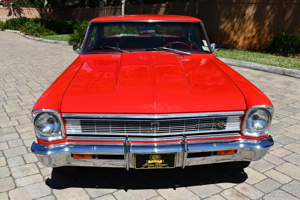 Remarkable Restoration1966 Chevrolet Nova Professionally BuiltBuilt 355 Small Block Enginew/ Roller Cam & Roller RockersMuncie 4 Speed Transmissionw/ High Performance ClutchAluminum HeadsBrodix Aluminum IntakeMSD IgnitionLong Tube HeadersPositive Tractions Rear End4 Wheel Disc Brakesw/ Drilled and Slotted RotorsPowder Coated CalipersSteel Braided LinesViper Red ExteriorRed InteriorProfessionally Installed Pioneer StereoAmazing ChromeNew Weather StroppingSimply Breath taking!!