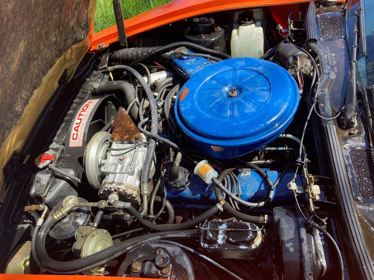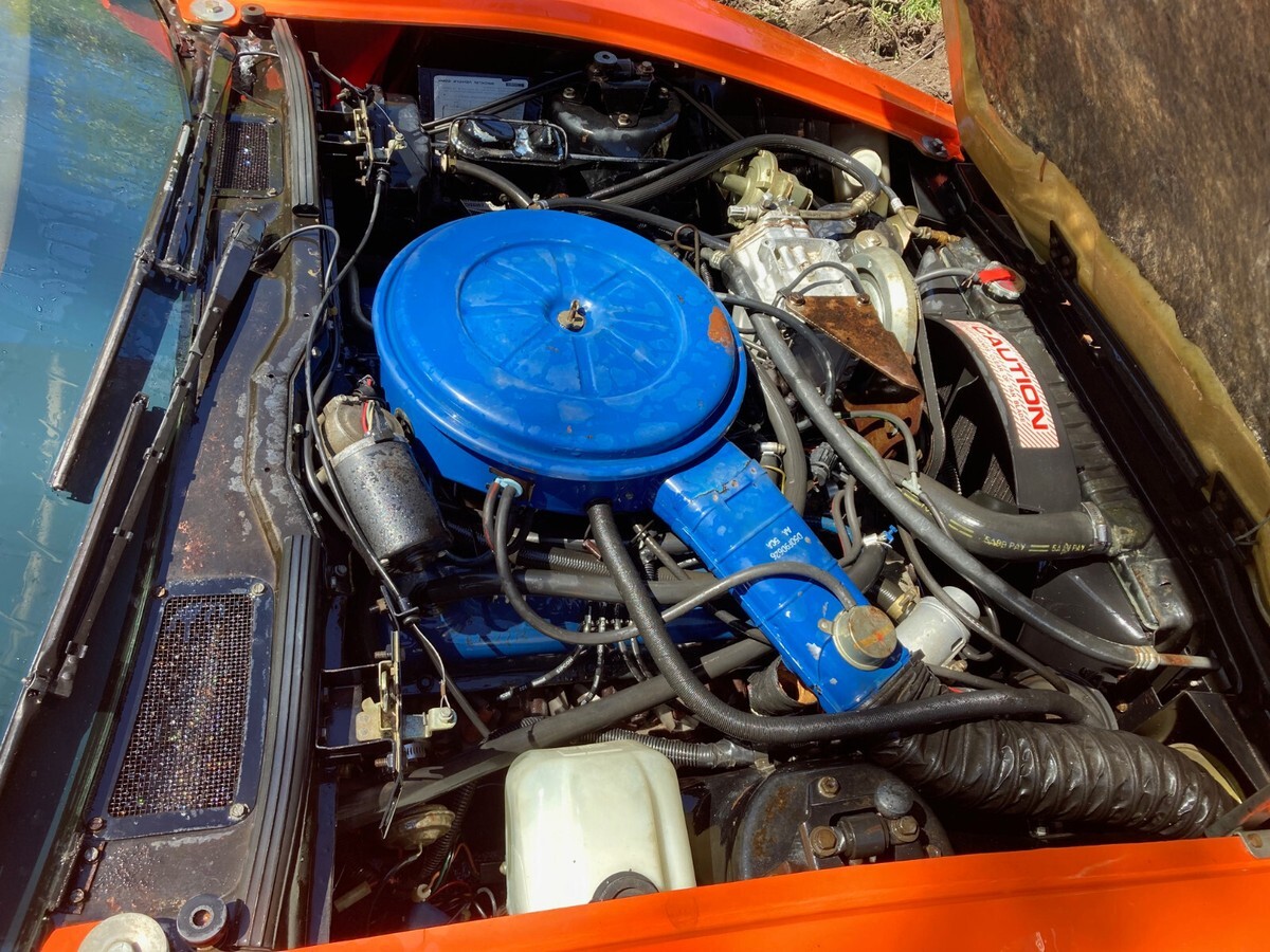 This is a fresh barn find, sitting 35+ years in original factory condition, all the way to tires. It has been in a closed garage, covered by a car cover the entire time. This car has not been started yet, and when we do that part, and get things running, the price will increase. It has the factory 351 Ford engine and Auto trans, and the hoses and cables are all original factory parts. The seats are excellent and all interior parts are in great condition. The carpet has a mouse pee smell, and replacement carpet kits are available. This car will be very simple to recommission to road use, and there is a large support community and parts availability for all aspects of this rare and unique machine.The body is excellent. The only cracks I saw were on the passenger front fender mounting, nearest to firewall, and two small areas on driver's door. The rubber moulding side trim on the driver's side is there, although not attached to the car. The rear piece for the quarter panel is there as well. 13,000 miles, and original tires are not cracked- There is an aftemarket air door kit that the owner bought at a swap meet years ago, and set in the back of the car as well. Photos included here. It has it's instructions.I have a manual for it and the Poster sized wiring schematic as well The car is stored indoors in our facility in Oregon, and if requested, we can deliver this car anywhere in our enclosed trailer for an additional fee to be discussed before purchase please. If Caramel is chosen as method of purchase, I will cancel the sale for your protection as well as my own. They take possession of the vehicle before I see a penny, transfer to their company name, title vehicle, then RESELL IT TO YOU, then deliver to you. Plus, going against all other traditions, I have to release this car to them, and hope they release my funds after their process is done. Up to three months later. We can do a small deposit, you cover delivery, and pay me cash on arrival. Just like old times.