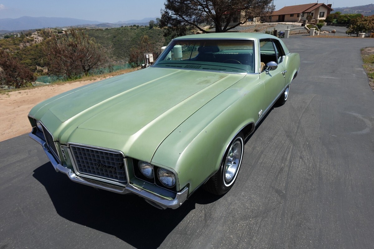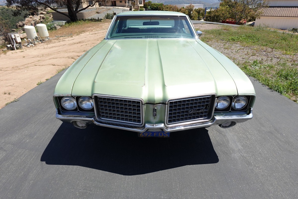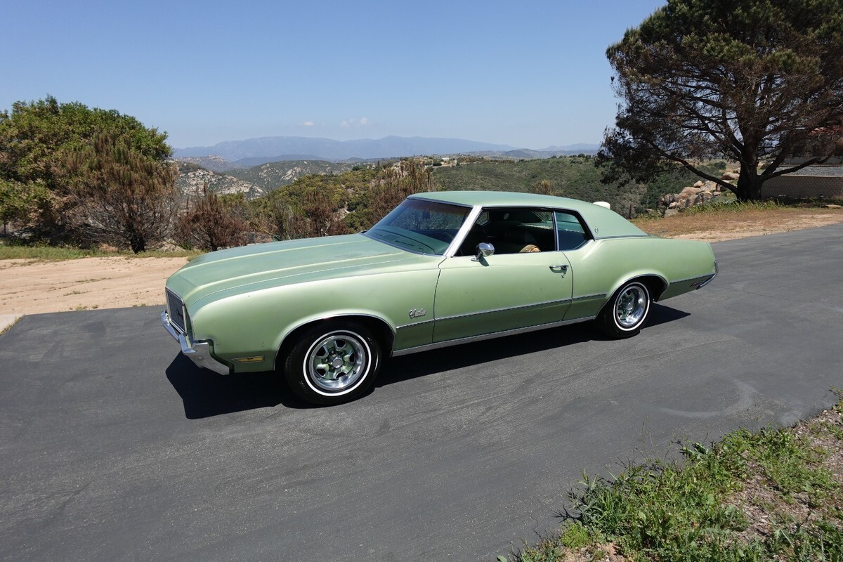 This no reserve auction is for a 1972 Oldsmobile Cutlass Supreme, all original survivor. Runs and drives great. I am the second owner (title in my name with current registration). 350, 4 barrel, 3 speed automatic transmission which has been rebuilt, but I don't know how many miles are on it. It shifts great. Power steering, power disc brakes, factory air condition (not working). I added aftermarket gauges. The temperature and oil pressure gauges work. The amp gauge is not hooked up. I did not replace the gas tank. I just painted the lower half to make it look nice. New fuel sending unit. New alternator and power steering belts. Fresh oil change and filter (20/50 VR1) Newly installed headliner, carpet and sill plates. There was only surface rust on some areas of the floor pan when I had the carpet out. Perfect dash pad (no cracks). The original door panels are in good condition with very minor tears on the sides. New arm rest pads. Original seat upholstery that has some tears (as shown). The radio goes on, but the speaker is not hooked up and is probably no good. The windshield is nice and the windows roll up and down as they should. The windshield wipers work and have new blades. The blinkers work. Even the seat belt and door buzzers work. New dual Flow Master exhaust which sounds awesome. New tires on 14x6 Olds Rally wheels with fresh paint that match the roof. New high flow efficiency 4 row radiator. New door weather stripping, trunk and roof rail weather stripping. One of the pictures shows the door weather strip corner not fully installed, but that has been put on. Detailed trunk with original spare tire and jack. Some areas of surface rust in the trunk which were sanded before detailing. No rust holes. It originally had a dark green vinyl top which the original owner took off. There was no scale or rust. I went ahead and had it painted as close to the original color as I could. It's a shade off. I left the vinyl top moldings on there in case someone wanted to put a viny top back on it. No rust in the front windshield area. There were two rust spots in both lower corners of the rear window, so I had the glass removed, the rust professionally repaired, and then had the rear window professionally reinstalled. Original blue California license plates with original build sheet found under the seat. Some dents and chips in the paint, but a clean CA car. The driver side grill has some pieces missing out of it. It runs and drives really nice. It has 2.73 gears in the rear end. It could be a great daily driver for someone. Even after sitting for two weeks, it starts right up with no smoke or noises.I have more pictures available. Send a message and I'll forward them to you. If you'd like to give me a call, you're welcome to do that. 760-519-3478, no texts please.This item is being sold as is, with no implied warranty. Payment in full is to be made within 7 days of the end of the auction and pick up within 14 days of the end of the auction unless other arrangements are agreed upon. Accepted forms of payment are cash, cashier's check or wire transfer.