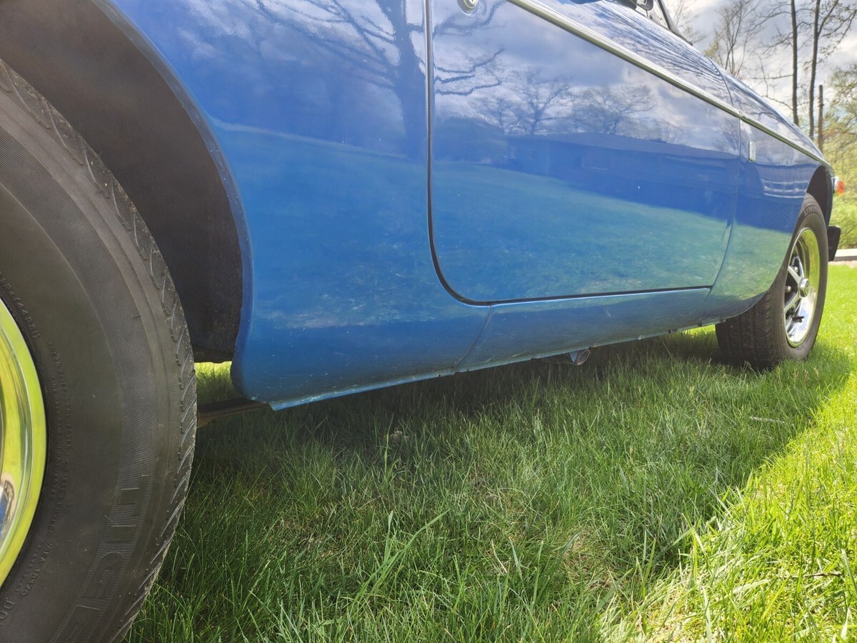 This MG has no rust and super solid clean floors and a clean undercarriage. No rust anywhere. It's the original Pagent Blue paint that does have some chips and touch up but looks excellent with great shine and patina. The trunk and engine compartment are clean as well. The car starts easily and runs great having 70lbs oil pressure and runs cool. The air pump has been disconnected to make the car run better. The engine compartment is completely unmolested and original. Electric fans are functional and an additional fan mounted on the front pulley for additional cooling for the air conditioning. Car shifts up and down in all gears as it should. All gauges and electrics work including the clock, door buzzer and courtesy light. The interior is near perfect with no rips or tears, has comfortable seats, original carpets, door panels and a perfect dashboard. Original jack, spare and boot rails included.