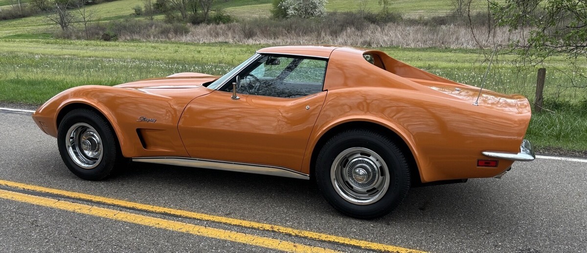 This 1973 Chevrolet Corvette is an original vehicle. The car runs smoothly and is primarily used for car shows. It features a vibrant orange color and has a low mileage of 66,619 miles. This classic Corvette is sure to turn heads and provide a nostalgic driving experience for its owner.