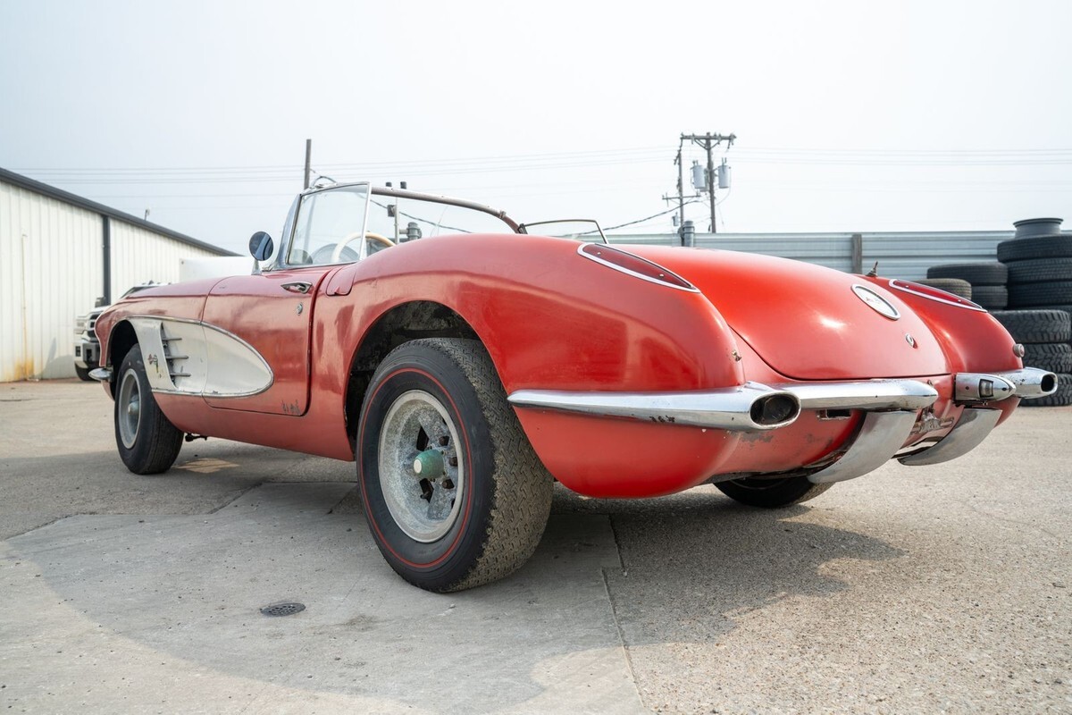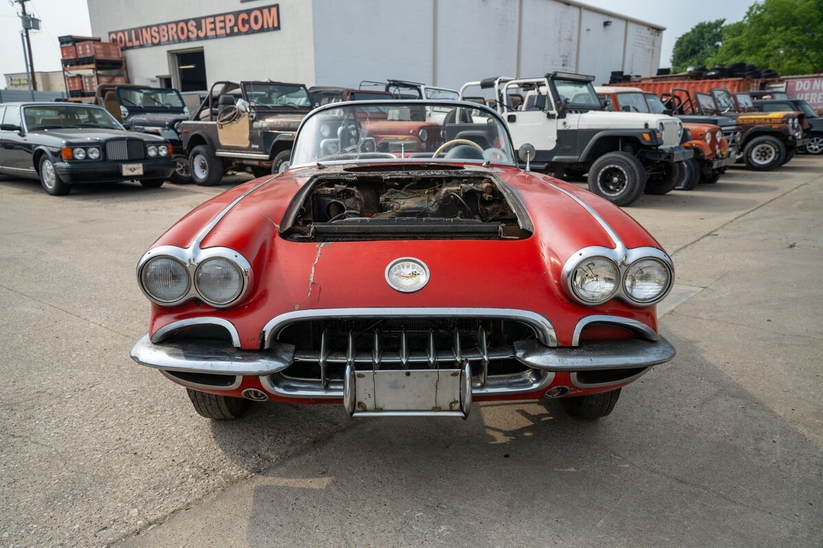 1959 Corvette Convertible. Stored inside since 1975 due to a heater box are fire. Clear Title. No Hood, No Top, No Drivetrain. What you see in photos is what comes with the car. Great start for a restomod !!