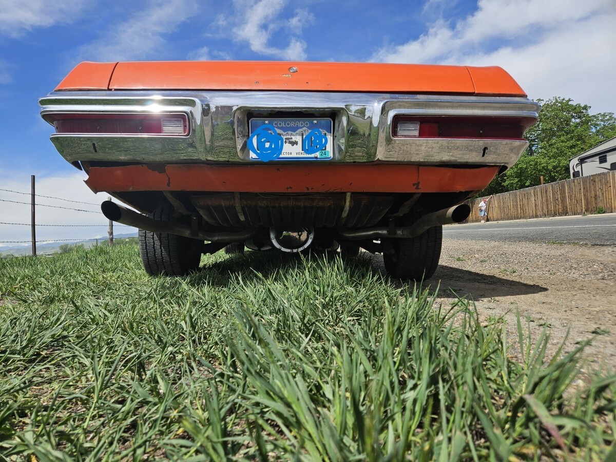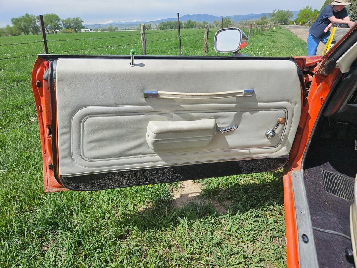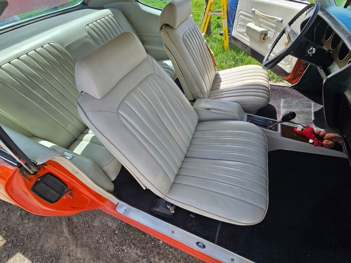 Hard to find, still running well Pontiac Lemans Sport. 2-door. I purchased this car in 2004 and have had little time to do much to her. Life got in the way. I had the radiator rebuilt, put on new tires and installed a custom exhaust. She runs great. I have taken her on long drives many times over the years. She is missing her drivers seat belt. I was told when I purchased her that she was a barn find and the owner I purchased her from only had her long enough to clean her up and repaint her. I was also told her mileage is correct. I cannot confirm either of these. With that, you can tell over the years she was not primed and her paint is chipping and her rust is showing. Coming from Pontiac MI, she has rust! Her numbers show she is all original. I pulled the information from PHS (Pontiac Historical Society) and have it available. 350, 288L with a 2 barrel carb, automatic, power steering, drum brakes all around. Ivory vinyl interior with buckets seats. Driver seat is torn. Carpet and the rest of the seats are in good shape. Her dash is weathered and torn. I have a plastic cover on it. Sundance orange now and originally. Shifter on the floor. There is no stereo and the A/C does not work and hasn't since I owned her. Engine ID matches per the information given from PHS. Her back brakes lock up. Not sure why. I've had her looked at and no one has been able to tell me how to fix them. Its time she goes to a home that will give her the TLC she deserves.