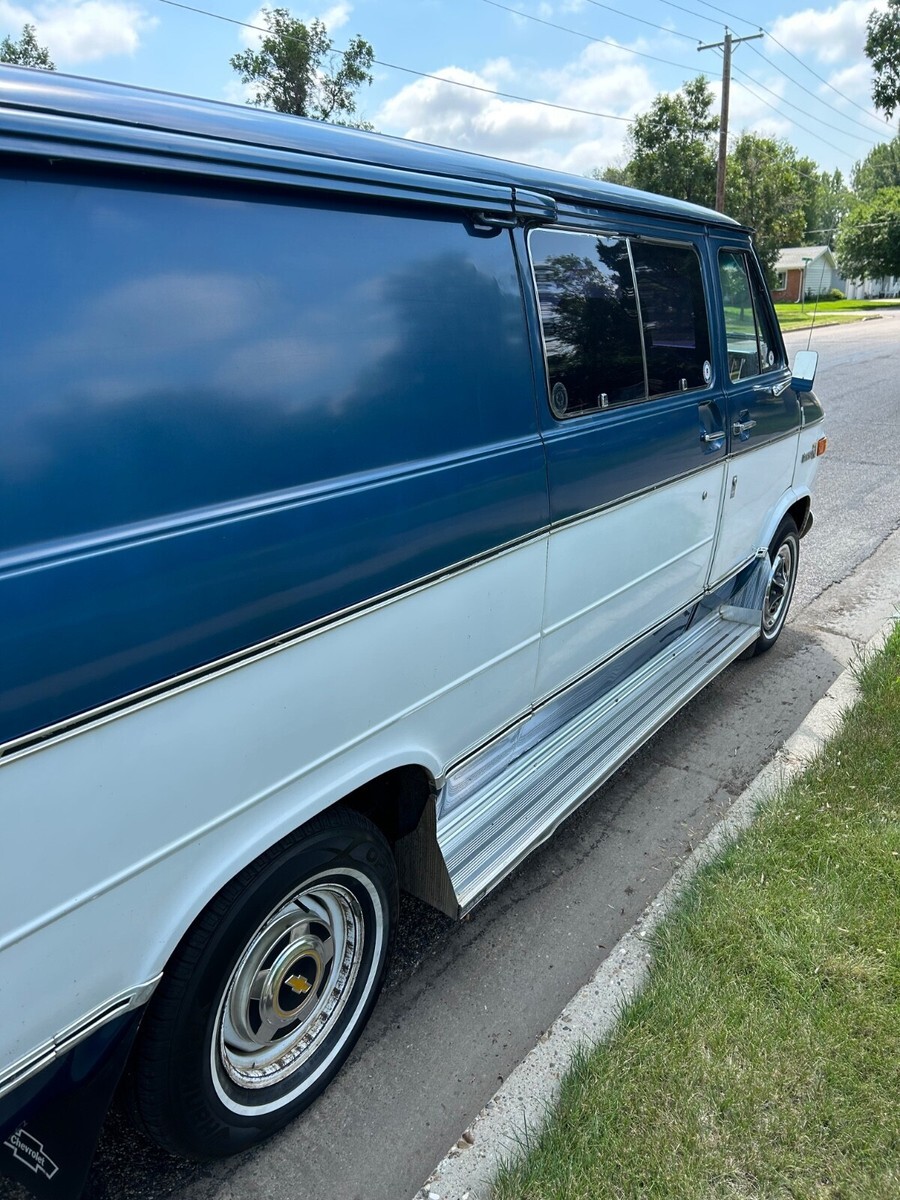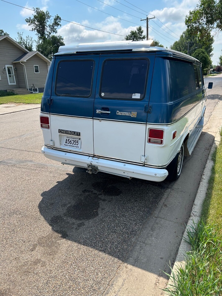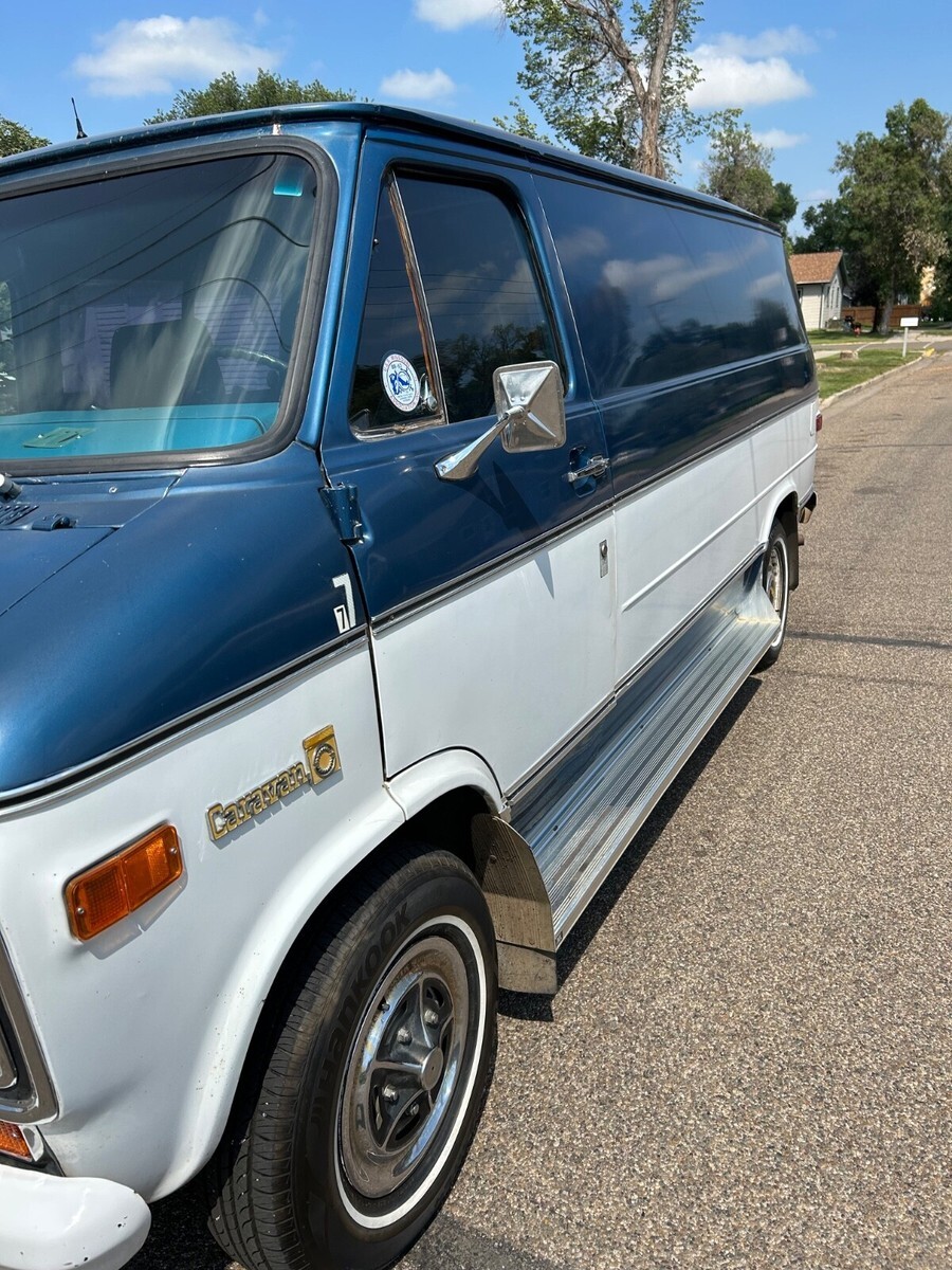 I've a 1977 Chevrolet Caravan G-20 Van is good condition. My dad is the original owner and I'm his son selling it. It has been in the garage for two years since he has passed so I'm selling it. It started right up in the garage, I put premium gas in all the time and it has never been smoked in. It has never been in an accident. It was always stored in the garage and never had any snow or salt on it. The tires are brand new and the battery is a AC Delco. I also had it serviced at a Chevrolet Dealership. The oil is clean in it and I always used AC Delco oil. The ac compressor needs replacing and there's some small leaks underneath. I also put a new exhaust muffler on it. All the glass doesn't have any cracks in it and the inside is very clean. I'll do my best to answer any question you may have and if you want to call me please do so. I do have paper work on what was done at the dealership but the farthest they can go back is 2013.