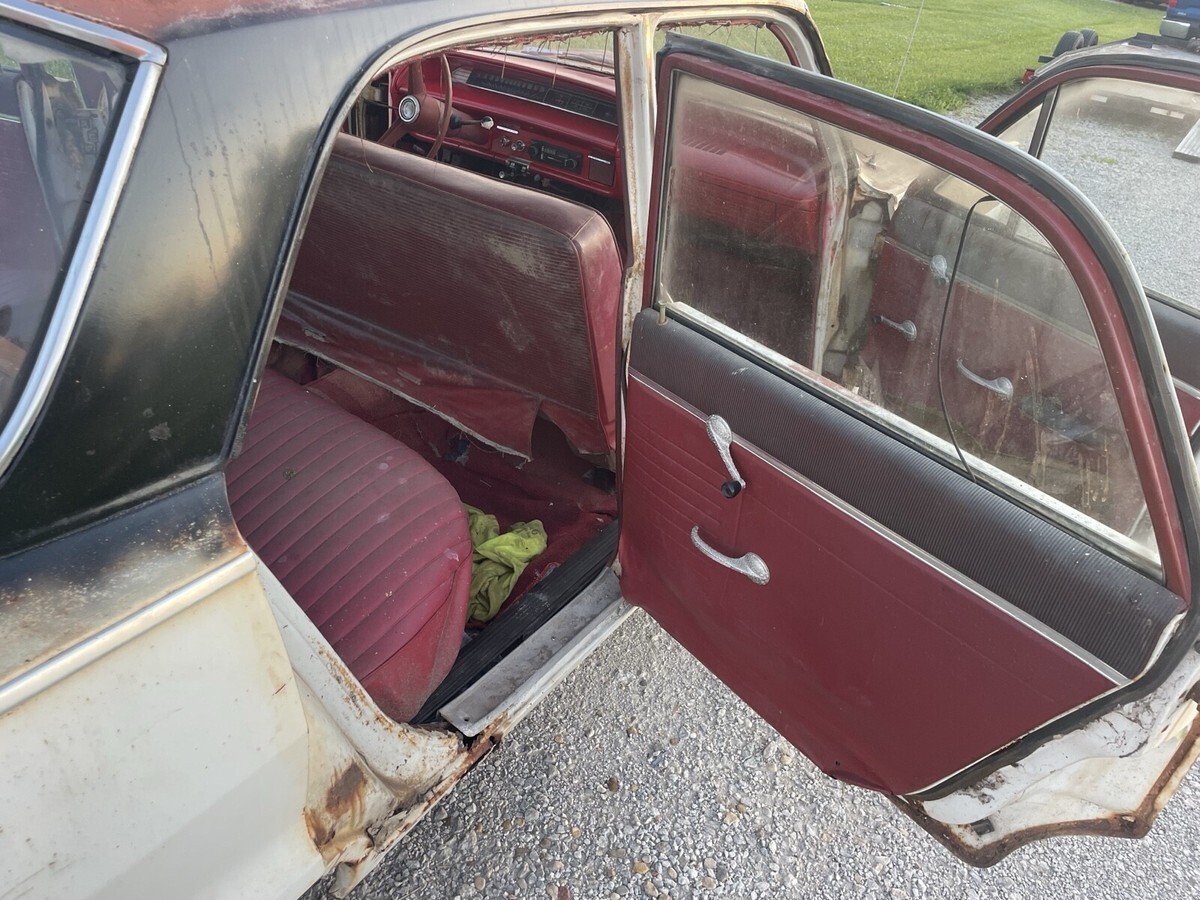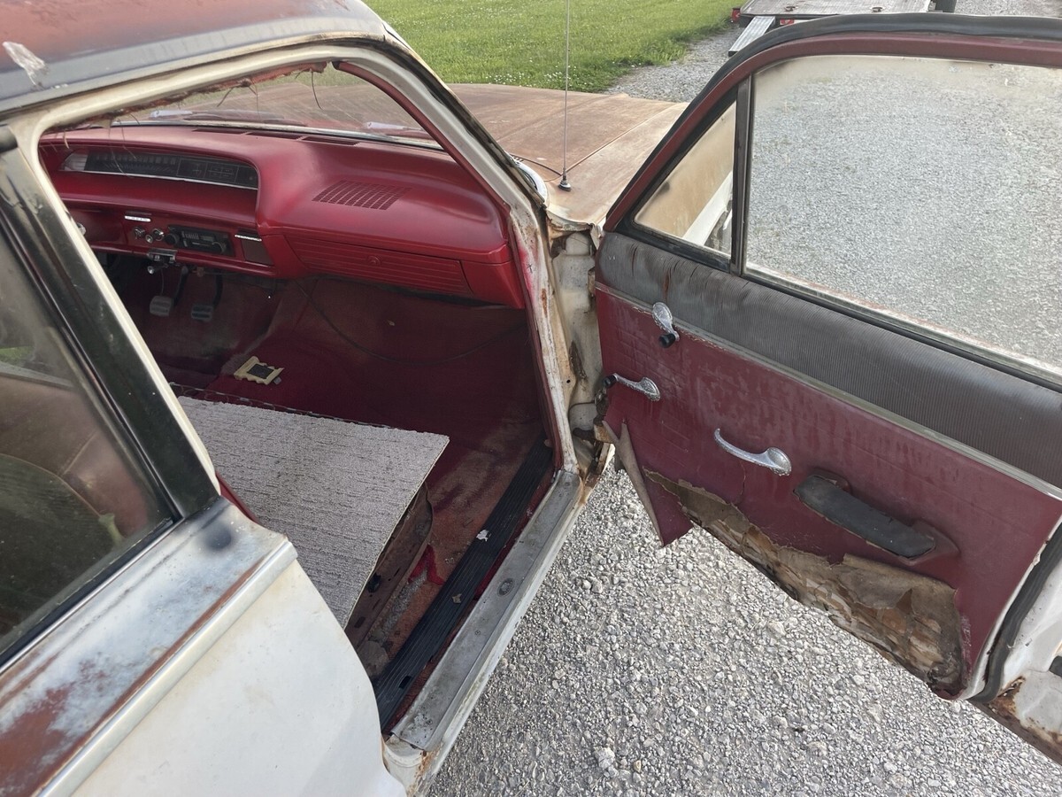 The 1963 Chevrolet Biscayne is a classic vintage vehicle that has been in the same ownership for the past year. This original car is in drivable condition and has a clean title. With a mileage of 88000, this white Biscayne is a timeless piece of automotive history that is sure to turn heads on the road. Perfect for collectors or those looking to add a unique touch to their car collection, this Chevy Biscayne is a true gem from 1963.