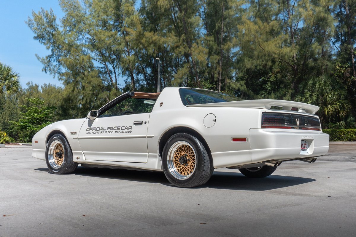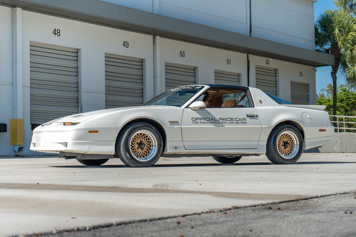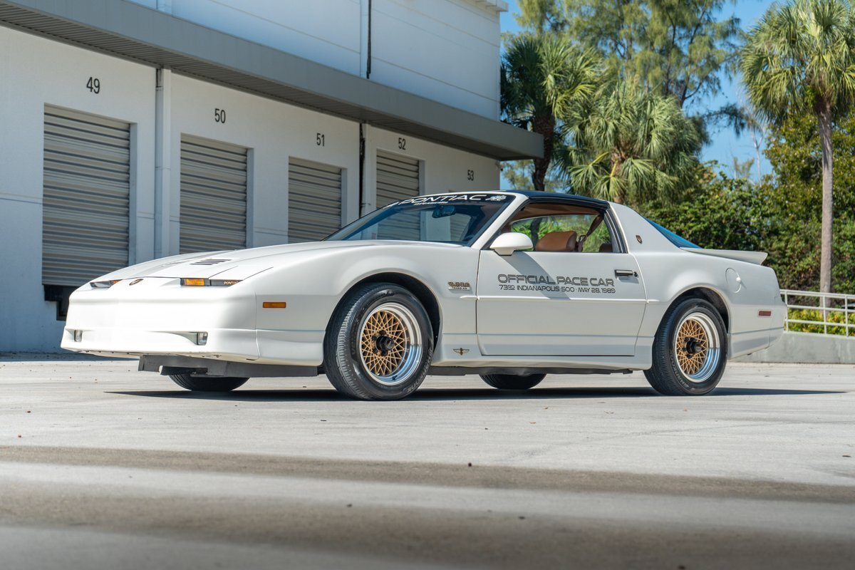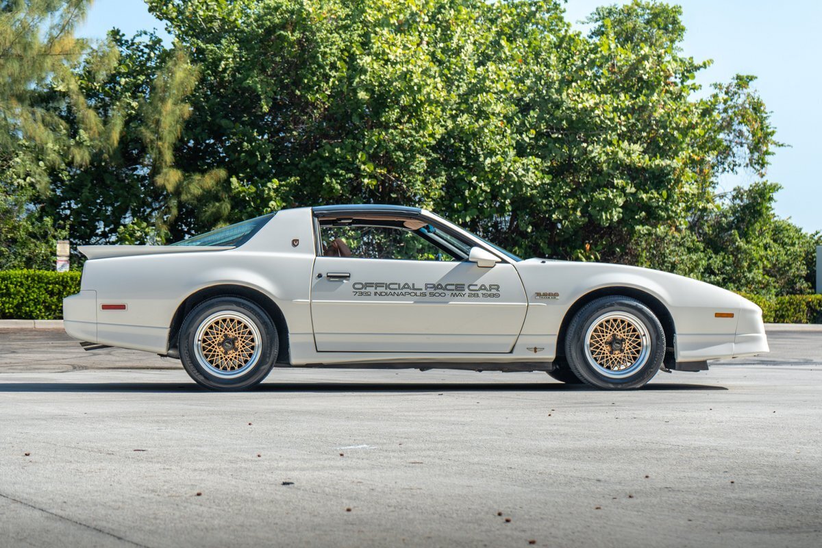 Vehicle Original VIN : IG5FW2WE OFFER SHIPPING WORLDWIDE PLEASE EMAIL US YOUR ZIP OR PORT OF ENTRY FOR A QUOTE! Pre-Purchase inspections welcome, we describe these vehicles to the best of our ability. There are NO returns on vehicles purchased. Please do your due diligence prior to purchase, to ensure this vehicle is to your standards of quality. We offer financing at 10% down with a credit score of over 650. must be pre-approved prior to bidding. Description: This 1989 Pontiac Firebird Turbo Trans Am shows 18k miles and is one of 1,555 20th Anniversary Pace Car examples produced. The car is powered by a turbocharged 3.8-liter V6 paired with a four-speed automatic transmission and is finished in White over Camel leather. Equipment includes a limited-slip differential, the WS6 Special Performance Package, removable T-top roof panels, 16" gold-finished diamond-spoke aluminum wheels, four-wheel disc brakes, a rear spoiler, pop-up headlights, a Delco cassette stereo, air conditioning, and cruise control. Interior: The cabin features front bucket seats and individual rear seats trimmed in Camel leather, and amenities include a Delco cassette stereo with a graphic equalizer as well as air conditioning, cruise control, power windows and locks, and a rear window defogger. The leather-wrapped multifunction steering wheel frames a 140-mph speedometer, a tachometer, and gauges for boost pressure, voltage, fuel level, oil pressure, and coolant temperature. Exterior: The car is finished in White (40) and features the Aero Package, which added revised front and rear fascias and side skirts. Additional equipment includes 20th Anniversary badging, Indianapolis Pace Car graphics, removable T-top roof panels, a rear spoiler, body-color side mirrors, quad exhaust outlets, and pop-up headlights. The 16" gold-finished diamond-spoke aluminum wheels are mounted with 245/50 Hankook Ventus V2 Concept 2 tires. The car came equipped from the factory with power steering and a revised suspension. Drivetrain: The turbocharged 3.8-liter V6 was shared with the contemporary Buick GNX and was factory rated at 250 horsepower and 340 lb-ft of torque. Power is routed to the rear wheels via a four-speed automatic transmission and a limited-slip differential. Key Facts: Chassis: 1G5FW2175KL240105 18k Miles Shown Turbocharged 3.8-Liter V6 Four-Speed Automatic Transmission Limited-Slip Differential White Paint Aero Package Camel Leather Upholstery 16" Gold-Finished Aluminum Wheels Four-Wheel Disc Brakes Removable T-Top Roof Panels Cruise Control Air Conditioning Delco Cassette Stereo Clean Carfax Report All advertised prices exclude government fees and taxes, any finance charges, and any emission testing charges. The price for listed vehicles as equipped does not include charges such as: License, Title, Registration Fees, State and Local Taxes, Smog Fees, and Physical Damage of Liability Insurance. Dealer makes no representations, expressed or implied, to any actual or prospective purchaser or owner of this vehicle to the existence, ownership, accuracy, description or condition of the listed vehicles equipment, accessories, price, specials or any warranties. Any and all differences must be addressed prior to the sale of this vehicle. Your actual mileage will vary depending on how you drive and maintain your vehicle. Additional Fees: There is a $250.00 dealer fee that is not included in the original price. Shipping Assistance We assume no responsibility for damages incurred after the vehicle leaves our showroom. All shipping arrangements are provided by Bullet Motorsports Inc as a courtesy. We are not affiliated with any carrier. Any claims or other communication regarding shipment of vehicles will be between you and the shipper, not with Bullet Motorsports Inc. Quality Disclaimer Due to our inventory size, we are unable to drive every vehicle for long distances. We also cannot guarantee that every gauge, light, window, horn, option, function, etc., will work as it should. Please check your local state inspection requirements. We do our best to inspect these vehicles in every detail and note any imperfections in the advertisement. Please note that we do not guarantee any air conditioning systems, gauges, or electrical systems. Given the nature of the vintage vehicles we sell, these components will need upkeep or attention. In addition, many times these vehicles sit for long periods of time and once you begin to drive them seals harden and gaskets may begin to leak! Classic cars leak. Please make sure you are comfortable with this before buying a vintage automobile. The information contained in this ad is solely for convenience. The description is an opinion only and should not be considered a complete description of any or all faults; it may not be relied upon nor taken as fact or otherwise a representation or warranty of any sort. Please note, we did NOT build or restore the vehicle. Vehicles are sold AS-IS, WHERE-IS with all faults known/unknown and with no implied warranty. Pre-Purchase inspections welcome, we describe these vehicles to the best of our ability.