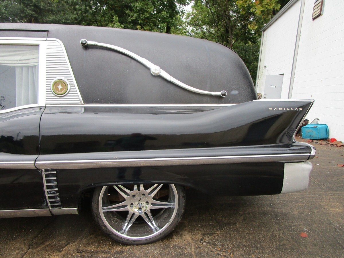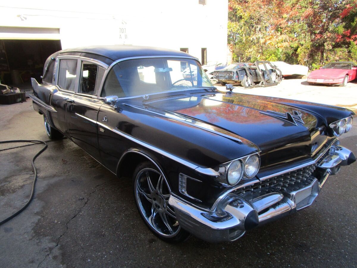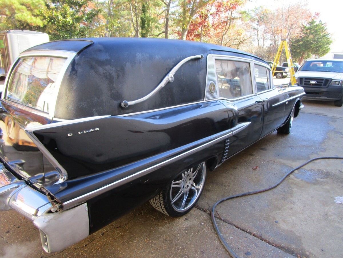 ALERT. our company is an auto parts importer for classic corvettes. we are fire selling our private car collection to cover new tariffs. this is a 25000.00 hearse. selling for 13500.00!!!!! 1958 CADILLAC SUPERIOR SERIES 83 COMMERCIAL LANDAU 3 WAY FUNERAL COACH. ODOMETER SHOWS JUST UNDER 50000 MILES BUT CLEAR AND CLEAN VIRGINIA TITLE SHOWS MILEAGE EXEMPT. THIS VERY RARE 3 WAY SUPERIOR COACH SPENT TIME IN GA. AND MO. BEFORE COMING TO VIRGINIA BEACH VA. FACTORY BLACK CAR WITH GRAY AND BLUE INTERIOR. BODY IS ABOVE AVERAGE BUT DOES HAVE LOTS OF DINGS AND SCRACTHES. LOWER REAR ROCKERS AND WHEEL WELLS HAVE SOME RUST THRU AND BOTH FRONT DOORS HAVE RUST. FRONT FLOOR PANS HAVE HAD SLOPPY METAL REPAIR AND WILL NEED SOME ATTENTION. DASH IS COMPLETE. DOOR PANELS AND REAR CASKET COMPARTMENT ARE ORIGINAL BUT HAVE 65 YEAR OLD WEAR AND TARE. ORIGINAL HEADLINER IS SAGGING. FRONT SEAT IS VERY ROUGH AND WILL NEED TO BE RESTORED. REAR CASKET FLOOR HAS BEEN REPLACED WITH 3/4 INCH PLYWOOD AND 3 WAY TABLE IS MISSING. FRAME IS VERY SOLID. NEW EXACT REPRODUCTION GAS TANK AND SENDING UNIT. LEFT FRONT LEFT REAR SIDE AND RIGHT REAR SIDE FLAT GLASS WINDOWS HAVE CRACKS. CAR STARTS, RUNS, DRIVES AND STOPS WELL. THIS IS AN EXTREMELY RARE MOSTLY COMPLETE RUNNING, MOVING AND STOPPING 58 HEARSE. THIS ONE NEEDS ALOT OF WORK TO BE ROAD READY. PERFECT FOR TRICK OR TREATING WITH YOUR KIDS OR RESTORE AND RETURN TO HIGH END SERVICE. BUY IT NOW REQUIRES AN IMMEDIATE DEPOSIT OF 500.00. MUST BE PAID FOR WITHIN 7 DAYS OF LISTINGS END AND MUST BE PICKED UP IN VA BEACH VA. THANKS FOR LOOKING. JESUS LOVES YOU!!!