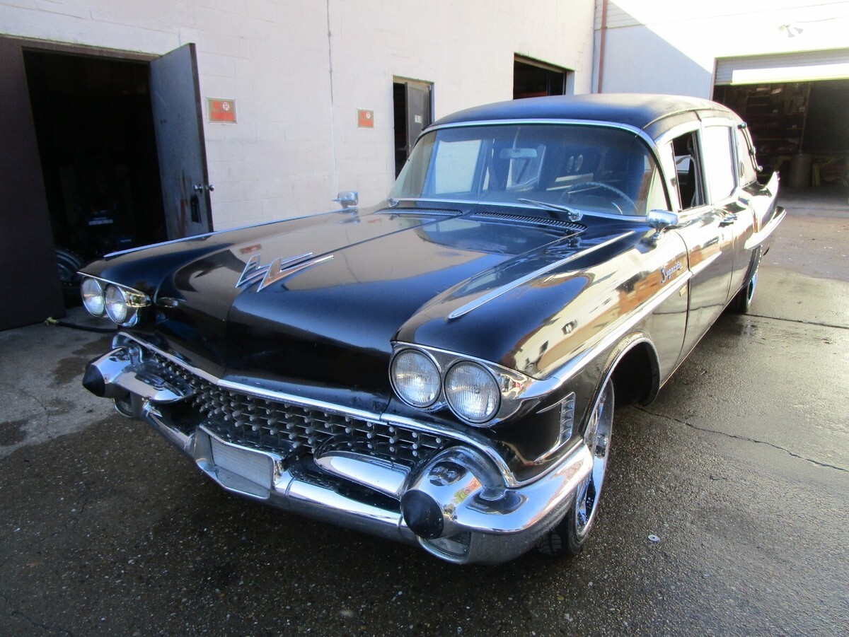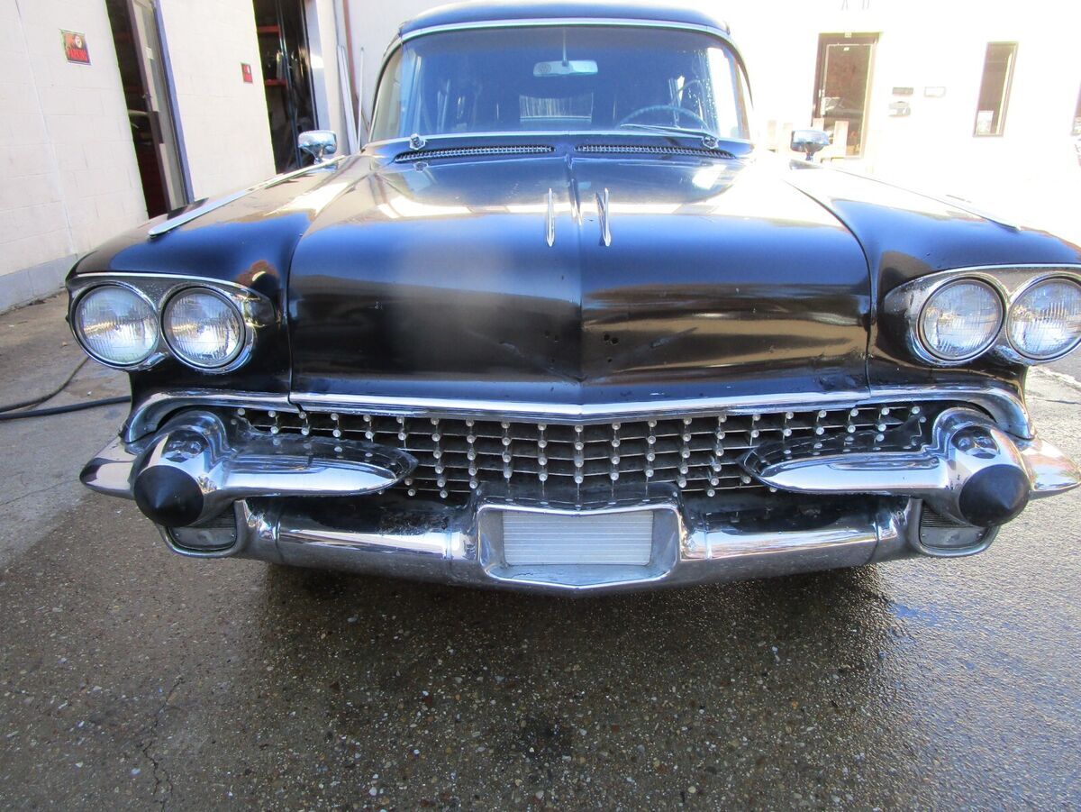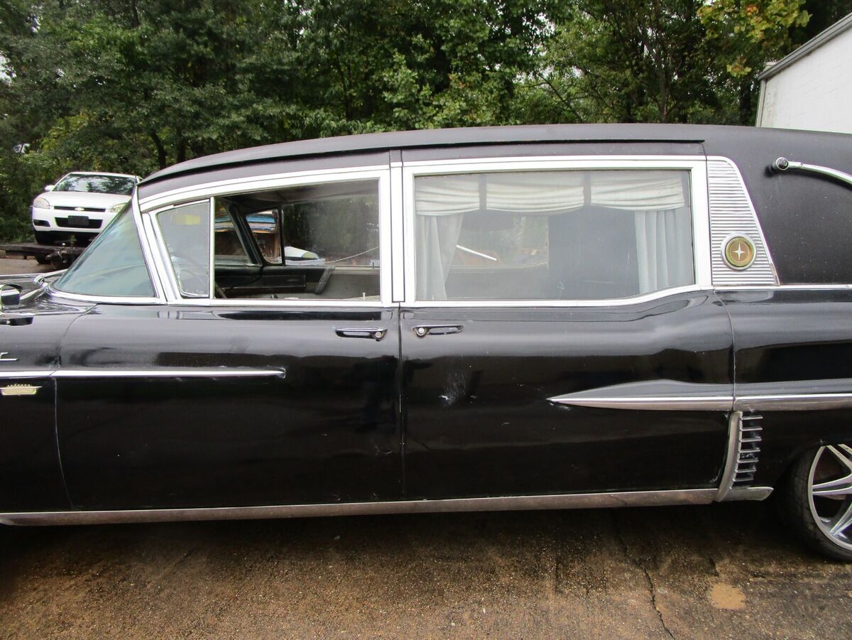 ALERT. our company is an auto parts importer for classic corvettes. we are fire selling our private car collection to cover new tariffs. this is a 25000.00 hearse. selling for 13500.00!!!!! 1958 CADILLAC SUPERIOR SERIES 83 COMMERCIAL LANDAU 3 WAY FUNERAL COACH. ODOMETER SHOWS JUST UNDER 50000 MILES BUT CLEAR AND CLEAN VIRGINIA TITLE SHOWS MILEAGE EXEMPT. THIS VERY RARE 3 WAY SUPERIOR COACH SPENT TIME IN GA. AND MO. BEFORE COMING TO VIRGINIA BEACH VA. FACTORY BLACK CAR WITH GRAY AND BLUE INTERIOR. BODY IS ABOVE AVERAGE BUT DOES HAVE LOTS OF DINGS AND SCRACTHES. LOWER REAR ROCKERS AND WHEEL WELLS HAVE SOME RUST THRU AND BOTH FRONT DOORS HAVE RUST. FRONT FLOOR PANS HAVE HAD SLOPPY METAL REPAIR AND WILL NEED SOME ATTENTION. DASH IS COMPLETE. DOOR PANELS AND REAR CASKET COMPARTMENT ARE ORIGINAL BUT HAVE 65 YEAR OLD WEAR AND TARE. ORIGINAL HEADLINER IS SAGGING. FRONT SEAT IS VERY ROUGH AND WILL NEED TO BE RESTORED. REAR CASKET FLOOR HAS BEEN REPLACED WITH 3/4 INCH PLYWOOD AND 3 WAY TABLE IS MISSING. FRAME IS VERY SOLID. NEW EXACT REPRODUCTION GAS TANK AND SENDING UNIT. LEFT FRONT LEFT REAR SIDE AND RIGHT REAR SIDE FLAT GLASS WINDOWS HAVE CRACKS. CAR STARTS, RUNS, DRIVES AND STOPS WELL. THIS IS AN EXTREMELY RARE MOSTLY COMPLETE RUNNING, MOVING AND STOPPING 58 HEARSE. THIS ONE NEEDS ALOT OF WORK TO BE ROAD READY. PERFECT FOR TRICK OR TREATING WITH YOUR KIDS OR RESTORE AND RETURN TO HIGH END SERVICE. BUY IT NOW REQUIRES AN IMMEDIATE DEPOSIT OF 500.00. MUST BE PAID FOR WITHIN 7 DAYS OF LISTINGS END AND MUST BE PICKED UP IN VA BEACH VA. THANKS FOR LOOKING. JESUS LOVES YOU!!!