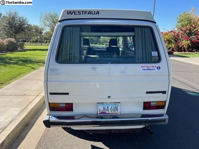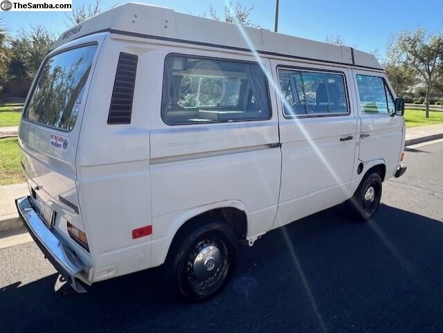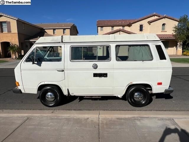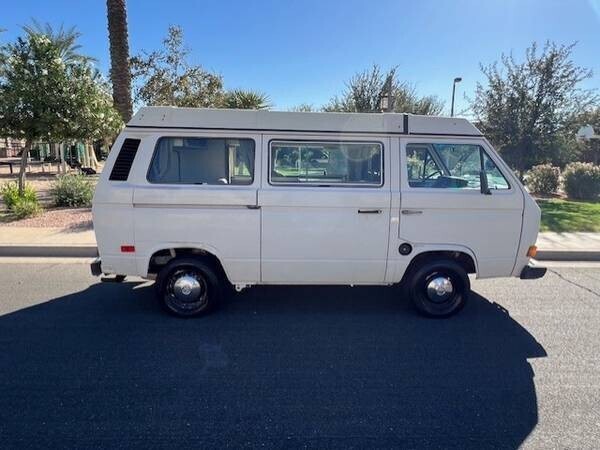 1982 VW Vanagon L Westfalia with 70K original miles! 4 speed manual transmission.2 owners, Clean Arizona title in personal owner's name. Drives and runsgreat!MOST RECENT REPAIRS AND MAINTENANCE REPORT:--58K miles: Replace master cylinder, clutch and pressure plate, shift selector on transaxle, starter, fuel pump, shocks, brakes.--62K Miles: Replacement of seals, gaskets, engine mounts, rod bearing, and rear main seal--66K miles: CV Joint assembly replaced, along with points, shaft rod bushing. Timing was adjusted as well.Detailed Description:This 1982 Volkswagen Vanagon L Westfalia is finished in Pastel Whiteover striped cloth and brown vinyl upholstery, and it is powered by a2.0L air-cooled flat-four mated to a four-speed manual transaxle. AWeber-style carburetor has been fitted, while additional featuresinclude a pop-up camper roof, external utility hookups, and 14" steelwheels as well as an Alpine head unit, a folding rear bench, and akitchenette with a sink and a two-burner stove. The van has beenregistered in Arizona for approximately 30 years and was acquired by theseller in 2024.The van features a pop-up camper roof, sliding side windows, dual side mirrors, a rear window defroster,external utility hookups, and a sliding right-side door. The pop-upmaterial has some tears on each side. Nothing terrible. One is ripped at the seamThe 14" steel wheels wear chrome VW-stamped hubcaps and are mounted with205/70 Champiro tires. The van was factory equipped with an independentfront and rear suspension and rack-and-pinion steering. front disc and rear drum brakes.The front seat upholstery is torn at the frame.The rear cabin is fitted with a bench that folds into a bed in additionto swing-out tables, storage compartments, privacy curtains,residential-style power outlets, and a pop-up roof tent with zip-openwindows and a sleeping loft. The van is also equipped with a kitchenettefeaturing a sink and a dual-burner range. The refrigerator has beenremoved and wear is present on interior trim.Call or text for more info Four eight zero 330 eight one eight five.The fuel-injection system for the 2.0L air-cooled flat-four has beenremoved and replaced by a center-mount Weber Progressive-stylecarburetor. Sleeps 3 easily plus a couple of dogs.Call or text for more info or to schedule a time to come see this awesome camper van in person. Thanks!Carfax shows mileage inaccuracy, but the difference is very small, and it's obvious that 70K miles is the original mileage.