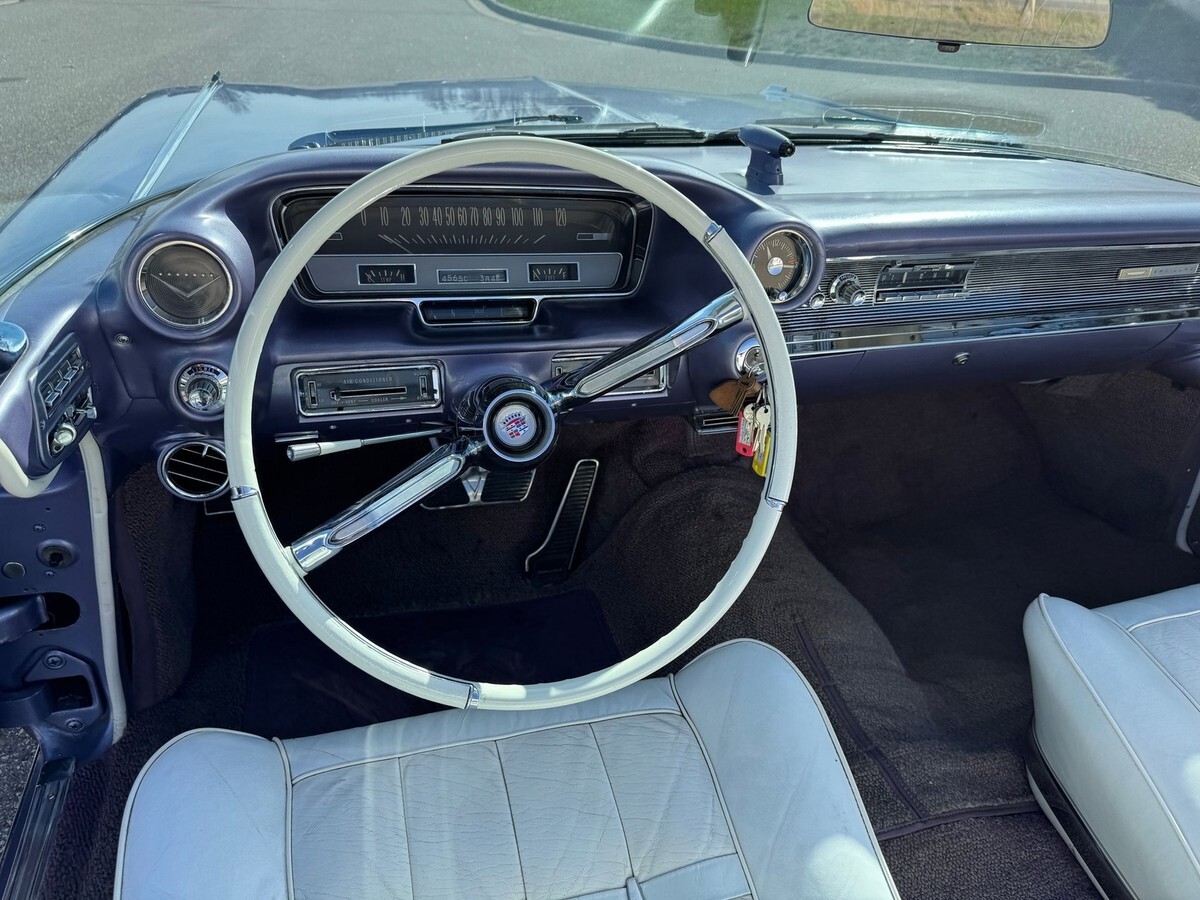 1960 Cadillac Eldorado Biarritz Convertible A Timeless Classic! Florida car. Experience the pinnacle of vintage luxury with this stunning 1960 Cadillac Eldorado Biarritz Convertible. This iconic beauty boasts a sleek, chrome-trimmed exterior in a Heather Iridescent, paired with a pristine white leather interior. a robust 390 cu. in. V8 engine, it delivers smooth, effortless cruising with a 3-speed automatic transmission. Miles are shown at 45,650. This rare gem has power seat that works great. Power windows work, radio works, power antenna works, clock works, blower motor works. Convertible top works great up and down. Top is in excellent condition. Headlamps work. This Eldorado Biarritz is a rare gem, perfect for car shows, leisurely drives, or adding to your collection. Don't miss your chance to own a piece of automotive history! Clean title.Look at all the pictures and videos on our website. www.DrukAutoSales.comSHIPPING AVAILABLE * FINANCING AVAILABLE * Warranties Available * www.DrukAutoSales.com *FaceTime walk around are available!