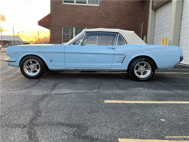 1966 Ford Mustang convertible factory V8. Comes fully loaded with every power option available equipped with upgraded vintage Air conditioning and new style ac compressor, new dryer, condenser and under dash unit, Power disc brakes and power steering upgraded by Borgesson power steering system. Light Blue with a blue and white Pony deluxe interior. Equipped with a rebuilt 289 c.i engine as well as a rebuilt C4 automatic transmission. The car was just painted in a base coat clear coat system. The Mustang was completely disassembled. All new chrome inside and out was installed after the paint job. All new front suspension and rear shocks new front end suspension upgraded for a better ride. New fuel tank and GT exhaust system. B.f Goodrich tires and new torque thrust Gt styled wheels. The floors and undercarriage were sandblasted and professionally repainted. One of the nicest under carriages you will find on a classic mustang. The convertible top was also completely redone the frame for the top was redone, new well liner, convertible top pad, new interior. Including new carpet, seat tracks, seat foam, door panels and handles, sun visors, seat belts, and carpet as well as a nice center console for comfort. New rubber and seals were replaced. The mustang has upgraded front power disk brakes. As well as a Willwood style power brake booster and master cylinder. If you are looking for an excellent running and driving car that has been nicely maintained and restored with all the upgraded power options, you will not find too many in better shape than this one. Numerous other options and mechanical