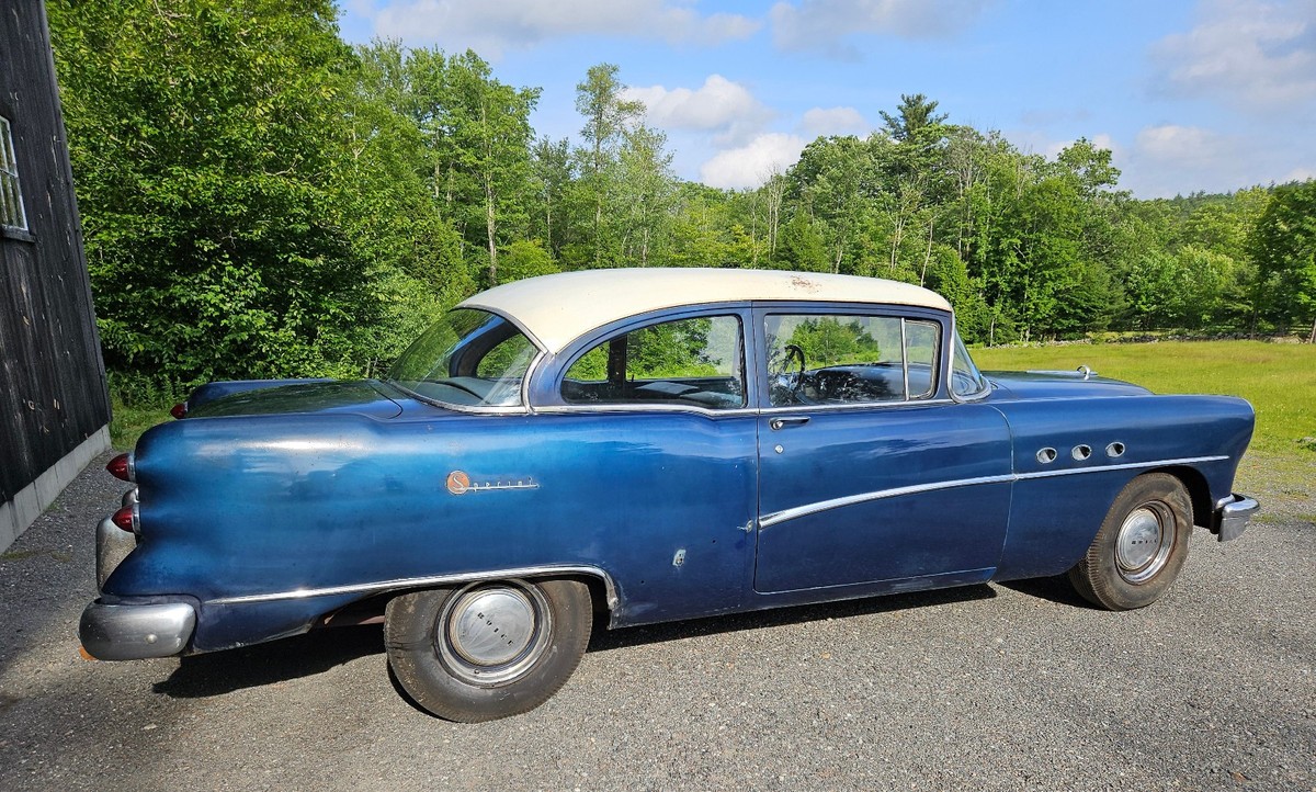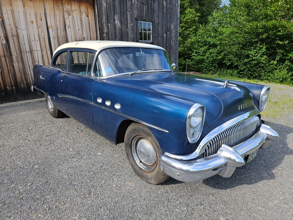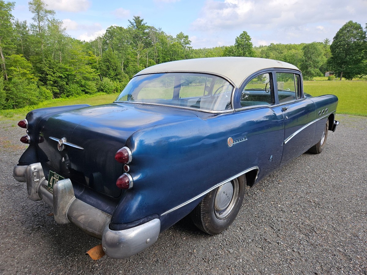 1954 Buick Special Deluxe Series 40 2 Door Sedan. V8 3 speed standard transmission. Just recently taken out of long term inside storage where its been for 45 years. Completely original with only 42139 miles. Perfect interior with no rips or damage.It still has its original bias ply tires including the spare. Starts right up and runs nice and quiet. It does need a brake master cylinder along with a carburetor rebuild to be roadworthy. There is absolutely NO rust underneath with only some minor surface rust on the roof and the right rear quarter molding is missing as can be seen it the pictures.I have a brand new OEM front floor mat that goes with the car to replace the aged cracked original mat. Sold with a New Hampshire Bill Of Sale . $500 Pay Pal deposit with the balance due within 7 days by wire transfer or cash upon pickup. Any questions I would prefer you send me a phone number and I will return your call. 603-381-7444