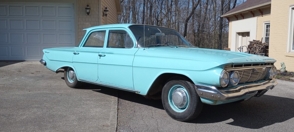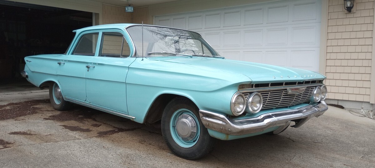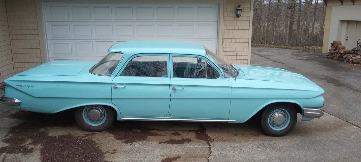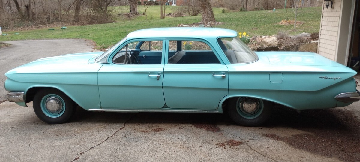 Here is a great running 1961 Chevrolet Biscayne that can be driven anywhere, anytime. It features professionally built 327 (documentation included) and 700R4 transmission, dual exhaust and many mechanical rebuilds or upgrades. Aluminum radiator, electric fuel pump and USA made HEI ignition round out the performance upgrades. The interior was replaced with correct 1961 upholstery and door panels. Paint is decent but as this has been a regular driver, there are typical nicks, scratches and scuffs. Needs upper and lower trunk panels but the chassis and frame are solid! I am including a number of spare parts including lower trunk pan, shocks, springs, right side front fender, and sunvisors. The car priced less than the engine, transmission conversion kit and interior alone. I can send more photos or video, please ask before bidding. Car is for sale locally so I have the right to end the auction early.