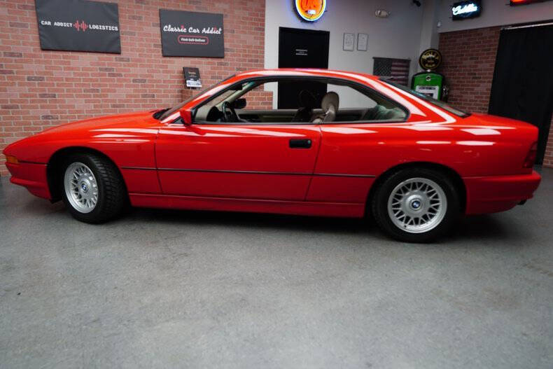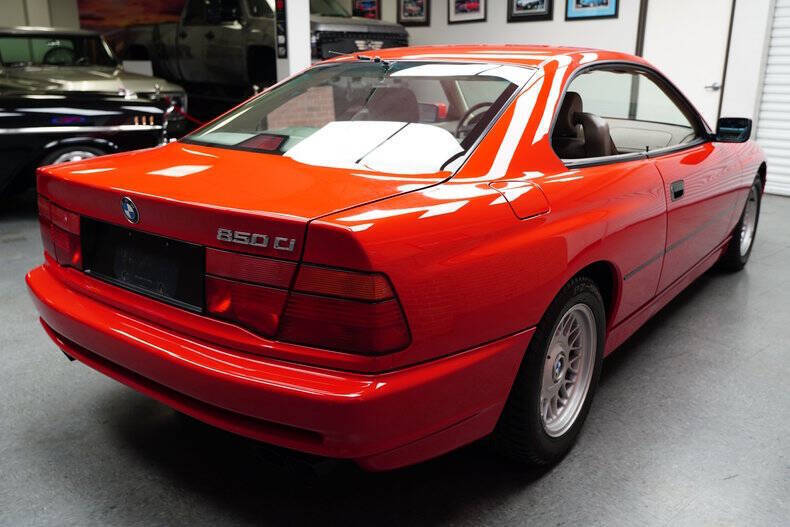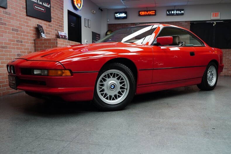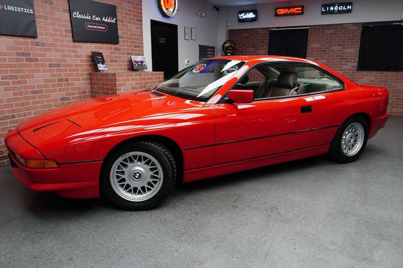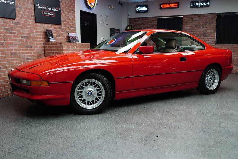 Classic Car Addict is proud to present this 1993 BMW 8 series 850ci V12 for sale in our Mesa, Arizona showroom. Carfax lists this as a two-owner vehicle with 89K miles, which averages about 2,811 miles per year. The 850i was the first model of the 8 Series launched in 1990 with the 5.0-litre M70B50 V12 engine having a power output of 220 kW (300 PS). Around the time of the introduction of the 840Ci in Autumn 1993, the 850i was renamed the 850Ci. The cabin features power-adjustable front seats trimmed in Light Parchment leather along with color-coordinated door panels and carpets. Equipment includes an onboard computer, dual-zone automatic climate control (AC not blowing cold), driver position memory, a power-adjustable steering column, AM/FM/cassette with trunk-mounted CD changer. The four-spoke leather-wrapped steering wheel fronts a 190-mph speedometer, a tachometer, and gauges for coolant temperature and fuel level. The digital odometer indicates 89,970 original miles. The bodywork is finished in Brilliant Red (308) and features fully retracting rear quarter windows for a pillarless side profile. Equipment includes front and rear CSi-style valances, a power sunroof (not working), quad exhaust outlets, and pop-up headlights. The BMW was fully repainted before our consignor purchased the vehicle. The 16x7.5 aluminum alloy vent wheels are mounted on Primewell PZ-900 tires 225/55ZR16's all the way around. The 5.0-liter M70B50 V12 was factory rated at 296 horsepower and 332 lb.-ft of torque. Power is sent to the rear wheels through a four-speed automatic transmission. Factory equipment includes four-wheel disc brakes, Automatic Stability Control (ASC), and Electronic Damper Control (EDC). Call Classic Car Addict today at 480-256-1459. And please be sure to watch the full walkaround and driving video linked directly to our YouTube channel under Classic Car Addicts. We are a Classic Car company that combines a lifelong passion for classic cars with a level of customer service that thinks of you first. A company small enough to allow a personal relationship but a company with global expertise to deliver all your needs.