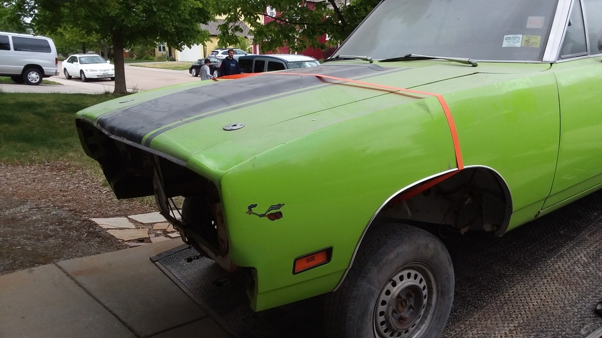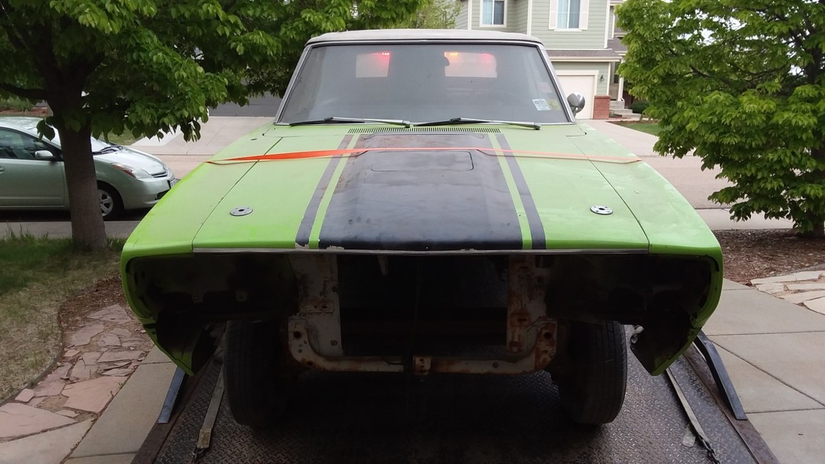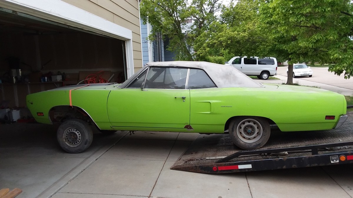 CodeDescriptionE63383-4 BarrelD21Heavy Duty 4-Speed Manual TransmissionRM27R = Plymouth Road RunnerM = Medium27 = ConvertibleNOGN = 383 330HP OR 335HP 1-4BBL 8 CYL0 = 1970G = St. Louis, MO, USA110654Sequence Number '110654'FJ5Paint Code: Sublime / LimelightH2X9Trim Grade/Style/ColorH = High2 = Vinyl BenchX9 = BlackTX9Upper Door Frame: Black / Black Velvet827Date Built: 8 / 27 / 1969023368Order Number: 023368V3WRoof Type OR Color: White Convertible TopJ253 Speed Variable WipersM31Belt Molding 69-70R11Music Master Radio AMV88Delete Transverse R/T StripeENDEnd of Codes1970 Road Runner Convertible 383 4-spd Limelight with white top and black interiorPlymouth made only658convertible Road Runners in 1970.Four-speed manual transmission, we're looking at one of only 179 units built.Out of 179, how many came with this color combination?This Bad Boy comes with its original 383 motor.Transmission is nonmatching numbers.Floor & frame rails have rust issues.I have replacement frame rails from another car.The engine, trans and K-Member are out of the car, to start the repair process.The front wheels are on a jig that come with skates.The car is in a storage unit and has been there for several years now.The pictures that you see were taken the day it was towed to the storage unit.Passenger side quarter panel has a dent from the tow driver hitting the storage unit, nothing major.The interior is complete and together.There will be more pictures of the car as soon I get the time.If you would like for the engine, trans and K-Member to be put back in the car for shipping,I will be more than happy to do so, but the car will not be drivable or running.This work will be done after I receive full payment.The deposit is nonrefundable.If interested in the car, please message me your name & number and I will call you.Thank youJason