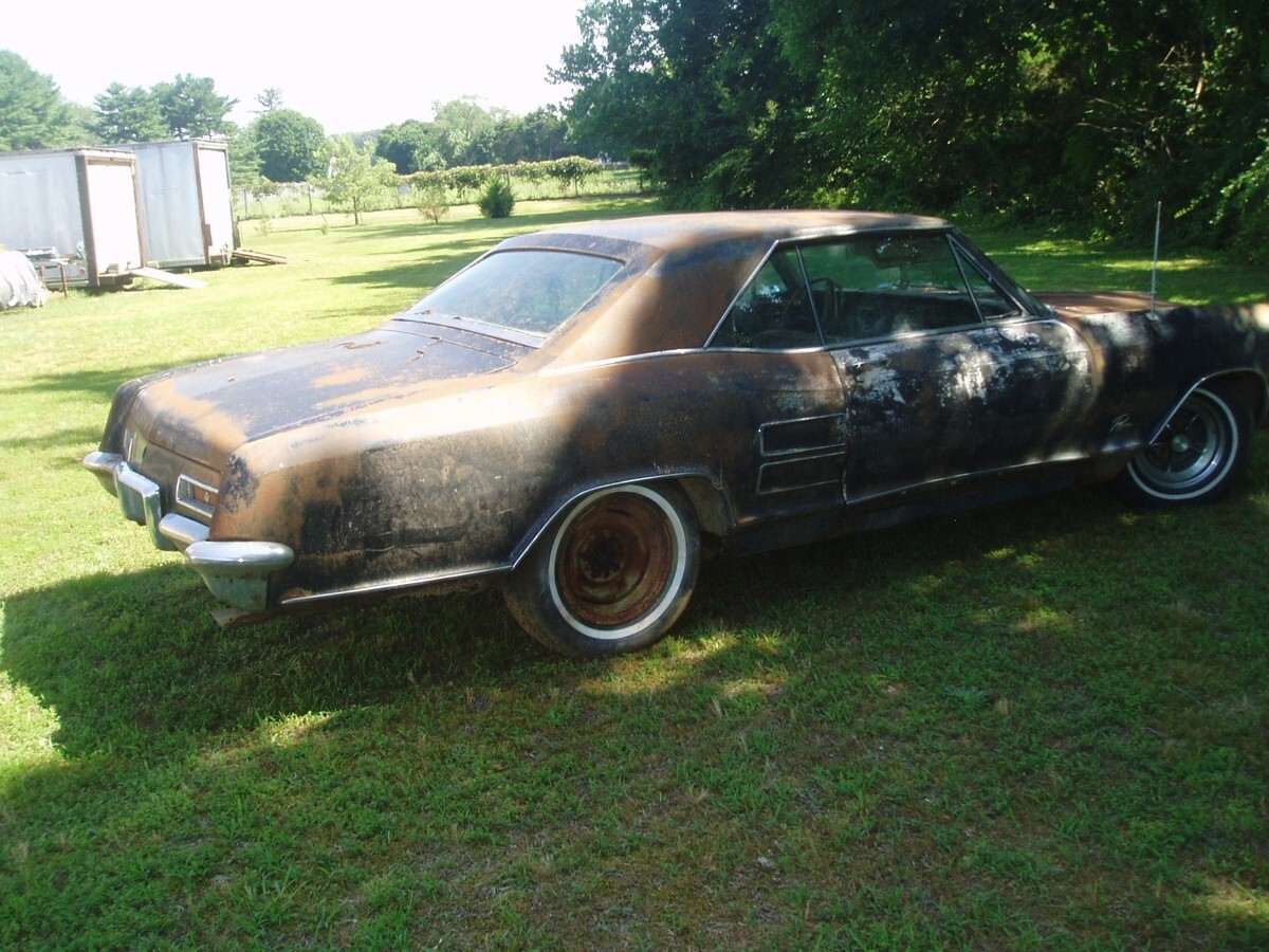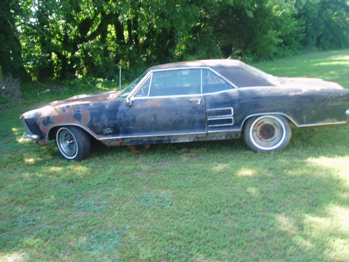 I HAVE A 63 BUICK RIVIERA UP FOR GRABS. THIS IS A PARTS CAR ONLY. CAR IS SEVERLY RUSTED IN THE BODY. FRAME IS SOLID. HAS THE FAMOUS 401 V8 WITH A DYNAFLOW TRANS. MOTOR APPEARS TO BE STUCK. I TRIED TO TURN IT OVER BUT REALLY COULD NOT GET LEVERAGE ON IT DUE TO SURGERY. IT DOES HAVE THE RARE OPTIONAL A/C THAT IS COMPLETE. ALL PARTS SEEM TO BE THERE. IT IS MISSING CARB, AIR CLEANER AND BRAKE BOOSTER. ALL TRIM IS THERE AND VERY USEABLE. THERE IS NO TITLE. REPEAT THERE IS NO TITLE IT IS MISSING. EBAY WOULD ONLY ALLOW SALVAGE FOR TITLE STATUS.THIS CAR HAS BEEN SITTING 25+ YEARS OR MORE AND AT THIS POINT IT IS A PARTS ONLY. CAR ROLLS AND STEERS. GREAT TO HAVE IT SITTING IF YOU HAVE A RIV AND NEED MINOR PARTS. SOLD AS IS. $1000.00 FIRM TAKES IT HOME.EBAY PUT BEST OFFER IN AND I CAN NOT CHANGE THAT.I AMNOT LOOKING TO MKE MONEY JUST GET BACK WHAT IT TOOK TO GET THE CAR HERE. I HAVE ANOTHER 63 AS WELL AND WILL MAKE YOU A PACKAGE DEAL ON BOTH OF THEM. IT IS IN SAME CODITION BUT THE MOTOR IS NOT STUCK AND JUST AS RUSTY BUT HAS TILT WHEEL AND NO A/C.A $250.00 NON-REFUNDABLE DEPOSIT DUE WITH IN 48 HRS OF AUCTION END. IF YOU BUY IT ITS YOURS. HONOR EBAYS BIDDING SYSTEM. THE BALANCE IS DUE IN CASH WHEN CAR IS PICKED UP. CHECK OUT THE PICS AND THANK YOU FOR LOOKING. HAVE A NICE DAY