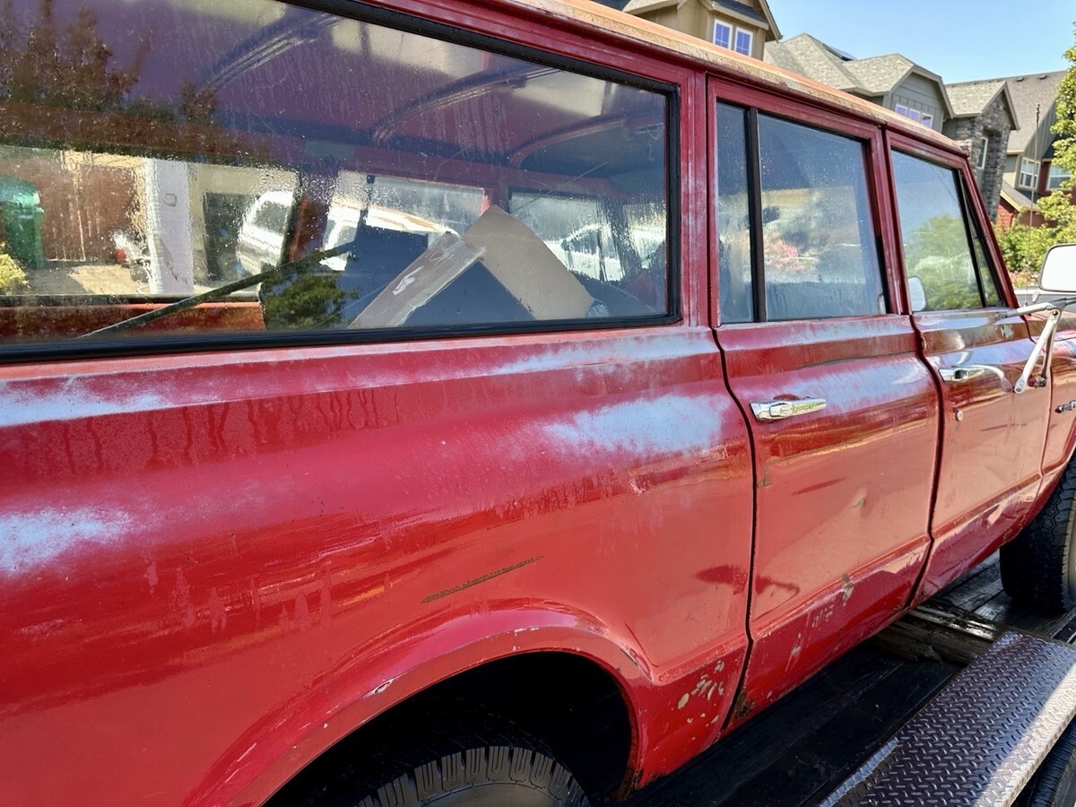 Up for sale is my Original Barn Door 4x4 Burb. It’s all stock, lots of cool factor! V8, auto, tow hooks, red on black which is a nice color combo. Has some rust but mostly minimal stuff compared to typical burbs. Extra parts, extra doors, extra wheels, nice motor. Needs fuel pump/ fresh gas / work. Currently not running and has been parked for years.