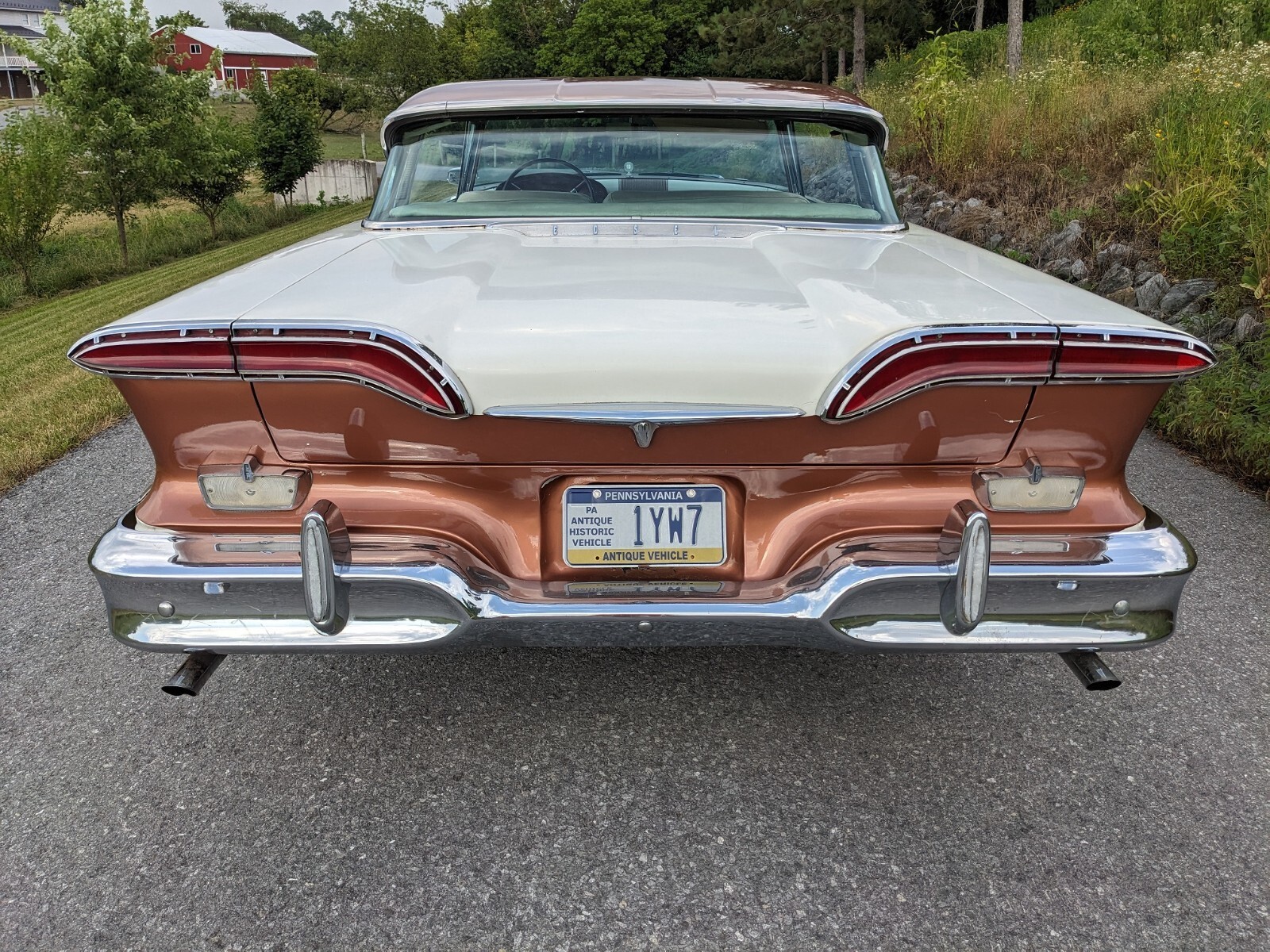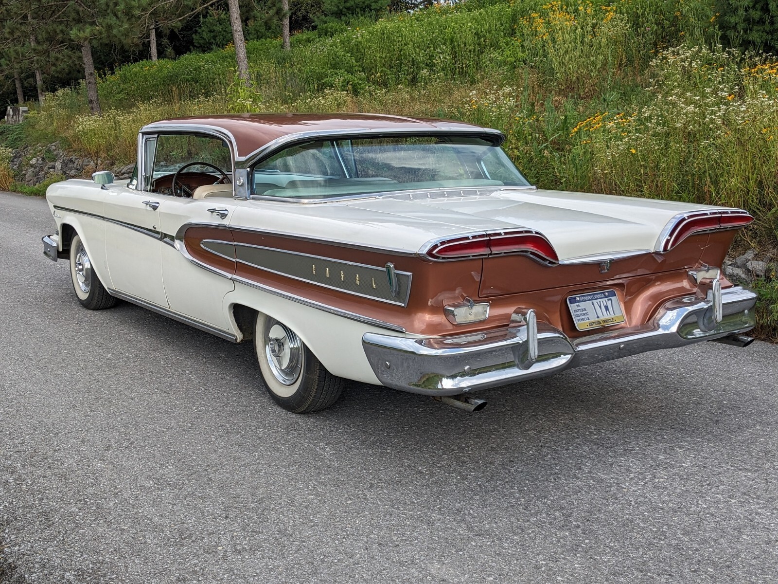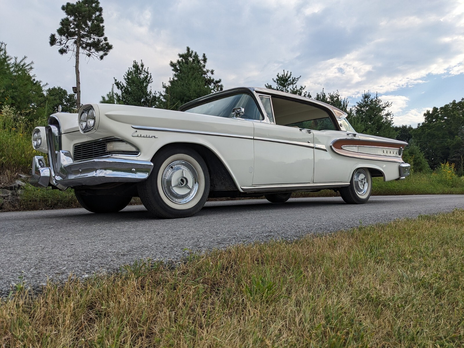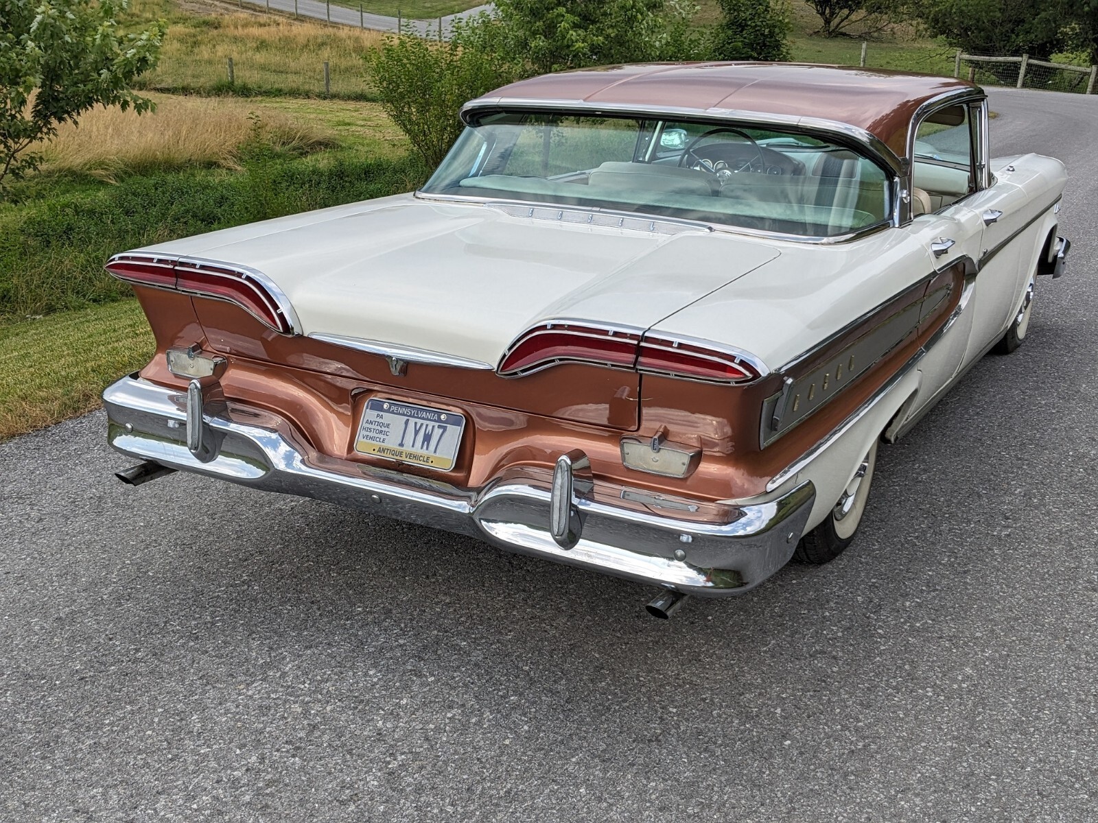 1958 Edsel Citation 4 Door Hardtop in white and copper metallic paint. 95k original miles. Early electric wiper car, (discontinued September 1957). Spent the majority of its life in the mid-west. Very good, solid condition - paint has some scratches, chips, and peeling. Road worthy with recent brake work. Tires are in good condition but older. Comes with original brake booster and other small parts. Please ask any questions before bidding. VIN X8SX703700 Body 57B EUE AB 16H 4 A