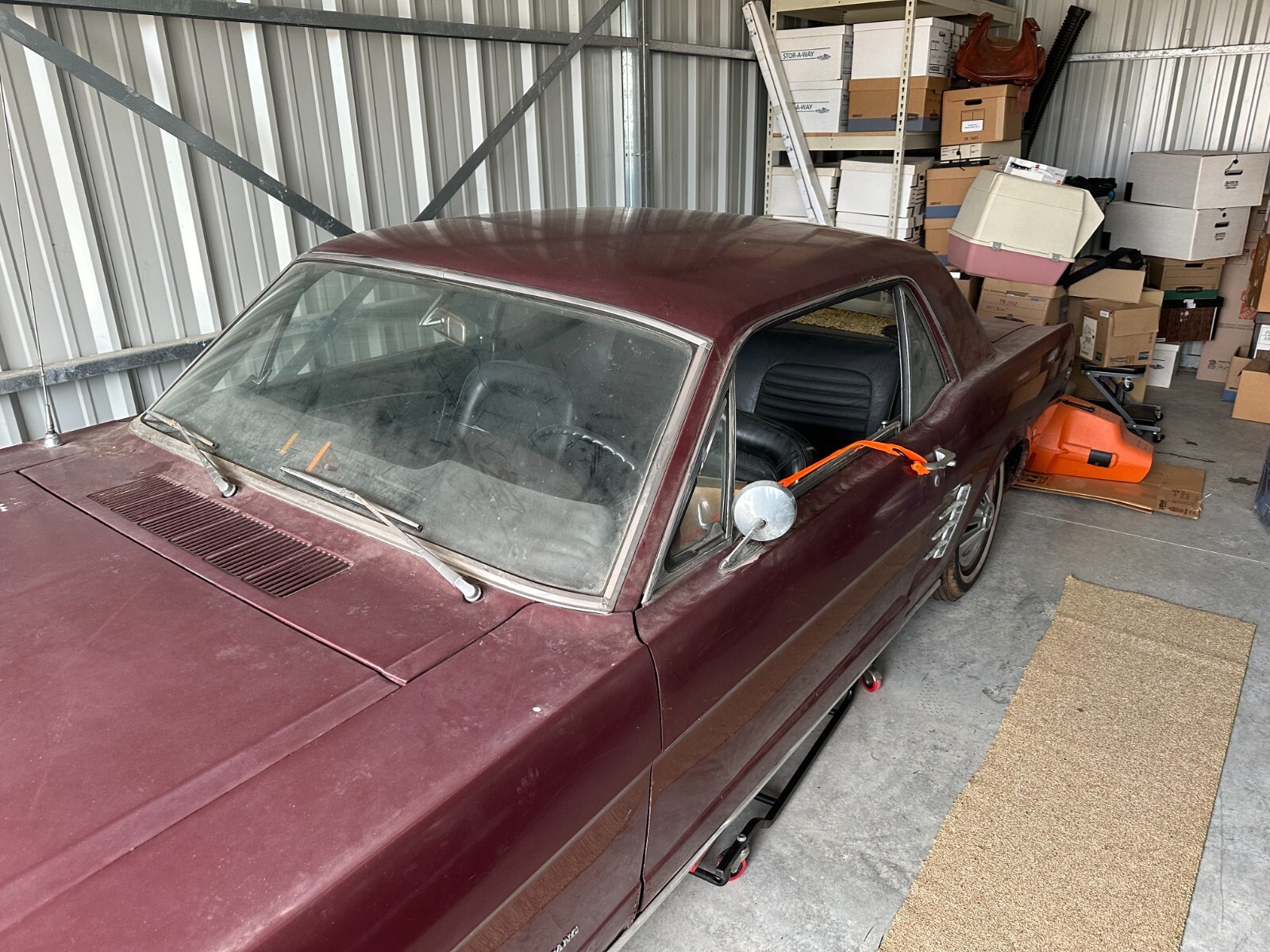 Up for sale is our 1966 Ford Mustang Coupe project car - a C-Code 289 V8 with 3-speed manual transmission. This classic Mustang is vintage burgundy with a black standard interior. Purchased from an owner in Indiana in 1976, it was driven until 1987 and has been stored ever since. We’re parting with it as we downsize for retirement and travel.