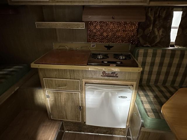 MaxMotive invites you to go glamping in this all-original 1975 Serro Scotty Sportsman 13-foot Camper. It?s loaded with a Meynell Cooking Stove, Wagon-Master Wall Furnace and a Whirlpool refrigerator. The pre-finished aluminum exterior is very well preserved with its light blue, white, and gold coloring. The original Serro Scotty wheel covers complete the authentic appearance. It toes easily with its low-profile streamlined design, a 2-inch coupler, and Kelsey-Hayes electric brakes. This Scotty comes with the original and very informative Owner?s Guide complete with an invitation to Scottyland. This 1975 Serro Scotty Sportsman is a fully functional collectible ready to enjoy. Please be sure to check out the detailed photos at