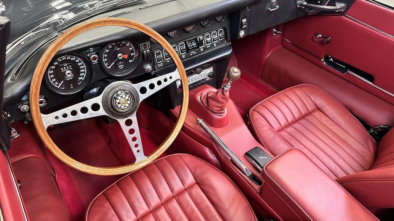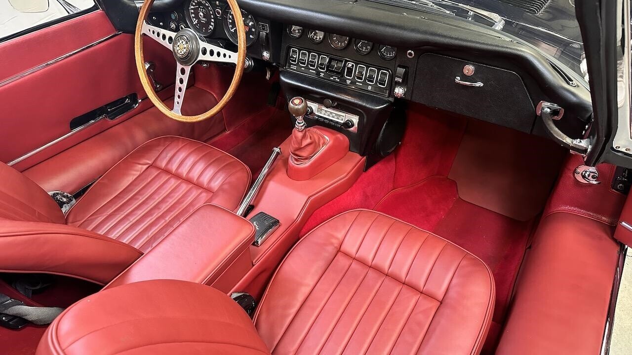 This is a highly restored, series 1.5 Jaguar XKE Roadster. Finished in stunning Azure Blue with a red leather interior. Car has had over $60,000 in documented mechanical sorting in the last few years including a full engine rebuild by Marque experts Northumberland engineering. Car has a brand new interior from marque experts, Bassett of Rhode Island. All new Connelly leather seats, with correct moquette backing, correct new wool carpeting and matching hardura trim. Tires are redline, soft top is correct stayfast. The paint and chrome are excellent. Mechanically the car runs beautifully and has been fully sorted by our service department.