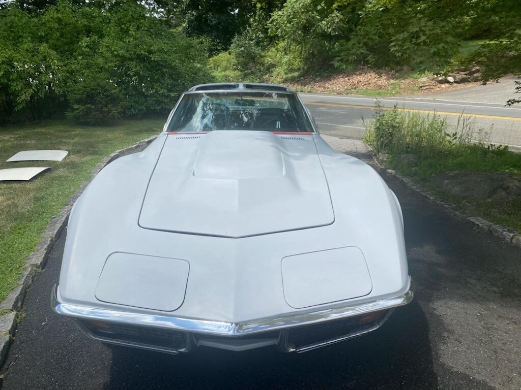 1971 Corvette coupe, 350 auto, motor not original. Has power steering, power brakes, power windows and factory AC but compressor is missing. The car is in primer and wouldn't take much to get it ready for paint. Original color classic white (Paint code 972) with black interior. Interior needs work. Has L88 big block hood. Car runs and drives but it's been sitting and should be serviced. Very clean frame and bird cage. Clean title. Drive as you restore it. I WILL NOT ACCEPT CARMEL AS PAYMENT! CASH OR BANK WIRE ONLY.