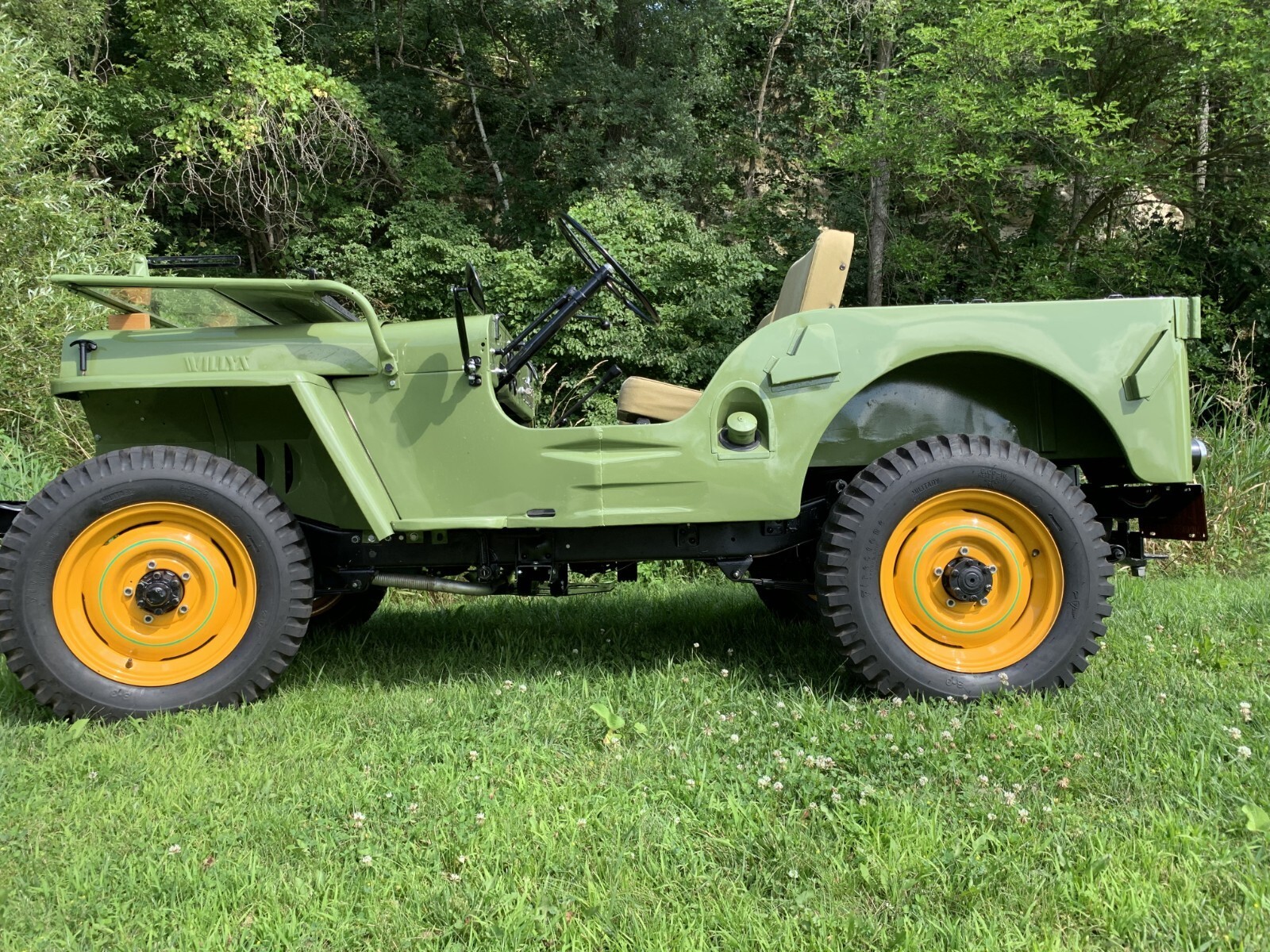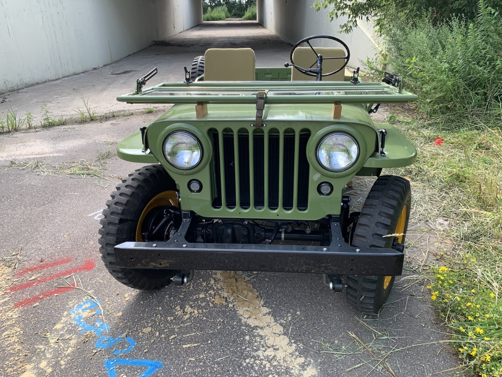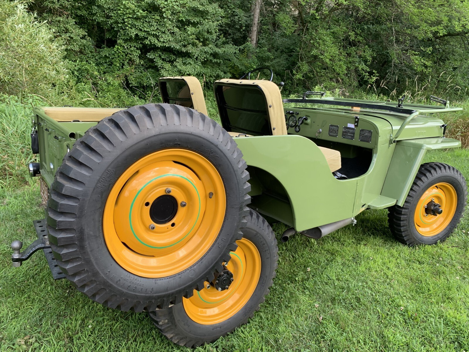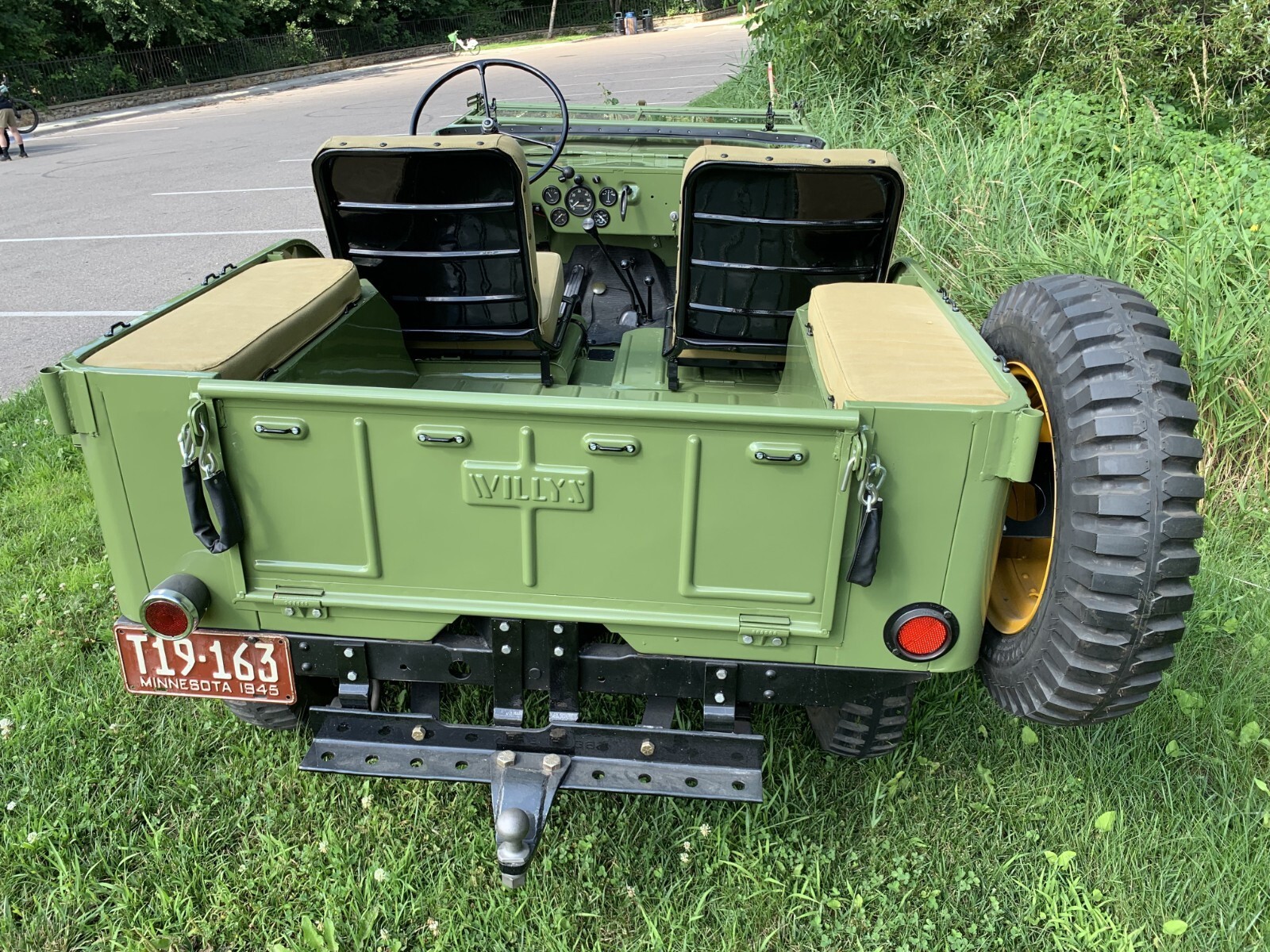 1945 CJ2AWillys Jeep. Frame off restoration brought back to near stock condition "as purchased new" as it came off the line. Original engine freshened up with rings, bearings and seals. Transmission is the correct side-shifting "3 on the tree". Rebuilt period correct transfer case and over-drive added for drivability. From the new front bumper to the rear hitch, it is a remarkable vehicle. VIN number is 11793 so only 1792 CJs were made before this one. Thought to be only one of 100-200 surviving stock 1945 left making this a rare one. If a part wasn't replaced it was carefully sandblasted and repainted to maintain stock status. I have receipts for most parts that now make up this unique vehicle.