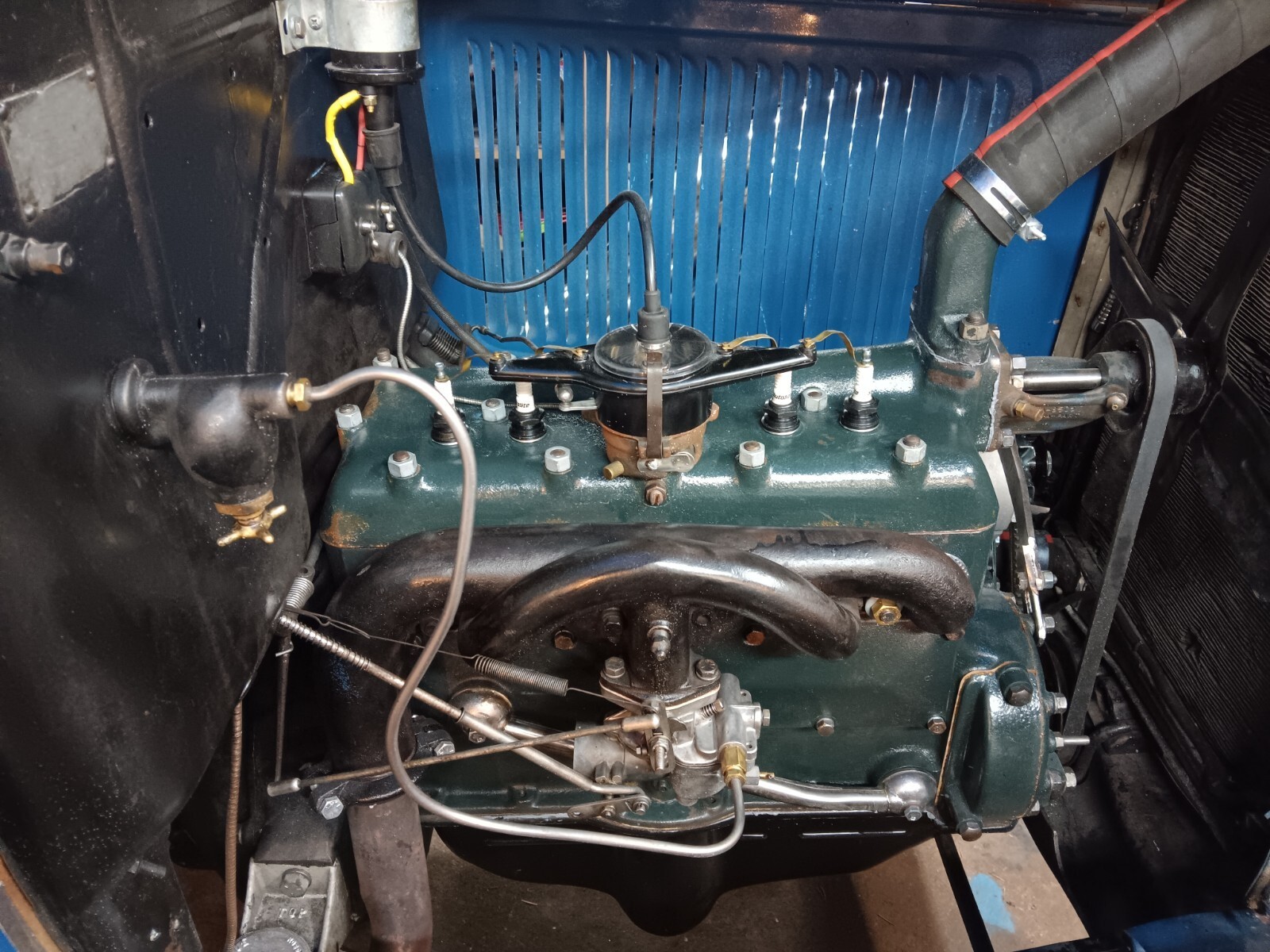 I pulled the pan and had it hot tanked as it was pretty dirty but oil on stick was nice and clean. I installed new plugs, points and condenser and an original clear distributor see through cap. I also installed a $300 6 volt positive ground alternator along with a brand new 6 volt battery and most all gaskets. Installed new pencil fuel filter in tank. Carb had a very small leak at startup but now it is leaking pretty bad. Fuel lines and original firewall strainer cleaned out. Cannot start it because the carb leaks badly. I have approximately $11,500 invested. Thanks you, please contact me if you want to come see or have any further questions. Bob