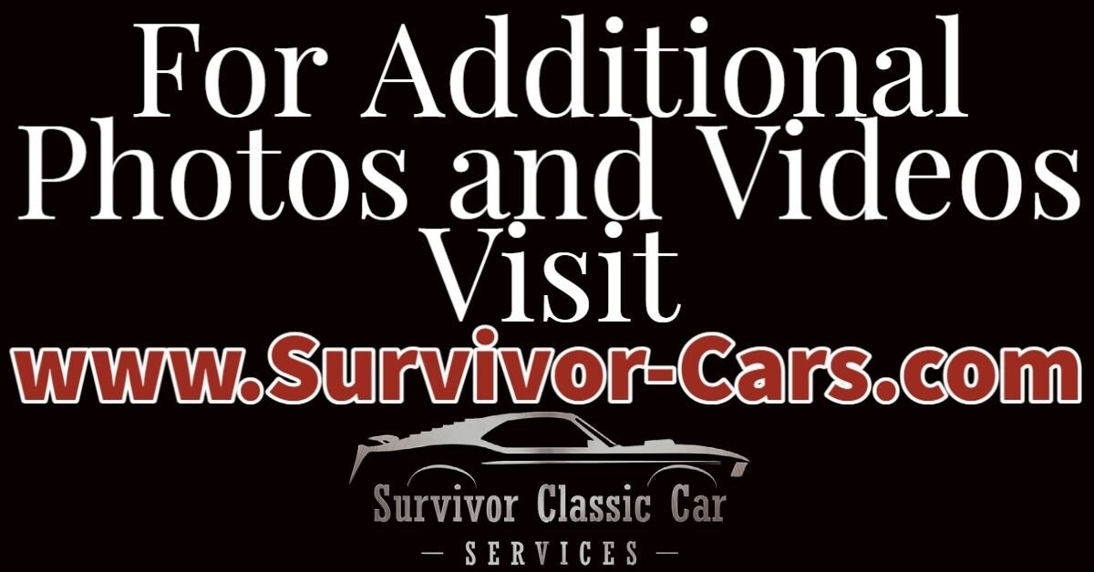 This vehicle is available to view by appointment only in our Tampa showroom. Please call the office to make an appointment. For additional information on this and our other classic and collectible cars for sale, please visit www.Survivor-Cars.com. For assistance, please call the office at 941-845-4461, text our cell phones at 813-358-8830, or email us at [email protected]. If you are unable to come view the vehicle for yourself, we highly recommend you send in a third-party inspector on your behalf. We are located between Tampa and Sarasota. We are 90 minutes from Orlando and Fort Myers. *Potential purchaser understands it is their responsibility to verify condition and accuracy of information when purchasing from Survivor Classic Cars. It is the sole responsibility of the potential purchaser to inspect the vehicle, or have a third-party inspection performed on the vehicle before purchasing. The potential purchaser is relying solely on their own knowledge and judgement about any vehicle purchased.