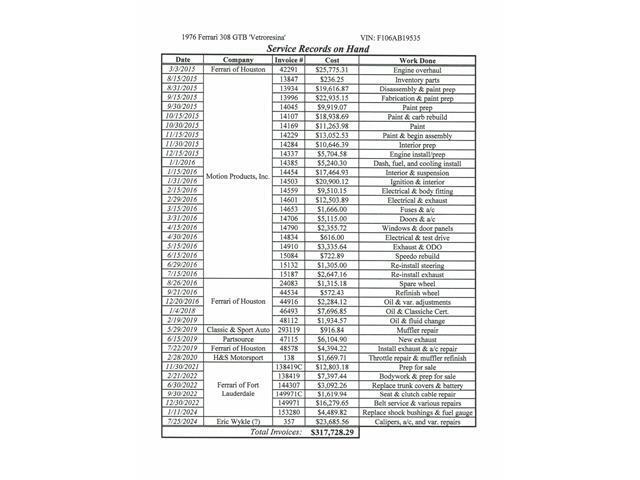 1976 Ferrari 308 GTB "Vetroresina" fiberglass 1 of 100 RARE