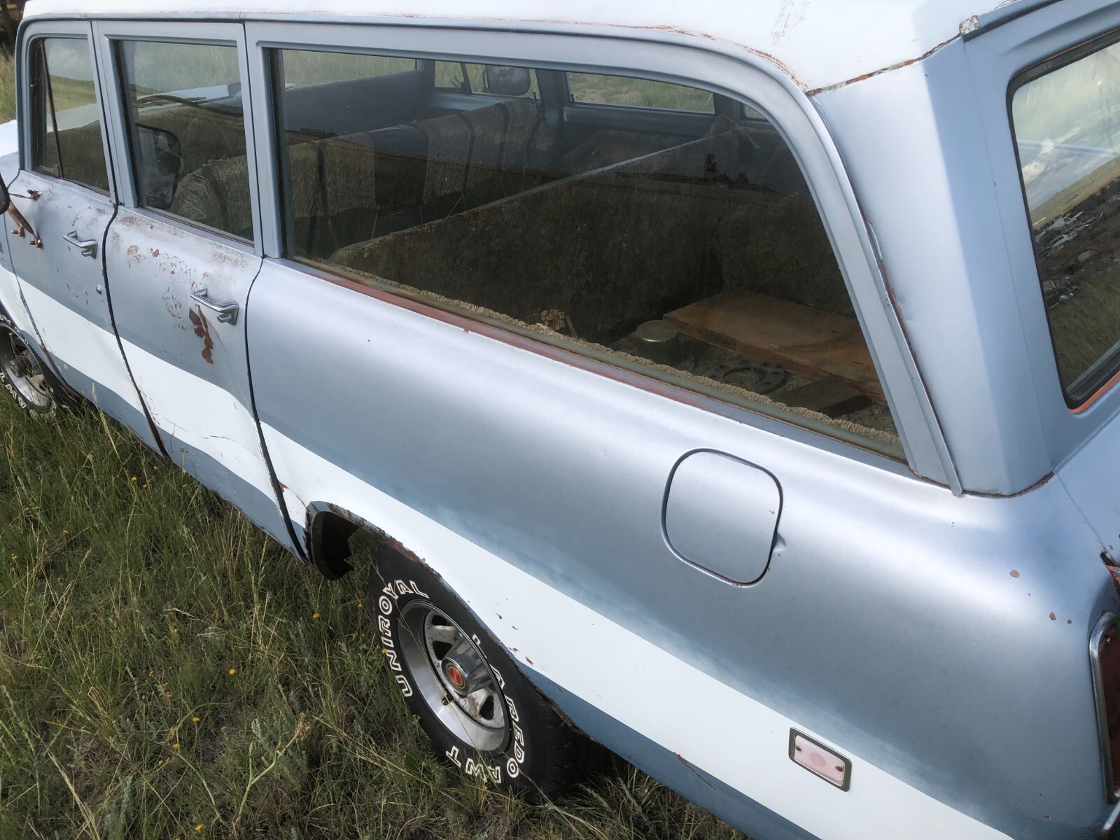1970 International Harvester Travelall. Absolutely very rare cargo door model. Equipped with a V8 engine. Automatic transmission. Was pulled outside for photos. Unbelievably clean from rust. Seems both rear wheel wells are the only areas with rust that can be found. Comes with extra glass. Has title. Photos are 100% of the description. Please base your questions off of the photos provided.