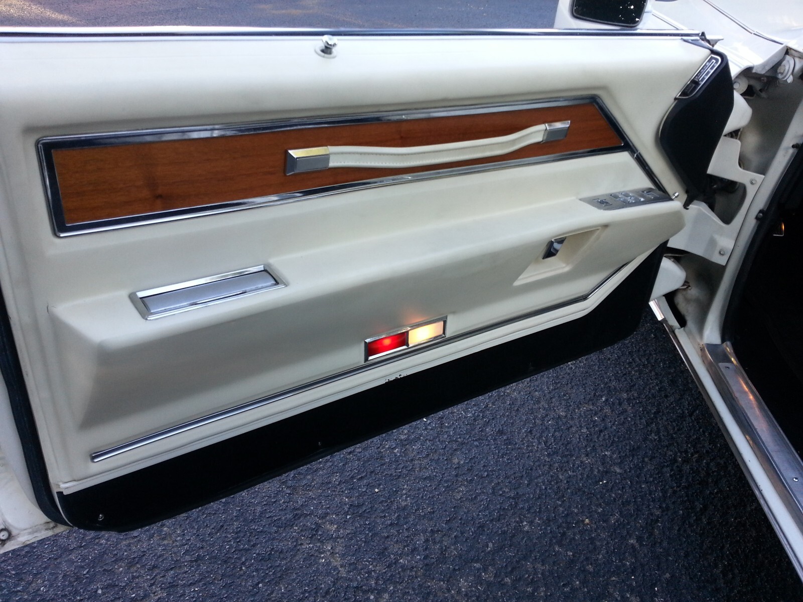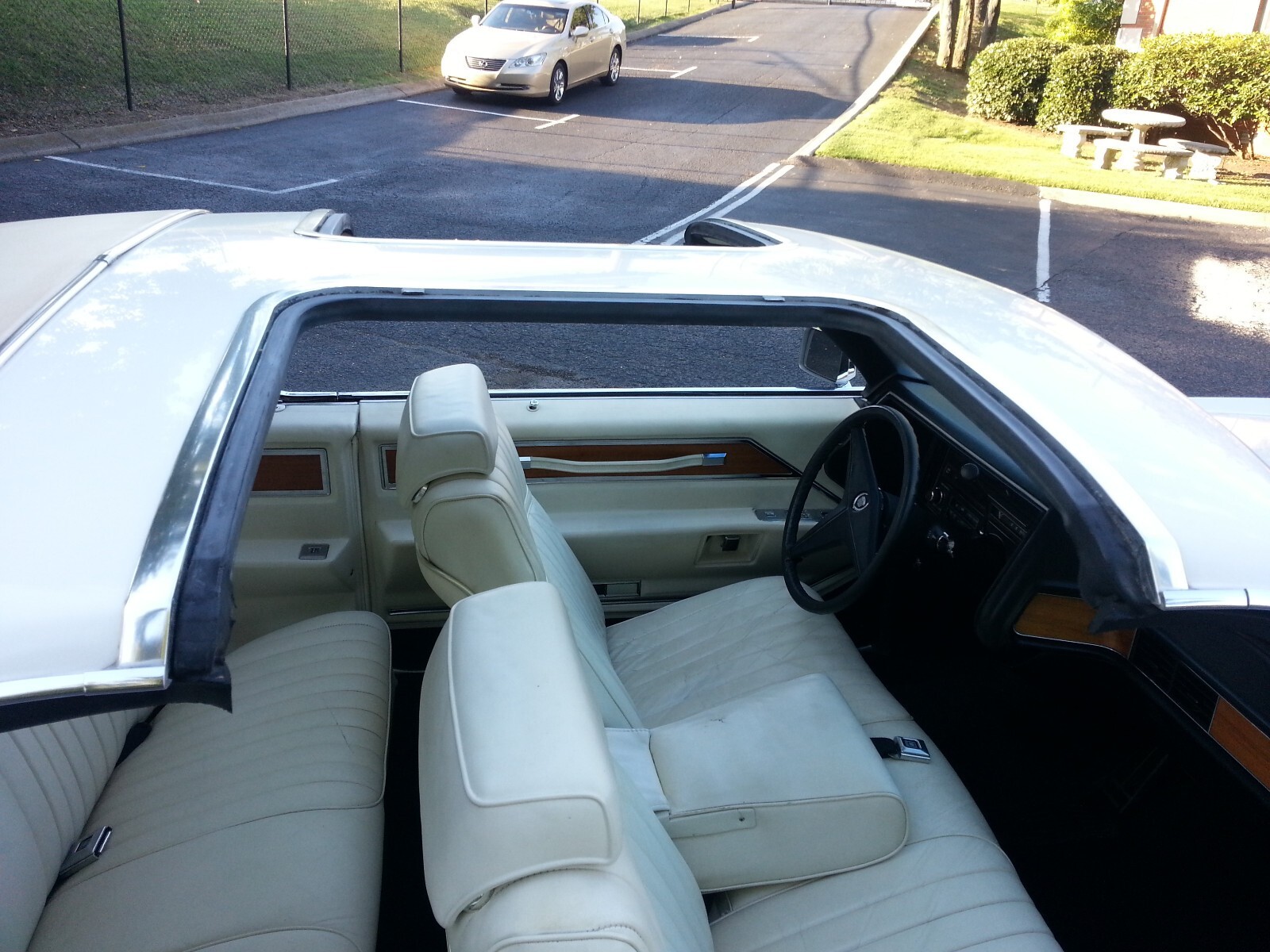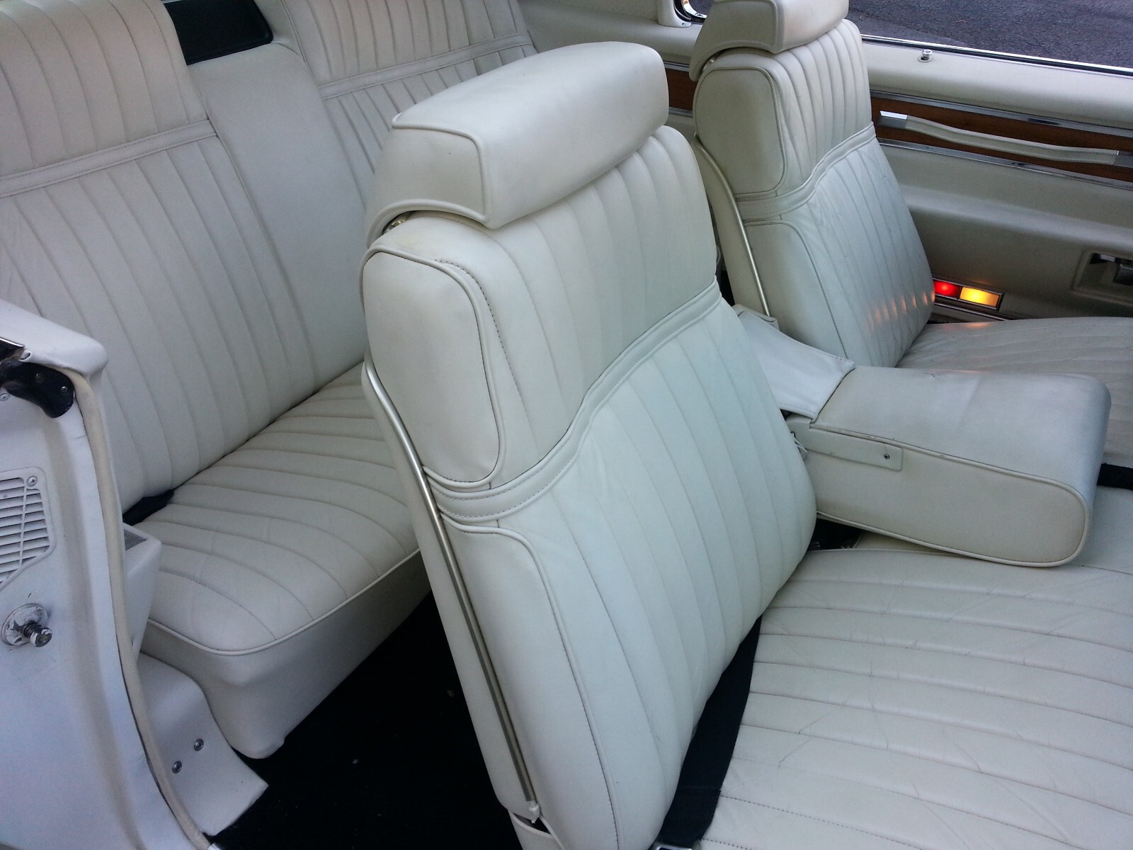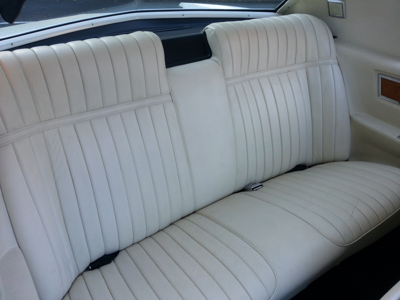 THE ORIGINAL WHITE LEATHER INTERIOR IS VERY GOOD. THE SEATS SHOW MINOR WEAR BUT EVERYTHING ELSE IS A-1 AND ORIGINAL. THE DEALER INSTALLED T-TOPS FIT AND LATCH VERY TIGHT AND ARE NOT LEAKY!