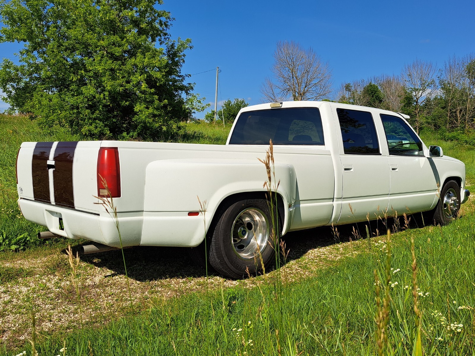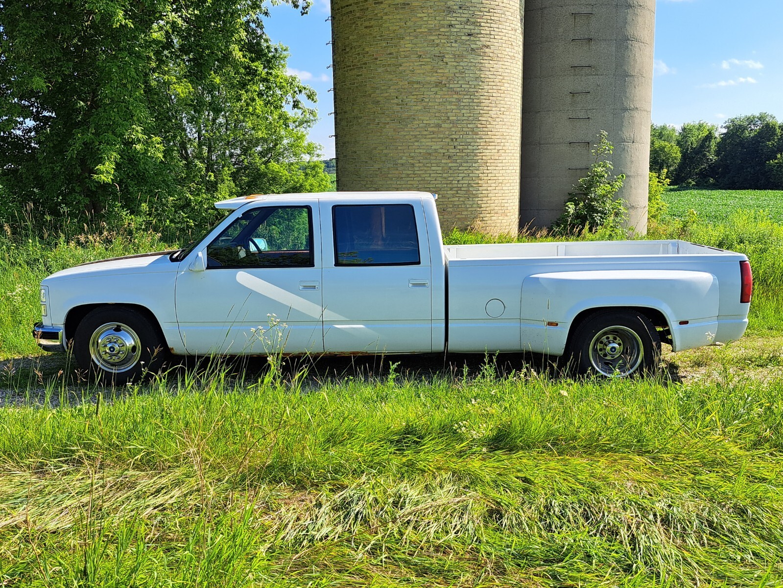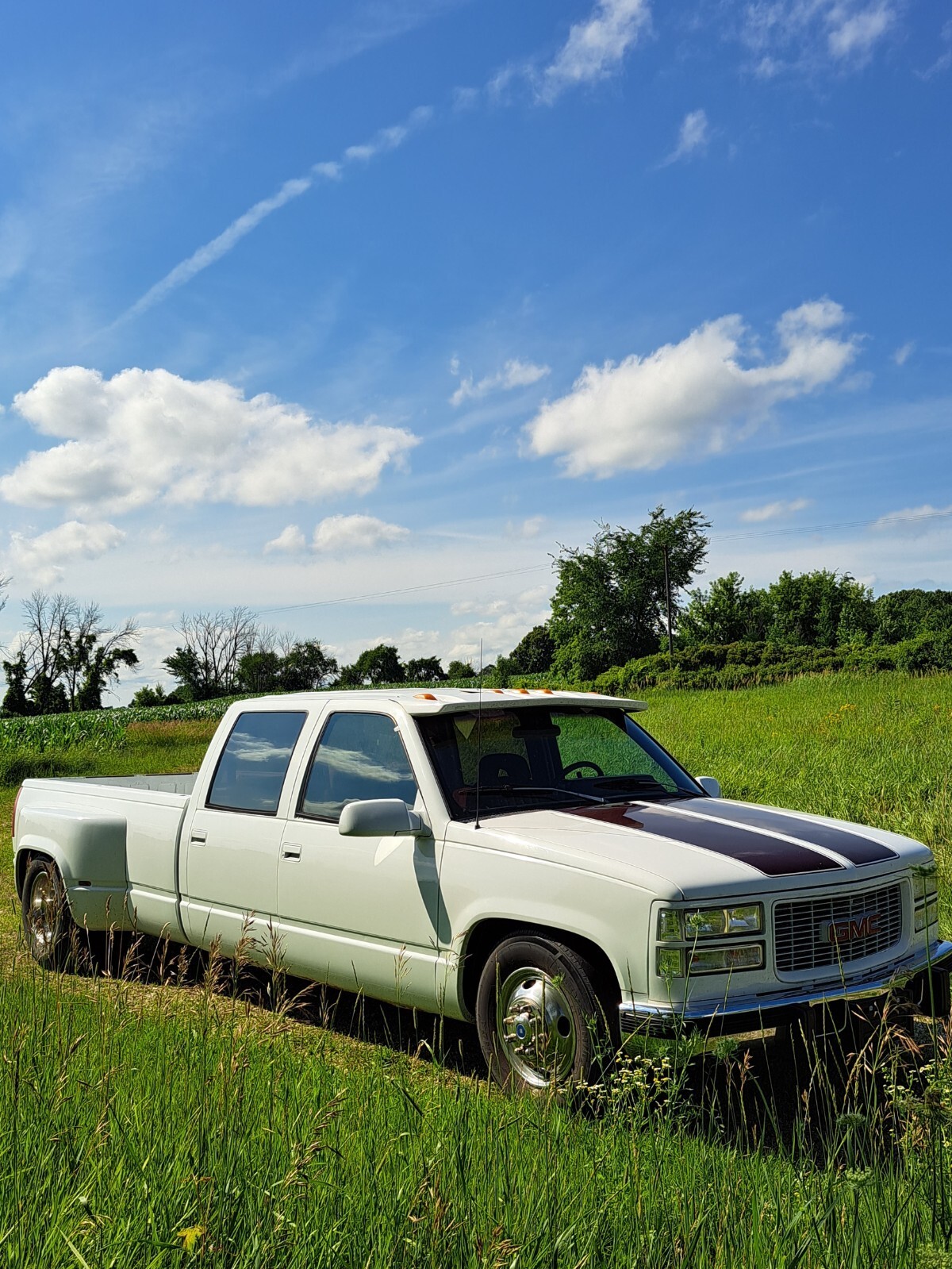 Custom 350 swapped lowered gmc sierra crewcab dually. Truck has been in wisconsin its whole life but in good condition for age, only minor surface rust in usual areas -rockers/wells. Floor and frame are solid. Odometer is not actual due to engine/interior swap done by previous owner. Aftermarket exhaust, back 4 tires are almost new, recent oil change and differential flush. Lowered about 2 inches on drop shocks/springs. A/C does not work. Could use a little tlc but overall good running truck.