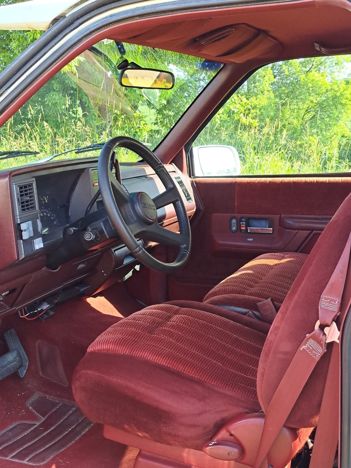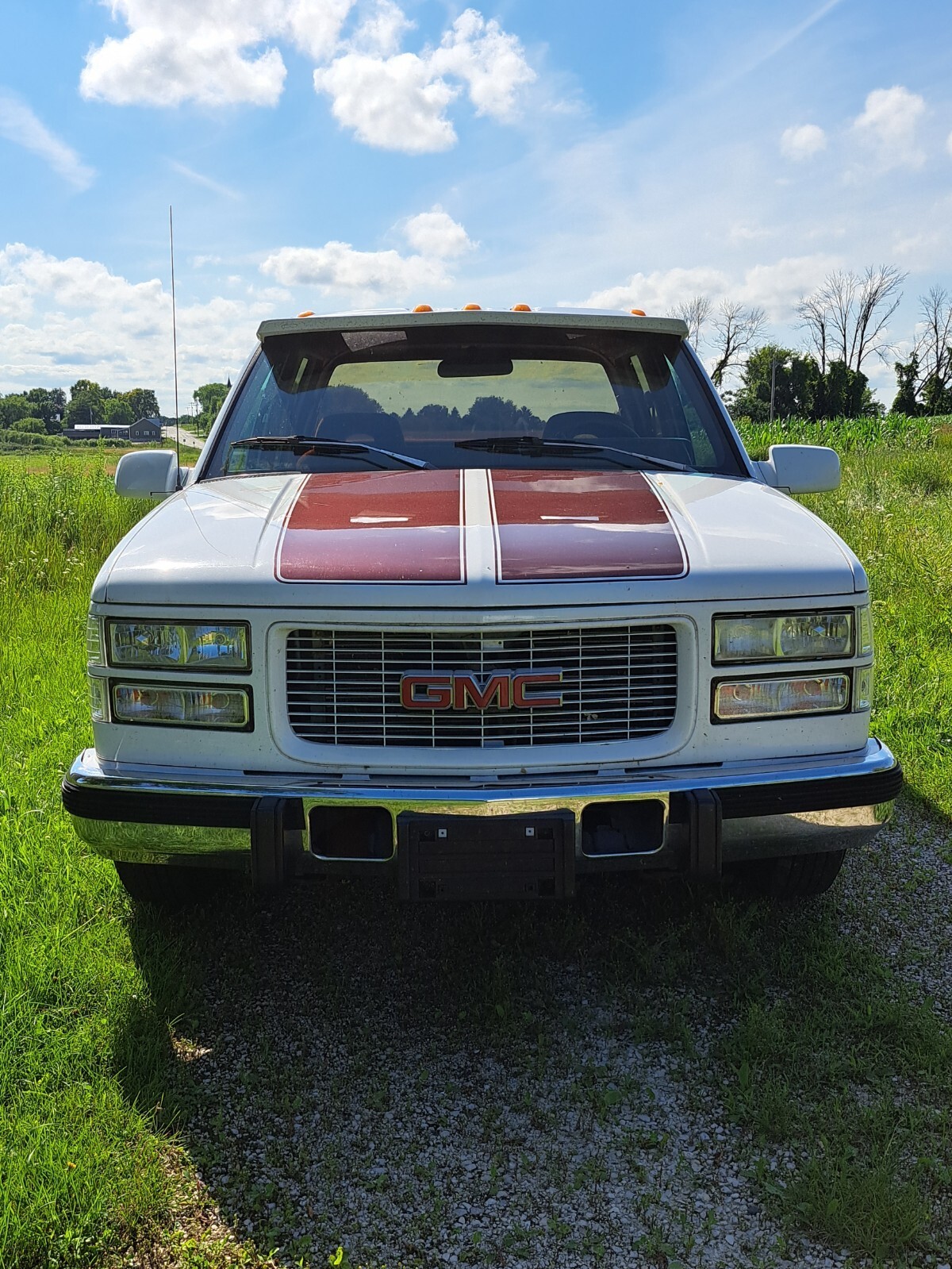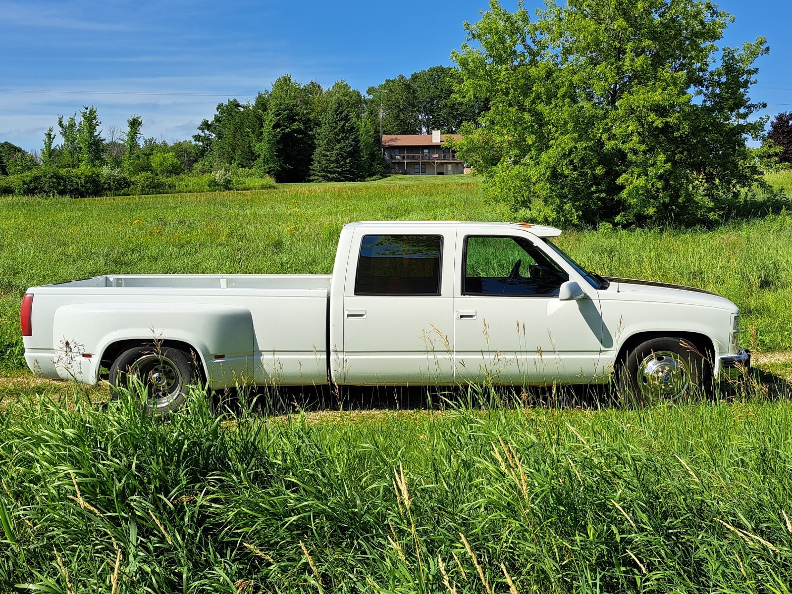 Custom 350 swapped lowered gmc sierra crewcab dually. Truck has been in wisconsin its whole life but in good condition for age, only minor surface rust in usual areas -rockers/wells. Floor and frame are solid. Odometer is not actual due to engine/interior swap done by previous owner. Aftermarket exhaust, back 4 tires are almost new, recent oil change and differential flush. Lowered about 2 inches on drop shocks/springs. A/C does not work. Could use a little tlc but overall good running truck.